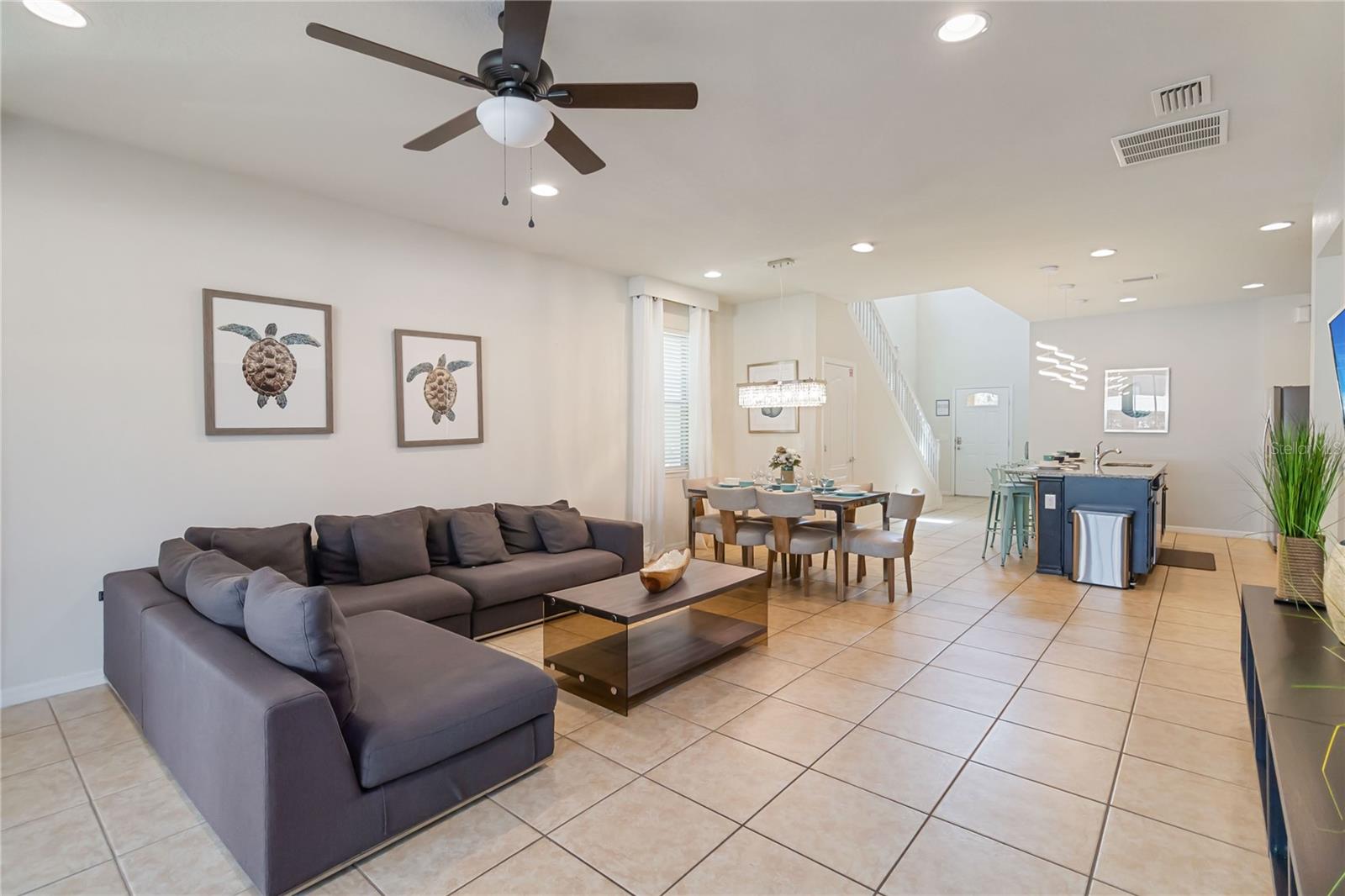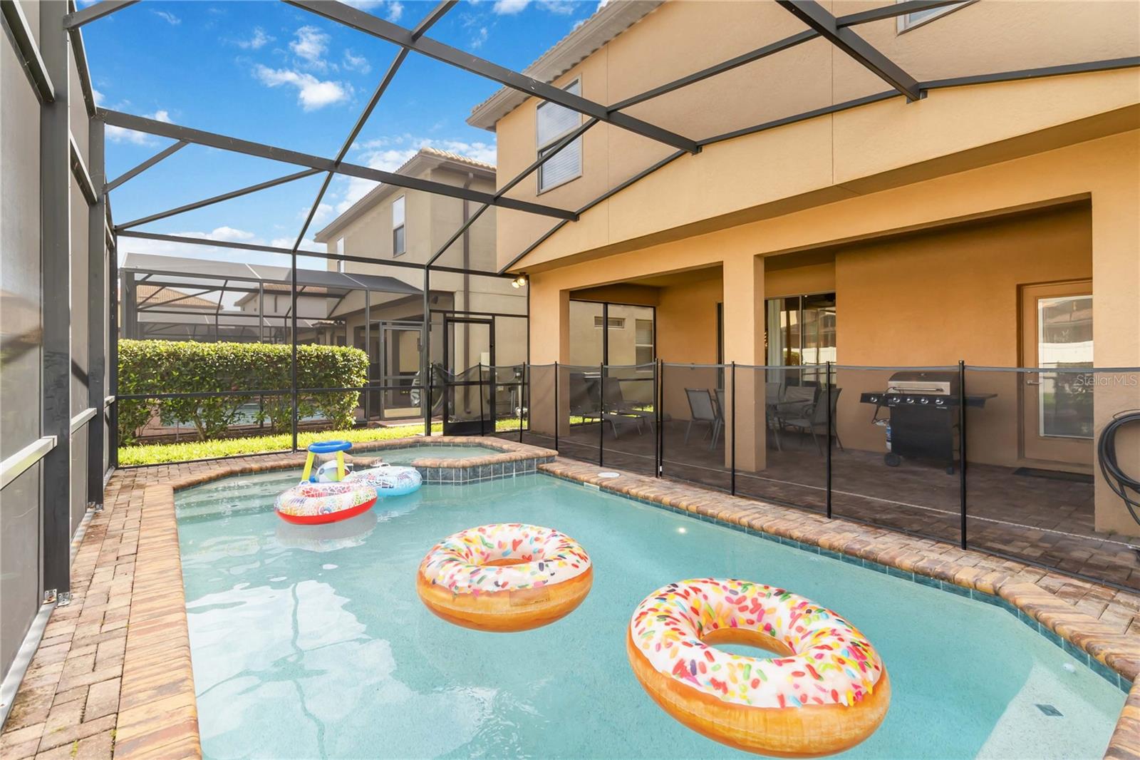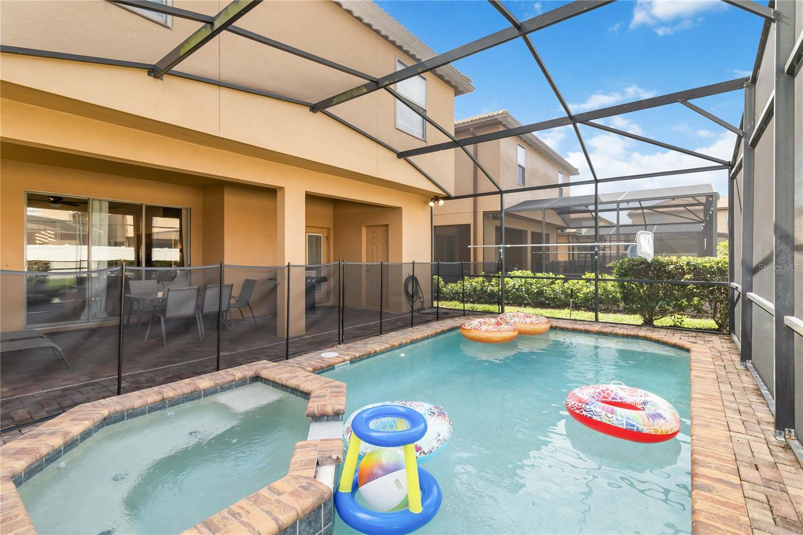 This stunning- newly renovated 6-bedroom, 3,142 sq. ft. Pool home offers the perfect blend of luxury, comfort, and entertainment. Current bookings til the end of 2025. Inside you'll find a spacious open floorplan with LVP flooring and tile throughout- No carpet! The great room seamlessly connects the living and dining space with the private screened lanai and pool/spa. The fully equipped kitchen features SS appliances, granite countertops and a large island with seating. For convenience, a primary bedroom is located on the first floor, offering easy access and privacy. Upstairs, the second floor has a media room for movie nights and fun. This level also includes two charming guest bedrooms, a second primary suite for added comfort, and two themed bunk rooms. Windsor at Westside offers an extraordinary array of resort amenities within this gated community. The Extraordinary 5,000 sq. ft. Clubhouse is your hub for recreation and relaxation. Dive into the fun at the Huge Resort-Style Pool, complete with a Lazy River and Water Slide. Stay active with access to a Gym and Fitness Center as well as multiple sports courts, including Tennis, Basketball, and Volleyball Courts, and a dedicated Soccer Field. Kids Play Area, Games Room, and Video Arcade, ensuring endless entertainment for all ages. On site restaurant, tiki bar and shop. HOA covers exterior landscaping maintenance, internet, cable, and daily trash service. Fantastic location close to all the area’s exciting, world class attractions from theme parks, golf, dining & shopping. Convenient to all major highways and the airport. Check out the Video tour online, schedule a private viewing today!