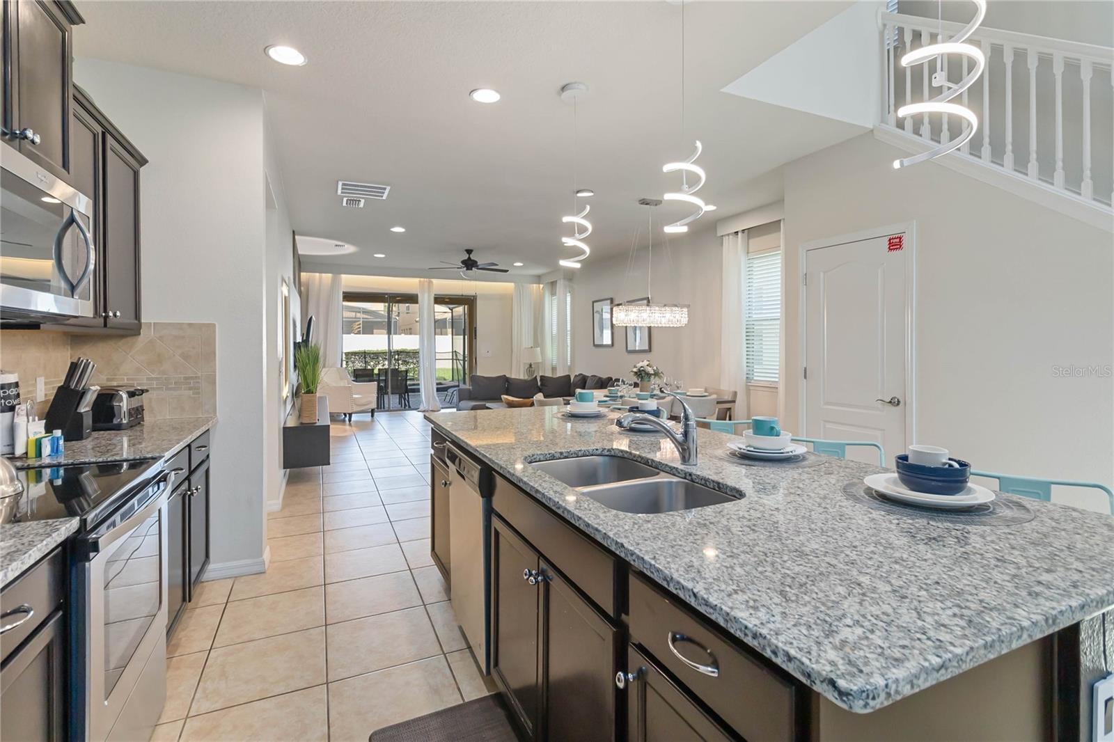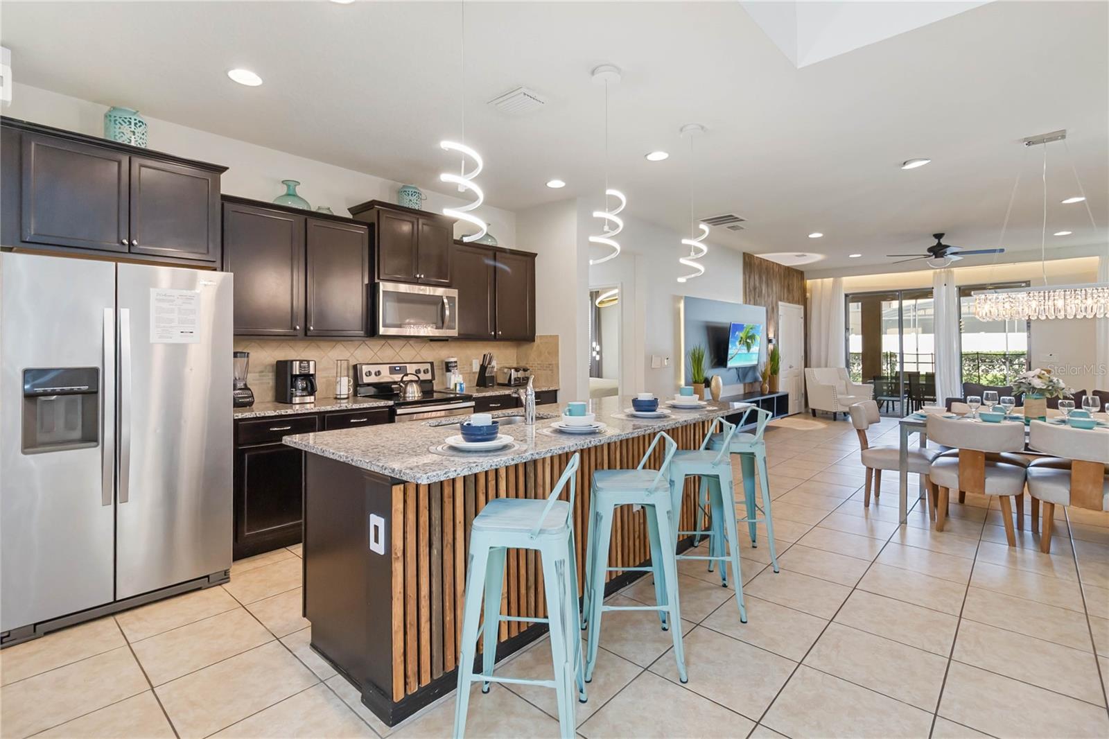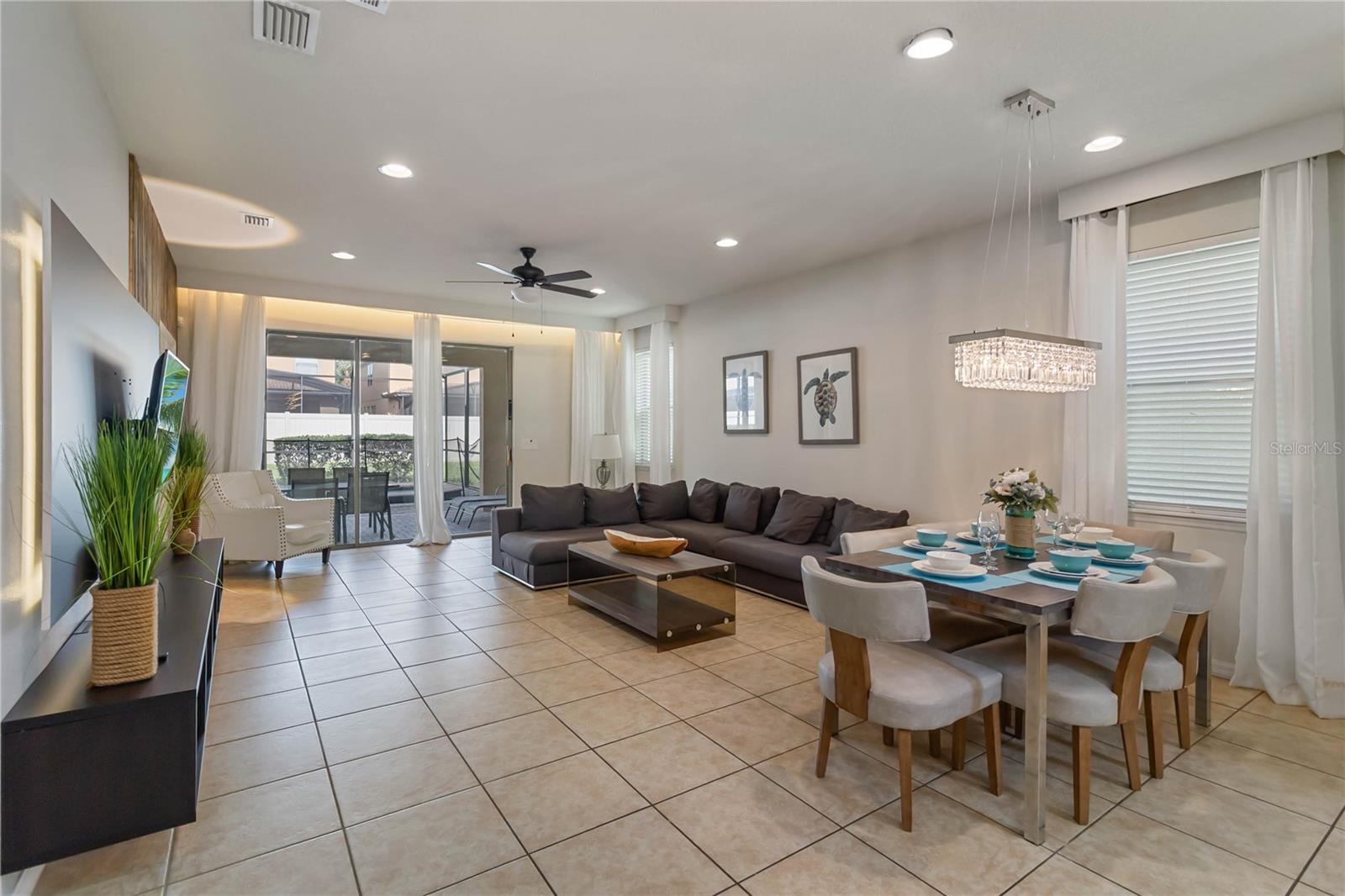 This stunning- newly renovated 6-bedroom, 3,142 sq. ft. Pool home offers the perfect blend of luxury, comfort, and entertainment. Current bookings til the end of 2025. Inside you'll find a spacious open floorplan with LVP flooring and tile throughout- No carpet! The great room seamlessly connects the living and dining space with the private screened lanai and pool/spa. The fully equipped kitchen features SS appliances, granite countertops and a large island with seating. For convenience, a primary bedroom is located on the first floor, offering easy access and privacy. Upstairs, the second floor has a media room for movie nights and fun. This level also includes two charming guest bedrooms, a second primary suite for added comfort, and two themed bunk rooms. Windsor at Westside offers an extraordinary array of resort amenities within this gated community. The Extraordinary 5,000 sq. ft. Clubhouse is your hub for recreation and relaxation. Dive into the fun at the Huge Resort-Style Pool, complete with a Lazy River and Water Slide. Stay active with access to a Gym and Fitness Center as well as multiple sports courts, including Tennis, Basketball, and Volleyball Courts, and a dedicated Soccer Field. Kids Play Area, Games Room, and Video Arcade, ensuring endless entertainment for all ages. On site restaurant, tiki bar and shop. HOA covers exterior landscaping maintenance, internet, cable, and daily trash service. Fantastic location close to all the area’s exciting, world class attractions from theme parks, golf, dining & shopping. Convenient to all major highways and the airport. Check out the Video tour online, schedule a private viewing today!
