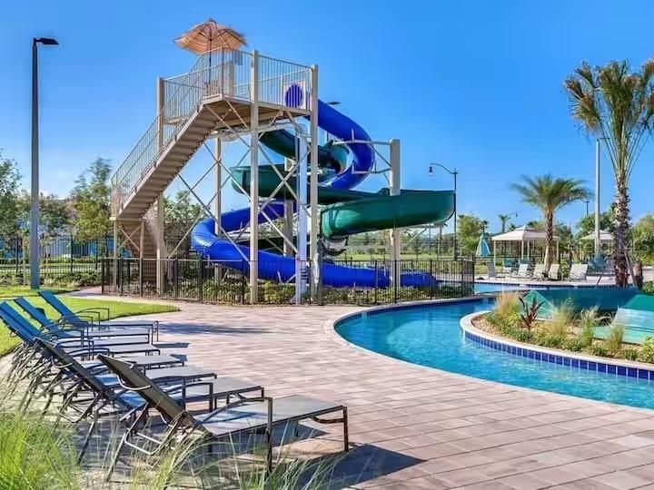 SELLER WILL CONTRIBUTE $5000 TOWARDS BUYERS CLOSING COST. OWNER FINANCING WILL BE CONSIDERED. This home is currently operating as a successful AirBnB. Welcome to this beautifully upgraded 5-bedroom, 4-bathroom CORNER UNIT townhome located in a luxurious RESORT-STYLE COMMUNITY! This fully furnished home showcases light modern tile flooring throughout, a bright and open-concept layout, and a freshly painted interior that enhances its clean, contemporary feel. The stylish kitchen features dark wood cabinetry, sleek stone countertops, and stainless steel appliances, creating a sophisticated and functional space. Step outside to your own PRIVATE, SCREENED-IN POOL—perfect for year-round relaxation and entertaining. The home also offers ample parking nearby, ensuring convenience for both residents and guests. Whether you're looking to invest or live in luxury, this townhome is an EXCELLENT OPPORTUNITY for both SHORT-TERM and LONG-TERM RENTALS. Enjoy an array of world-class community amenities, including a lazy river, large pool, kiddie pool with waterslide, mini golf, volleyball and basketball courts, canoe rentals, and a clubhouse with fitness center. There’s also a restaurant and bar with poolside music, an ice cream shop, and live entertainment on holidays—ensuring fun for the whole family. Ideally located just minutes from Disney, Universal Studios, and all major theme parks, and close to major roadways, shopping centers, and local dining, this home offers the perfect blend of excitement, comfort, and convenience. Don’t miss out on owning in one of the area’s most sought-after communities!