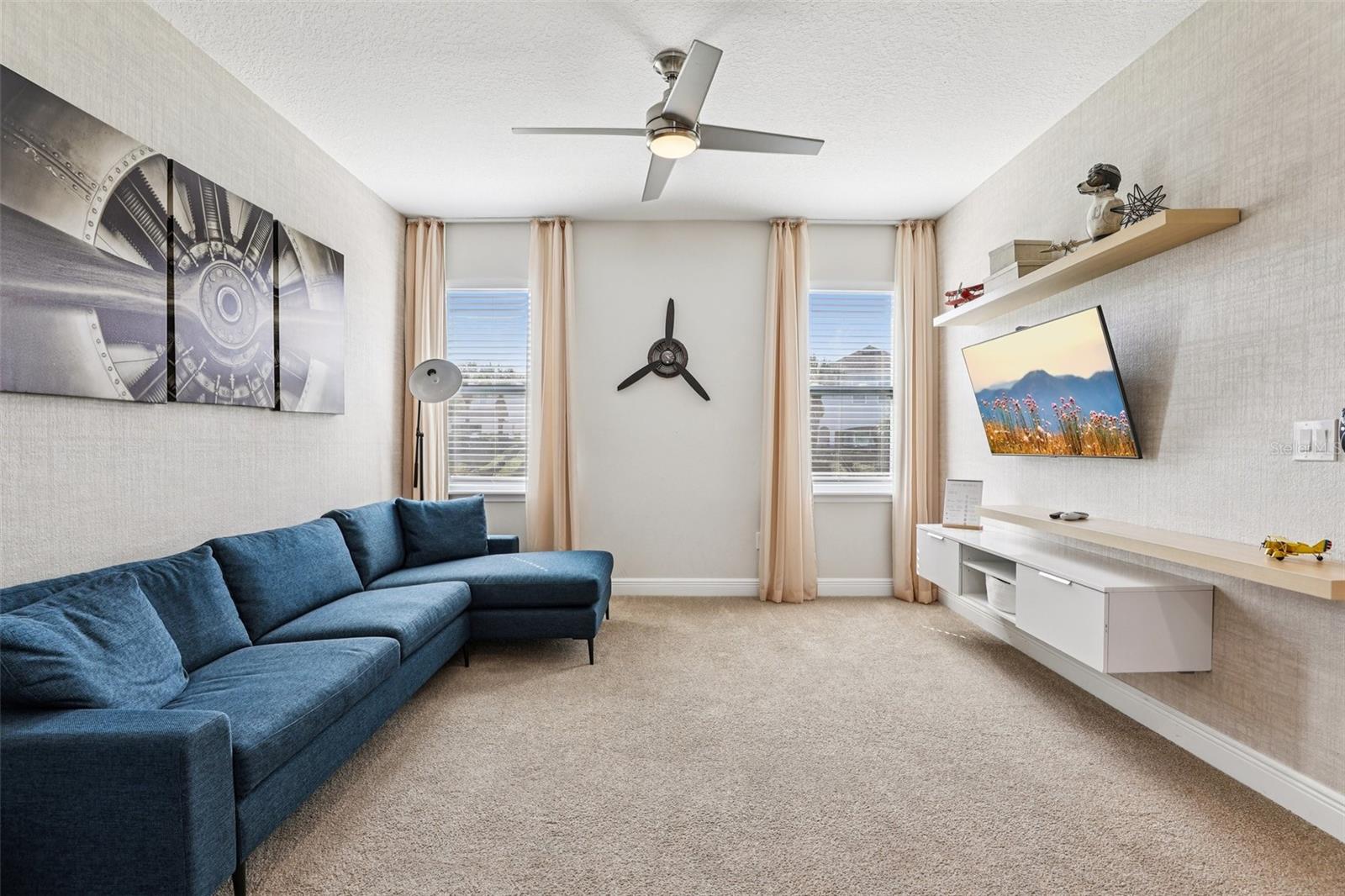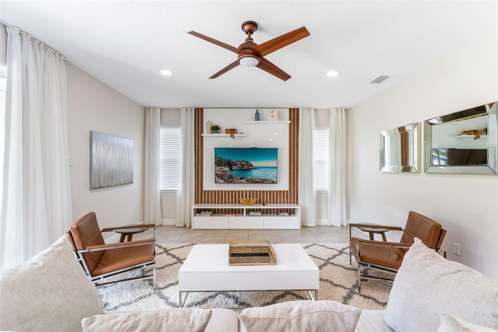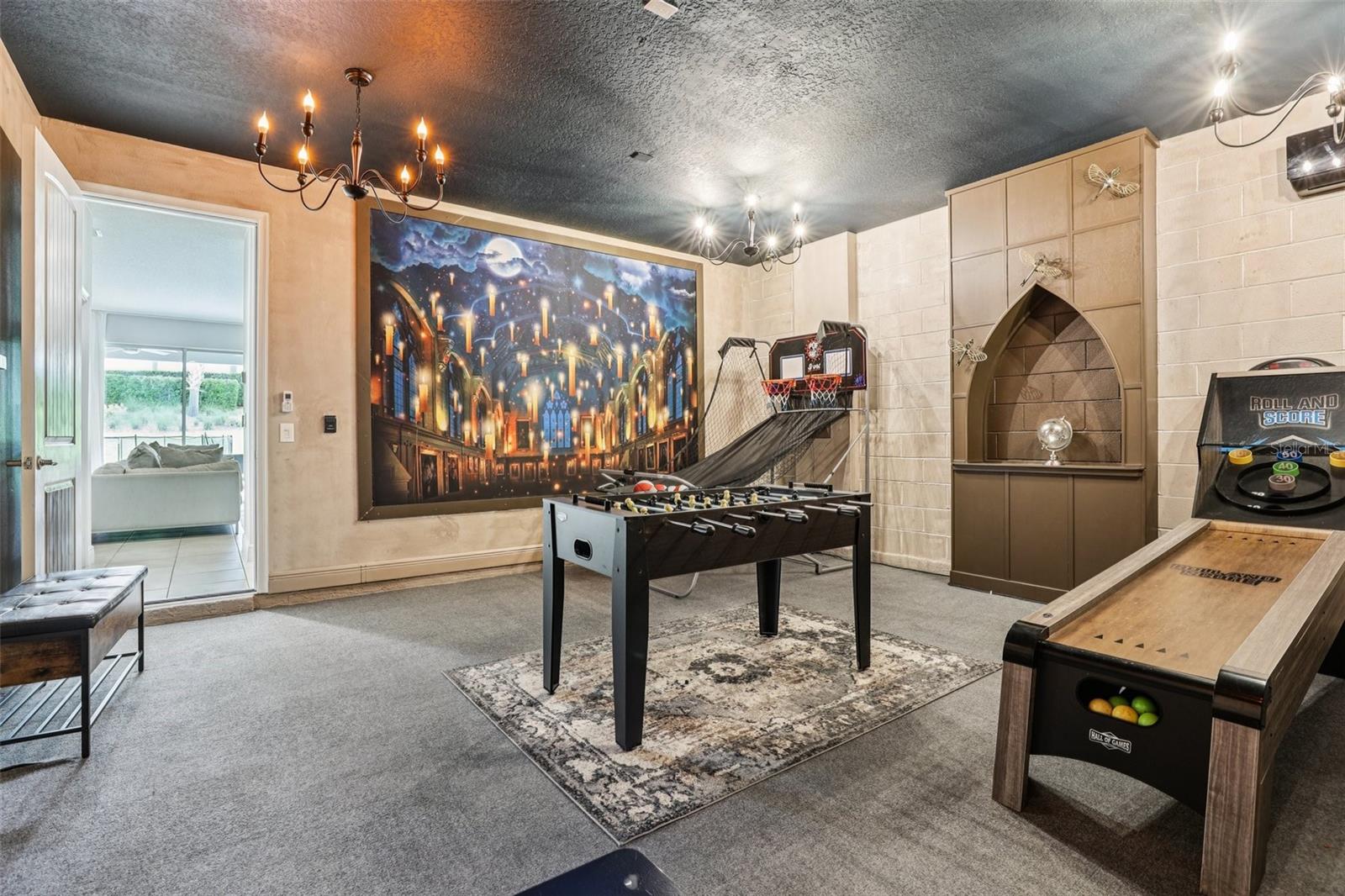 TURNKEY- FULLY FURNISHED! 5 bedroom/5.5 bathroom home is ideal for your next vacation getaway or investment opportunity with potential for short-term rental income. The first floor features an open floorplan with great room, eat in kitchen with island and SS appliances and guest bedroom with en-suite. Step out onto the lanai to enjoy heated pool and spa or the garage which has been converted into a game room. Upstairs, there's a loft/bonus room accompanied by four bedrooms, each with its own private bathroom. Your HOA covers pool maintenance, lawn care, and landscaping, freeing you to indulge in the luxury amenities Encore at Reunion Resort boasts. Reunion West offers resort amenities including a water park, fitness center, basketball courts, volleyball, and tennis. The clubhouse offers a marketplace, casual bar, restaurants, and a concierge desk for booking tickets, spa services, reservations, and resort shuttles. Checkout the 3D tour online and schedule a private viewing today!