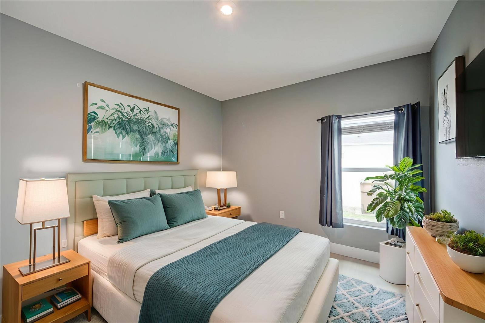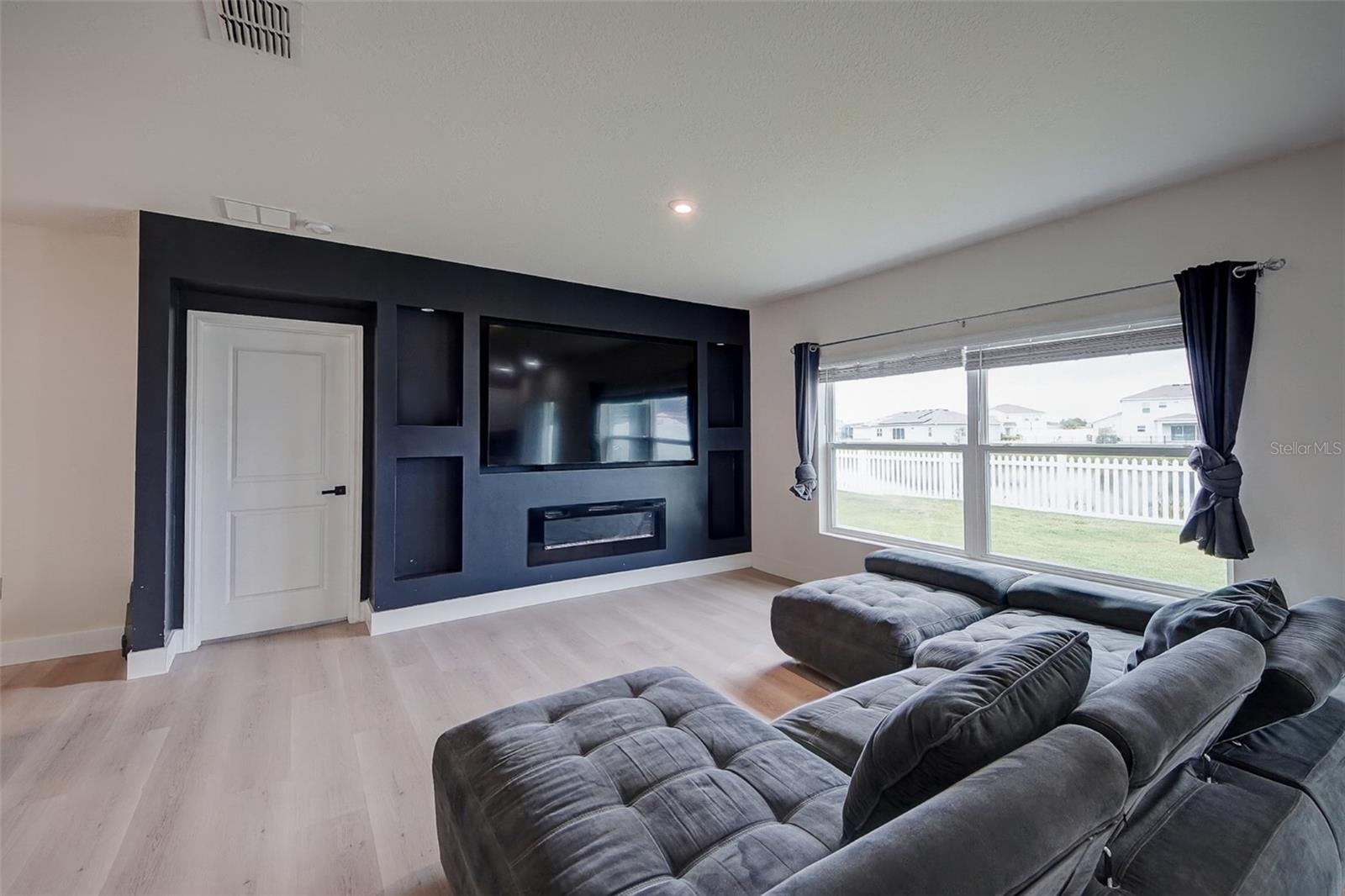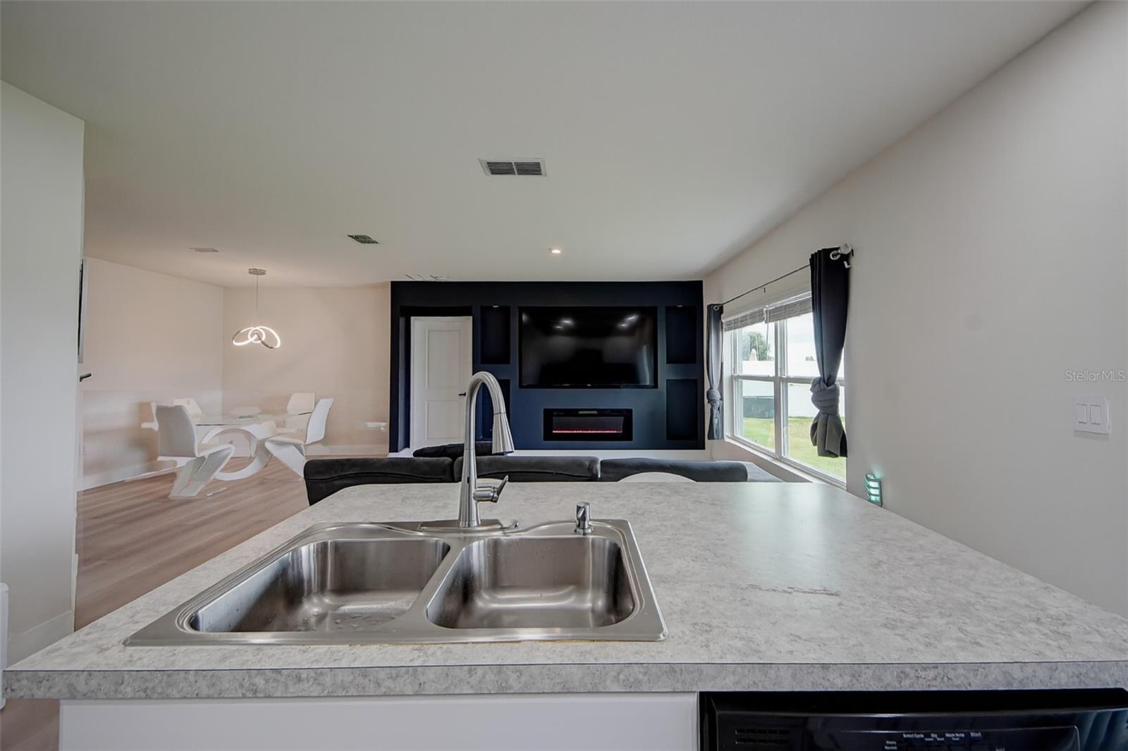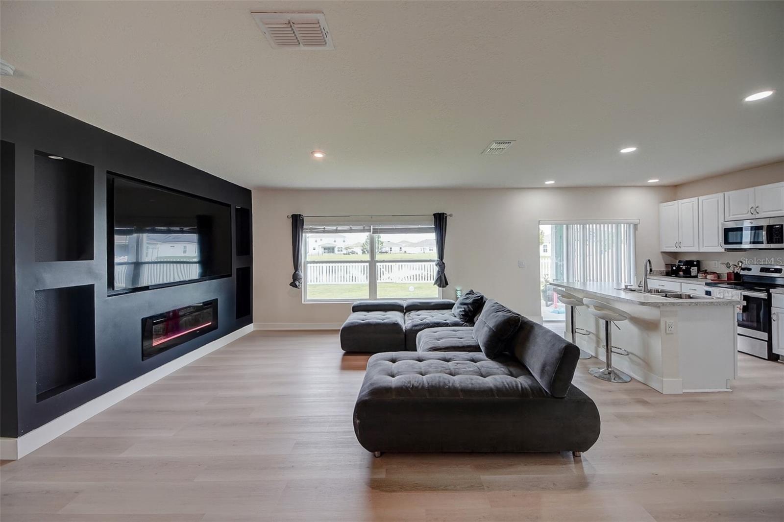 One or more photo(s) has been virtually staged. A charming 3 bedroom - 2 bathroom in the beautiful Stepping Stone community in Kissimmee! Stepping into the home provides a sense of airiness and calm, as you are greeted with big windows leading to a naturesque lakeside view. The spacious living room with the accent wall entertainment cabinet makes it perfect for hosting guests. The open kitchen allows for a great space for everyone to be involved in the fun. The details in the home, such as the light fixtures, artificial fireplace, and new flooring make for a modern, yet inviting atmosphere. Step outside to enjoy some lakeside views and a nicely fenced in backyard, perfect for hosting. Enjoy a quiet, retreated community, away from the hustle and bustle, but still close to restaurants, stores, all the fun that Orlando has to offer. Check it out today!