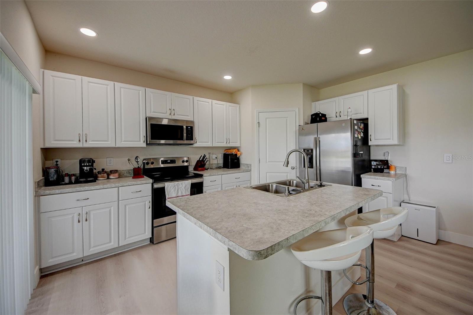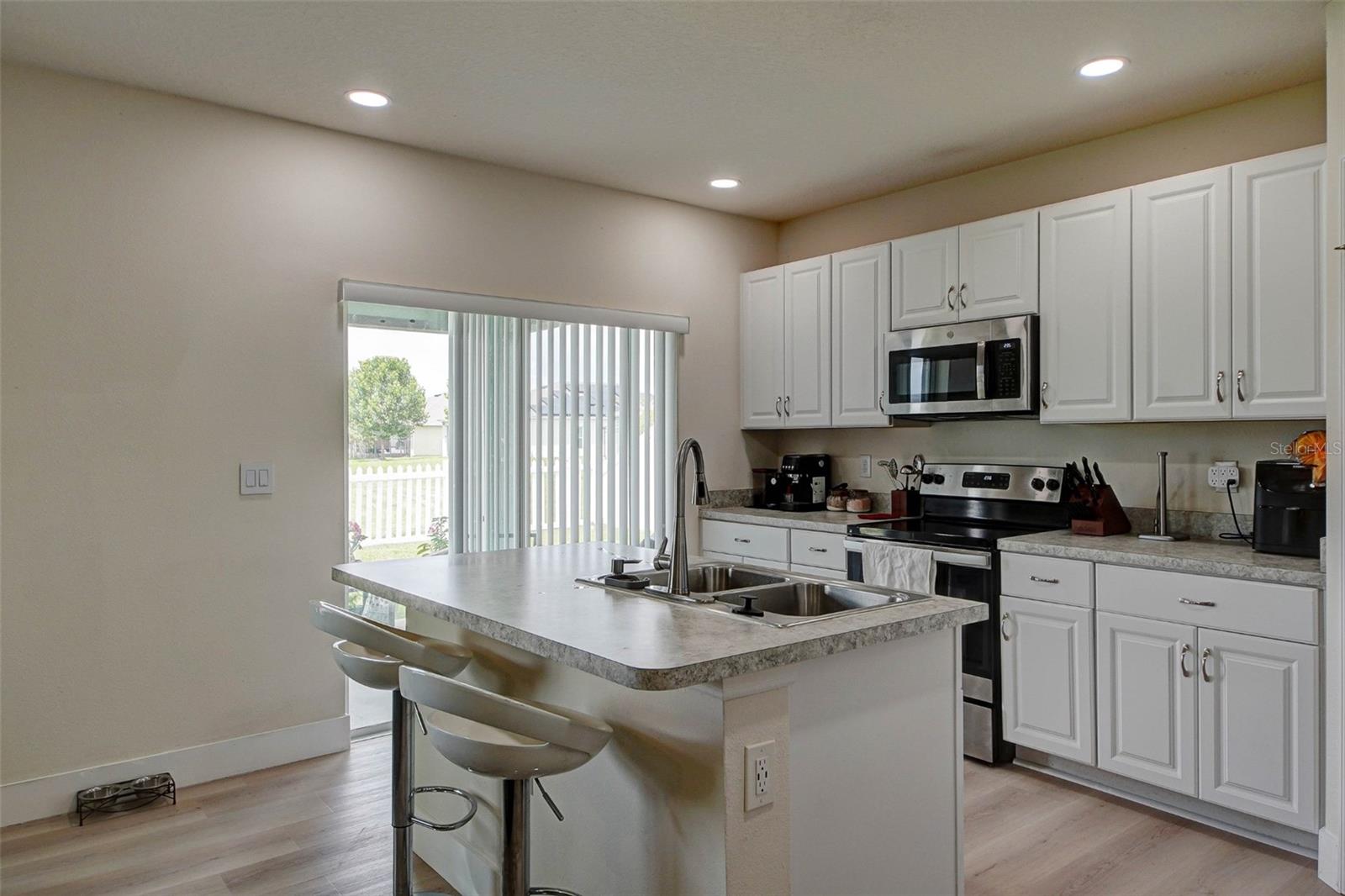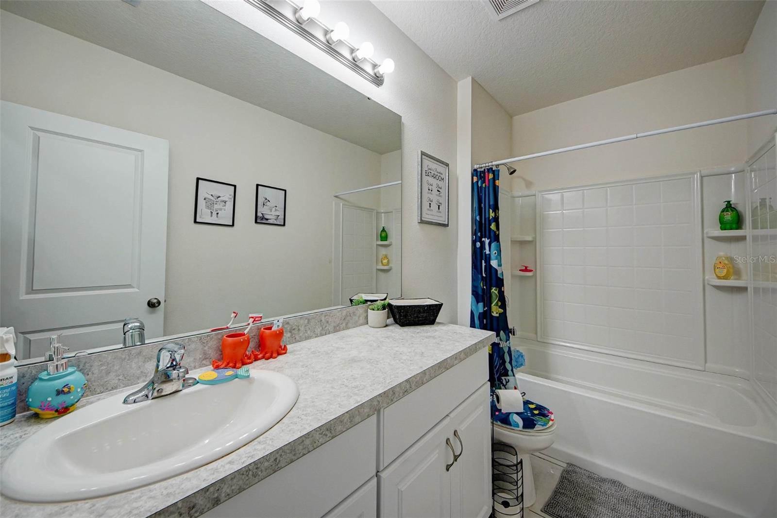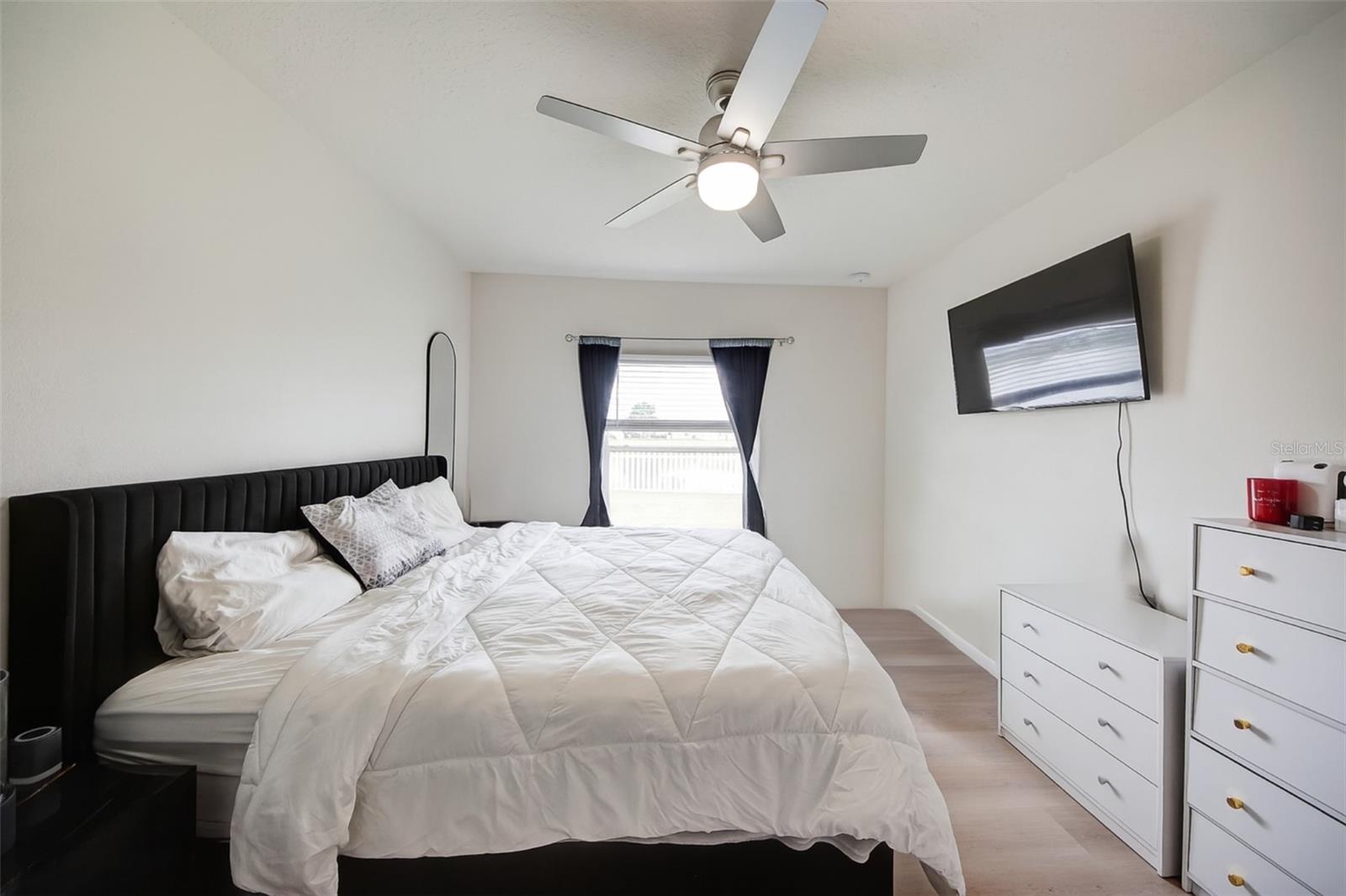 One or more photo(s) has been virtually staged. A charming 3 bedroom - 2 bathroom in the beautiful Stepping Stone community in Kissimmee! Stepping into the home provides a sense of airiness and calm, as you are greeted with big windows leading to a naturesque lakeside view. The spacious living room with the accent wall entertainment cabinet makes it perfect for hosting guests. The open kitchen allows for a great space for everyone to be involved in the fun. The details in the home, such as the light fixtures, artificial fireplace, and new flooring make for a modern, yet inviting atmosphere. Step outside to enjoy some lakeside views and a nicely fenced in backyard, perfect for hosting. Enjoy a quiet, retreated community, away from the hustle and bustle, but still close to restaurants, stores, all the fun that Orlando has to offer. Check it out today!