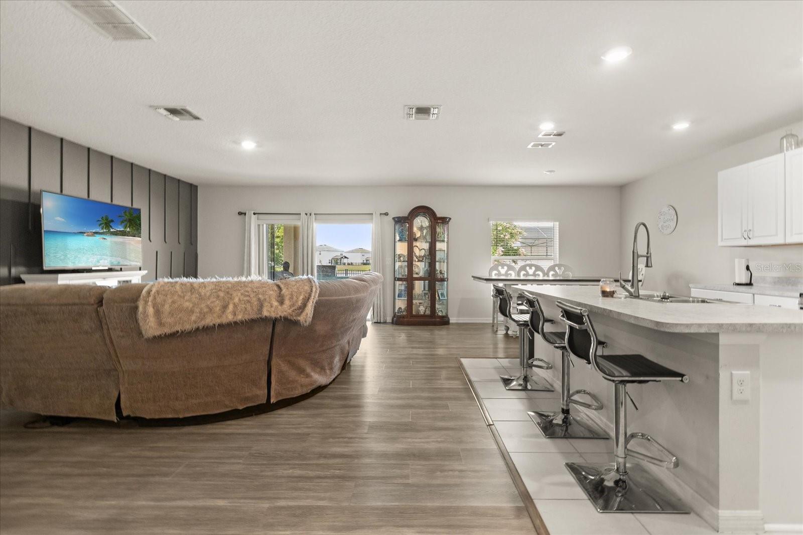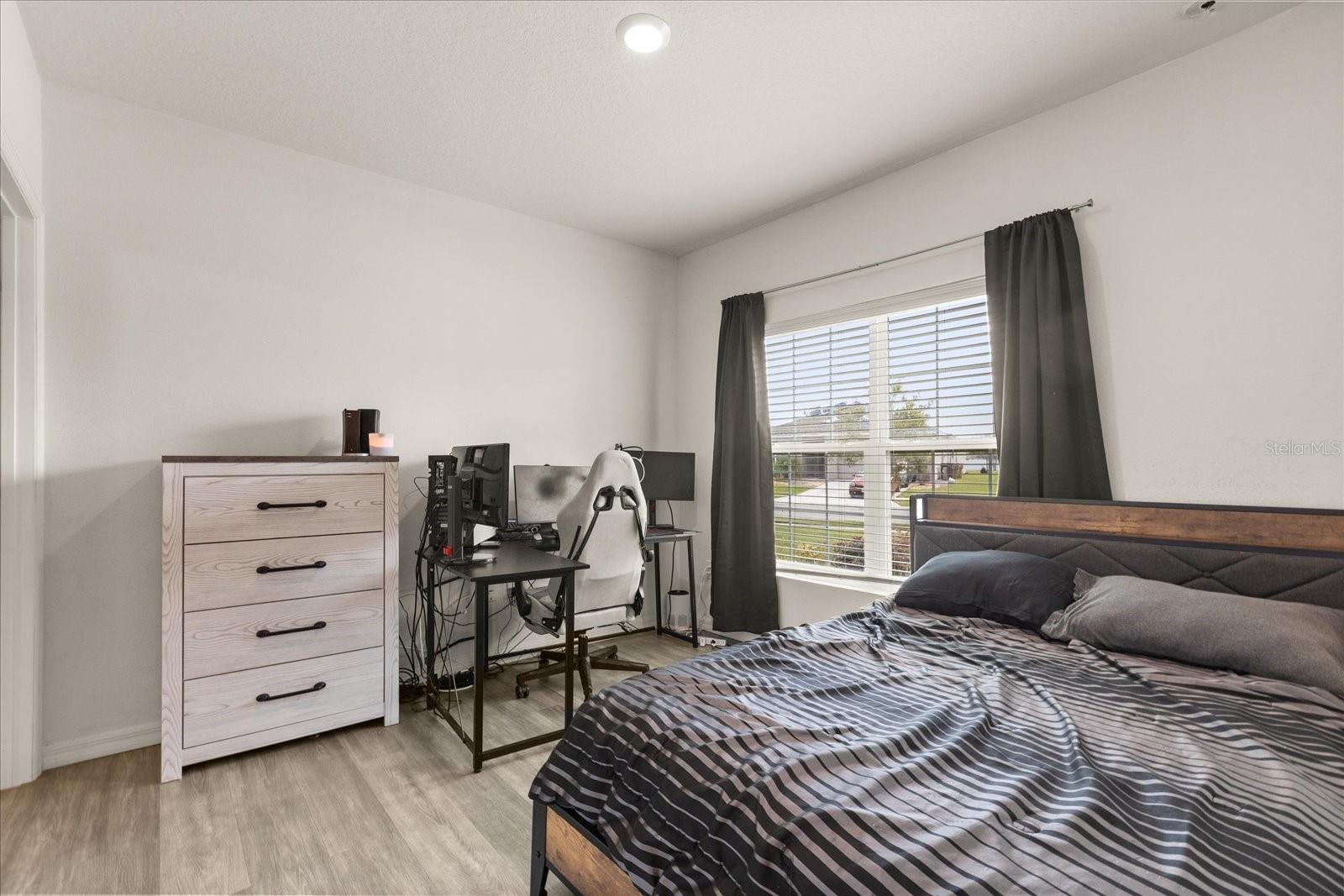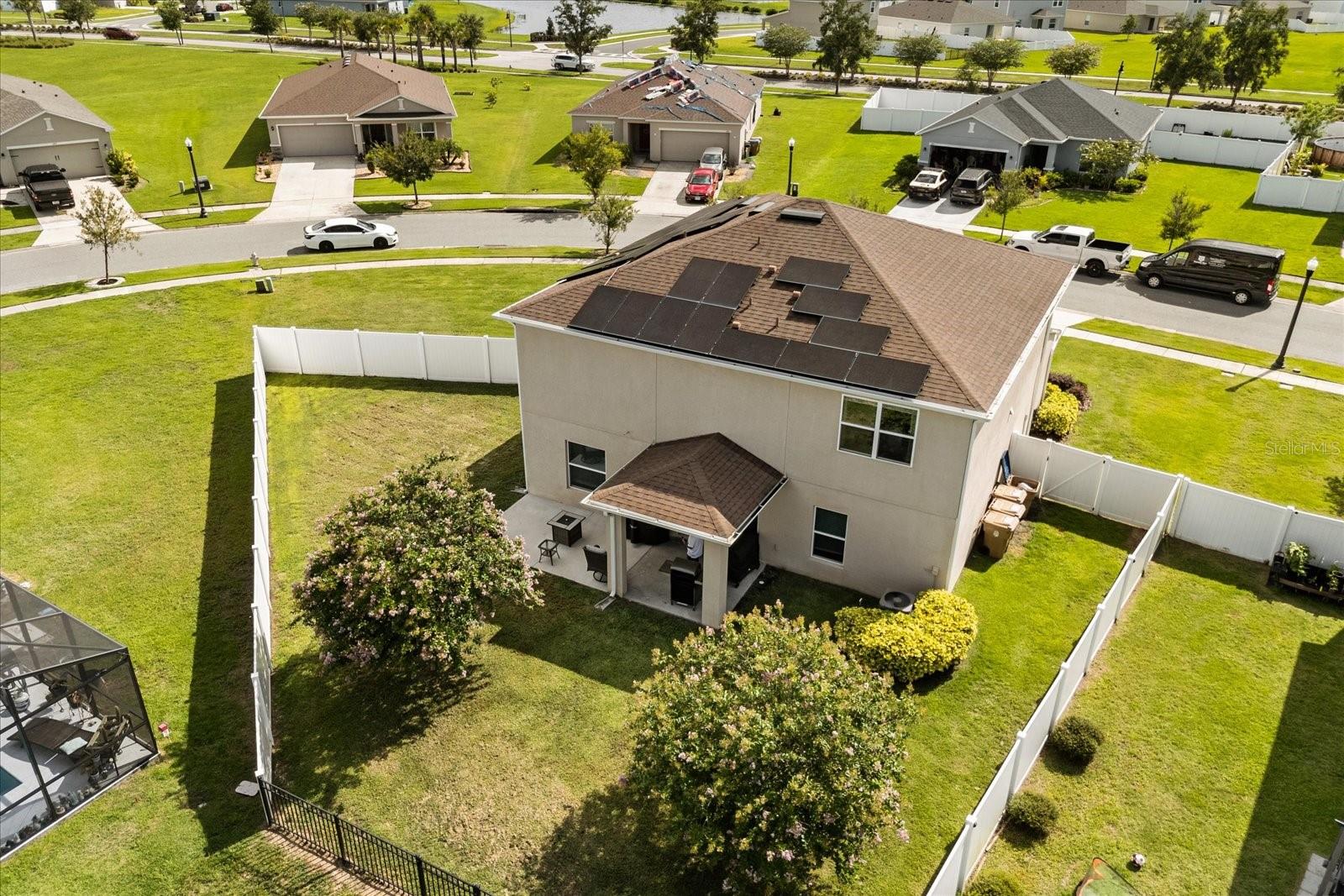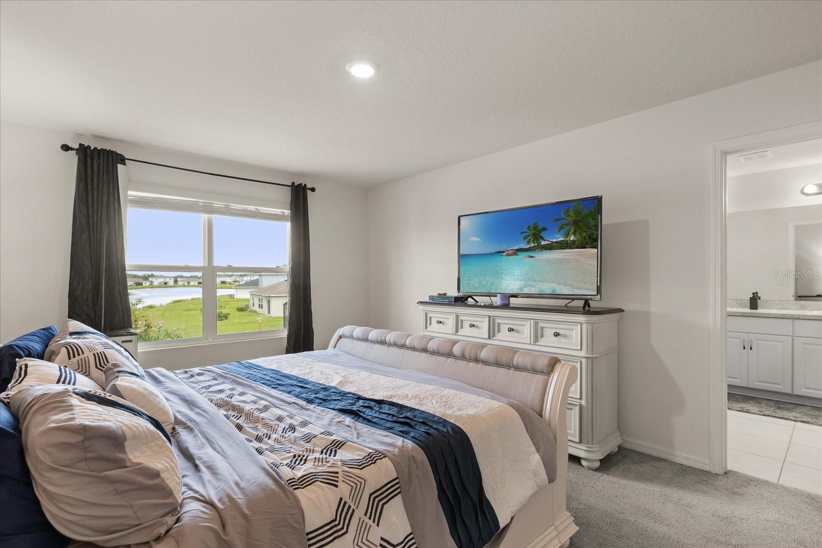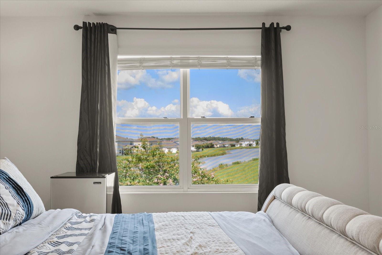 PAID OFF SOLAR PANELS, Discover the largest home on the largest lot in the sought-after Stepping Stone community. This expansive 6-bedroom, 5-bath home offers over 3,000 square feet of living space and was built in 2020 with quality and comfort in mind. Featuring new downstairs paint and updated laminate flooring, this home is move-in ready with a modern, open-concept layout. The main floor includes a welcoming foyer, spacious living and dining areas, and a beautifully appointed kitchen with a center island, stainless steel appliances, breakfast bar seating, and a walk-in pantry. Two bedrooms are located downstairs—one with a private en-suite bath, perfect for guests or multigenerational living. Upstairs, the spacious primary suite includes a walk-in closet and en-suite bathroom. Three additional bedrooms include a Jack-and-Jill bath and an extra full bathroom, along with a large loft and a dedicated laundry room. Enjoy relaxing water views from the fenced backyard, which features both a covered and open patio—ideal for entertaining or enjoying time outdoors. Energy-efficient solar panels which will save hundreds of dollars a month in electricity, a 10-year builder structural warranty, and space for 4+ cars in the driveway plus a 2-car garage offer comfort and peace of mind. Community amenities include a park, playground, and sidewalks throughout. Conveniently located near Disney, theme parks, shopping, dining, and golf, this home combines size, style, and location—all in one.