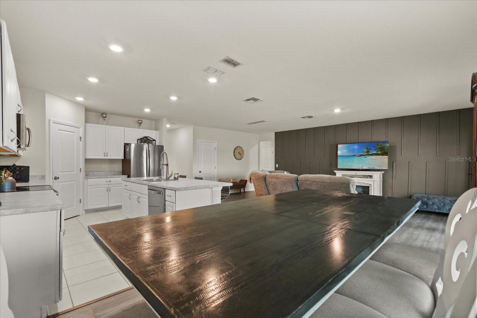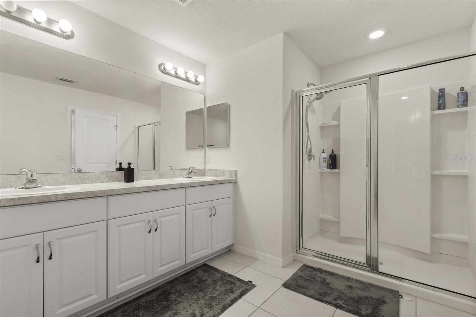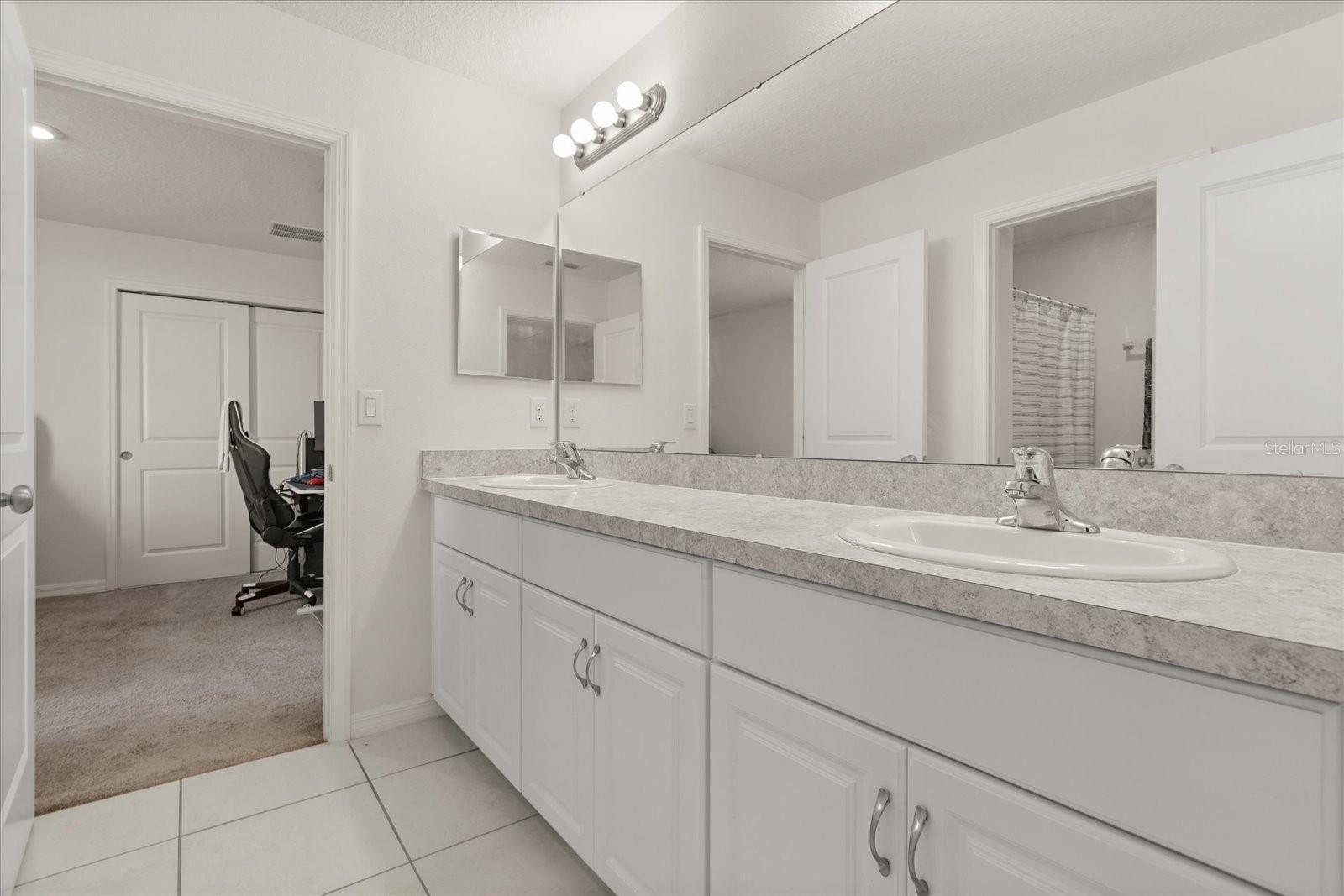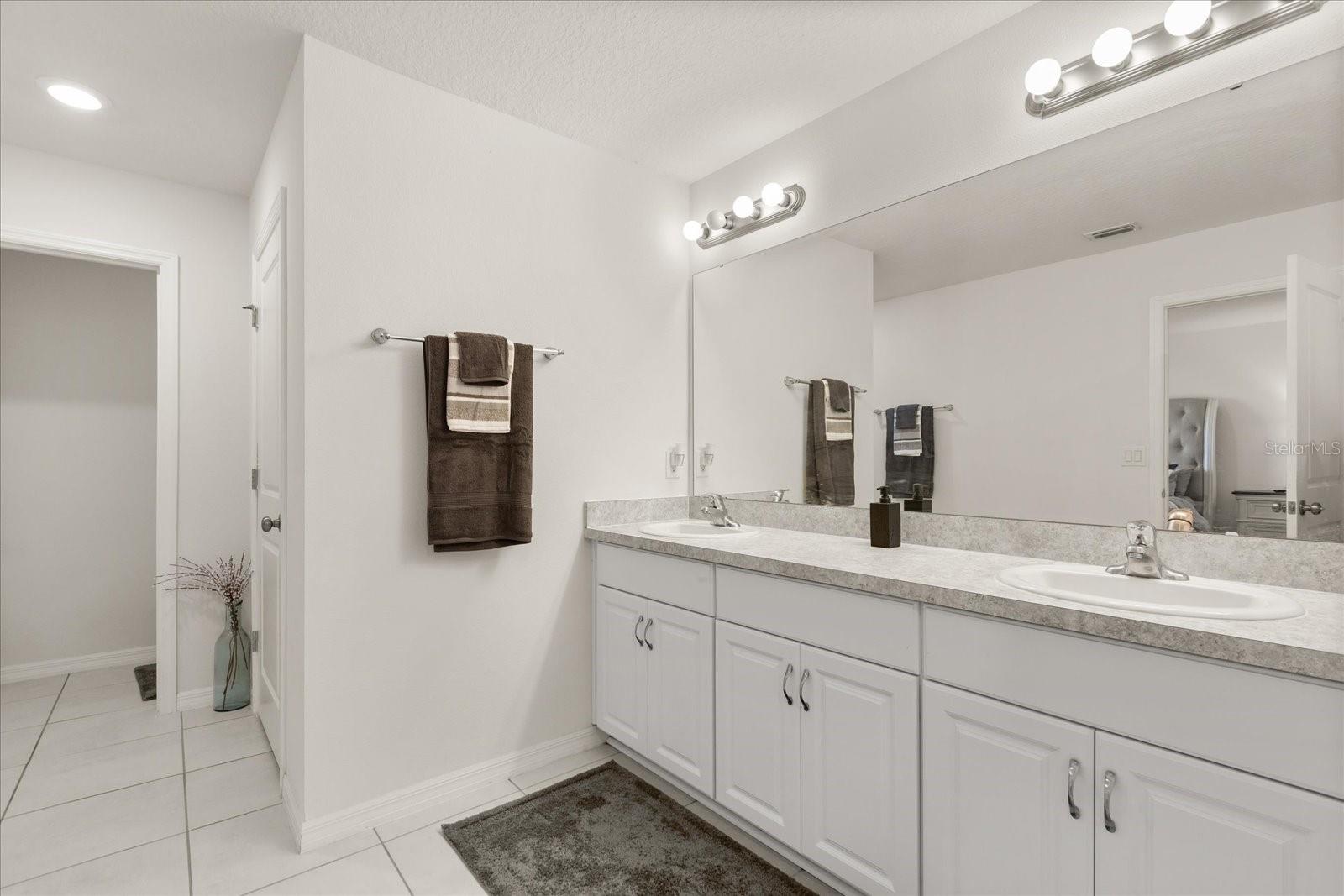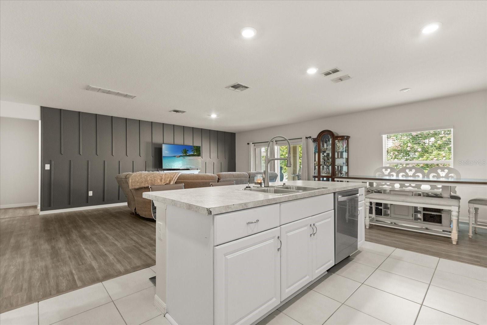PAID OFF SOLAR PANELS, Discover the largest home on the largest lot in the sought-after Stepping Stone community. This expansive 6-bedroom, 5-bath home offers over 3,000 square feet of living space and was built in 2020 with quality and comfort in mind. Featuring new downstairs paint and updated laminate flooring, this home is move-in ready with a modern, open-concept layout. The main floor includes a welcoming foyer, spacious living and dining areas, and a beautifully appointed kitchen with a center island, stainless steel appliances, breakfast bar seating, and a walk-in pantry. Two bedrooms are located downstairs—one with a private en-suite bath, perfect for guests or multigenerational living. Upstairs, the spacious primary suite includes a walk-in closet and en-suite bathroom. Three additional bedrooms include a Jack-and-Jill bath and an extra full bathroom, along with a large loft and a dedicated laundry room. Enjoy relaxing water views from the fenced backyard, which features both a covered and open patio—ideal for entertaining or enjoying time outdoors. Energy-efficient solar panels which will save hundreds of dollars a month in electricity, a 10-year builder structural warranty, and space for 4+ cars in the driveway plus a 2-car garage offer comfort and peace of mind. Community amenities include a park, playground, and sidewalks throughout. Conveniently located near Disney, theme parks, shopping, dining, and golf, this home combines size, style, and location—all in one.