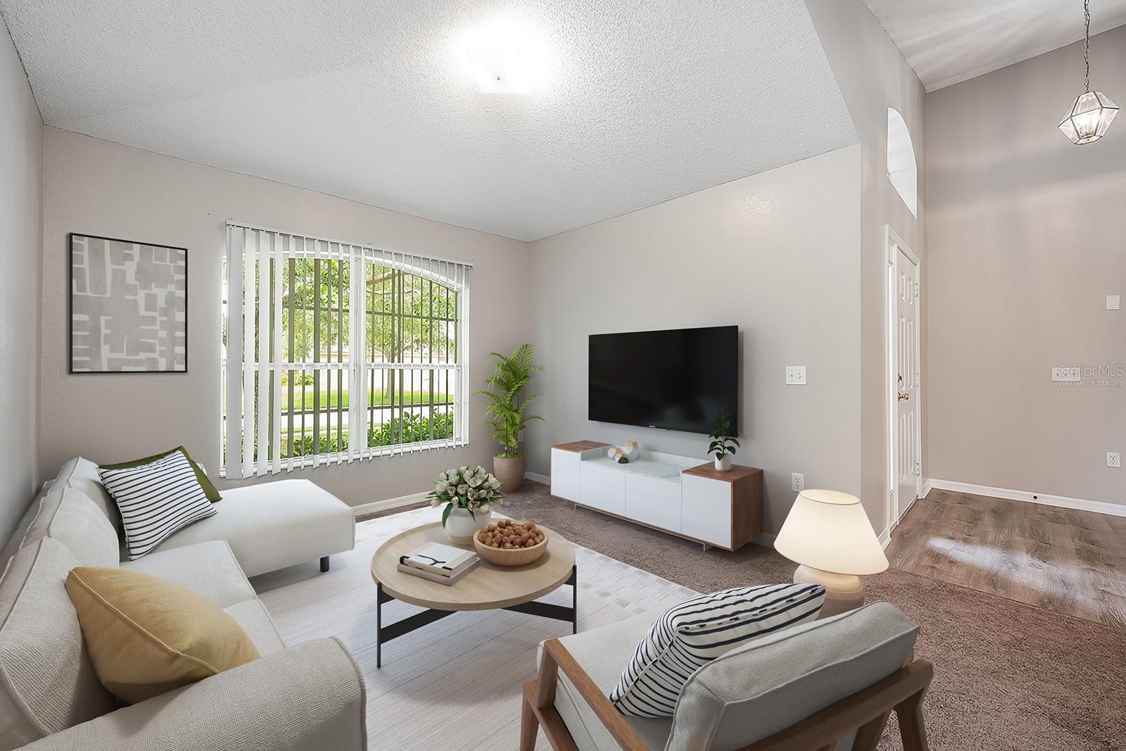 One or more photo(s) has been virtually staged. Seller may consider buyer concessions if made in an offer ~ Welcome to your new home sweet home with 3-bedrooms and 2-baths in the Remington golf community of Kissimmee – delivering spacious living, fresh updates, and serene GOLF COURSE VIEWS! Open living and dining areas await you inside, highlighted by VAULTED CEILINGS that enhance the sense of space and light. FRESH INTERIOR PAINT gives the home a clean, updated feel, while large windows draw your eye to the scenic greenspace and golf course just beyond the property line. At the heart of everything sits a comfortable kitchen featuring a breakfast bar for casual dining or entertaining, ample storage including a pantry, and a functional layout ideal for everyday living. At the front of the home, a formal living area or flex space offers versatility – whether you need a home office, den or additional living space. Your PRIMARY SUITE is a true retreat, complete with DUAL WALK-IN CLOSETS and a private en-suite bath for added comfort and convenience. Outside, a covered lanai awaits for the perfect place to enjoy a morning cup of coffee or evening breeze while taking in the peaceful golf course setting. The Remington community is known for its wide range of amenities; including a golf course, COMMUNITY POOL, sports courts and more. Ideally located near Florida’s Turnpike and SR 417, you will enjoy easy access to Lake Nona, Medical City, Orlando International Airport, and it’s a straight shot to area theme parks. Nearby East Lake Toho, Lakefront Park, and a variety of restaurants and shops make this location even more appealing. Whether you are in the market for a primary residence or seasonal escape, this home offers comfortable living in a community that supports an active, convenient lifestyle. Call today to schedule a tour and discover all the possibilities this home and the Remington community have to offer!