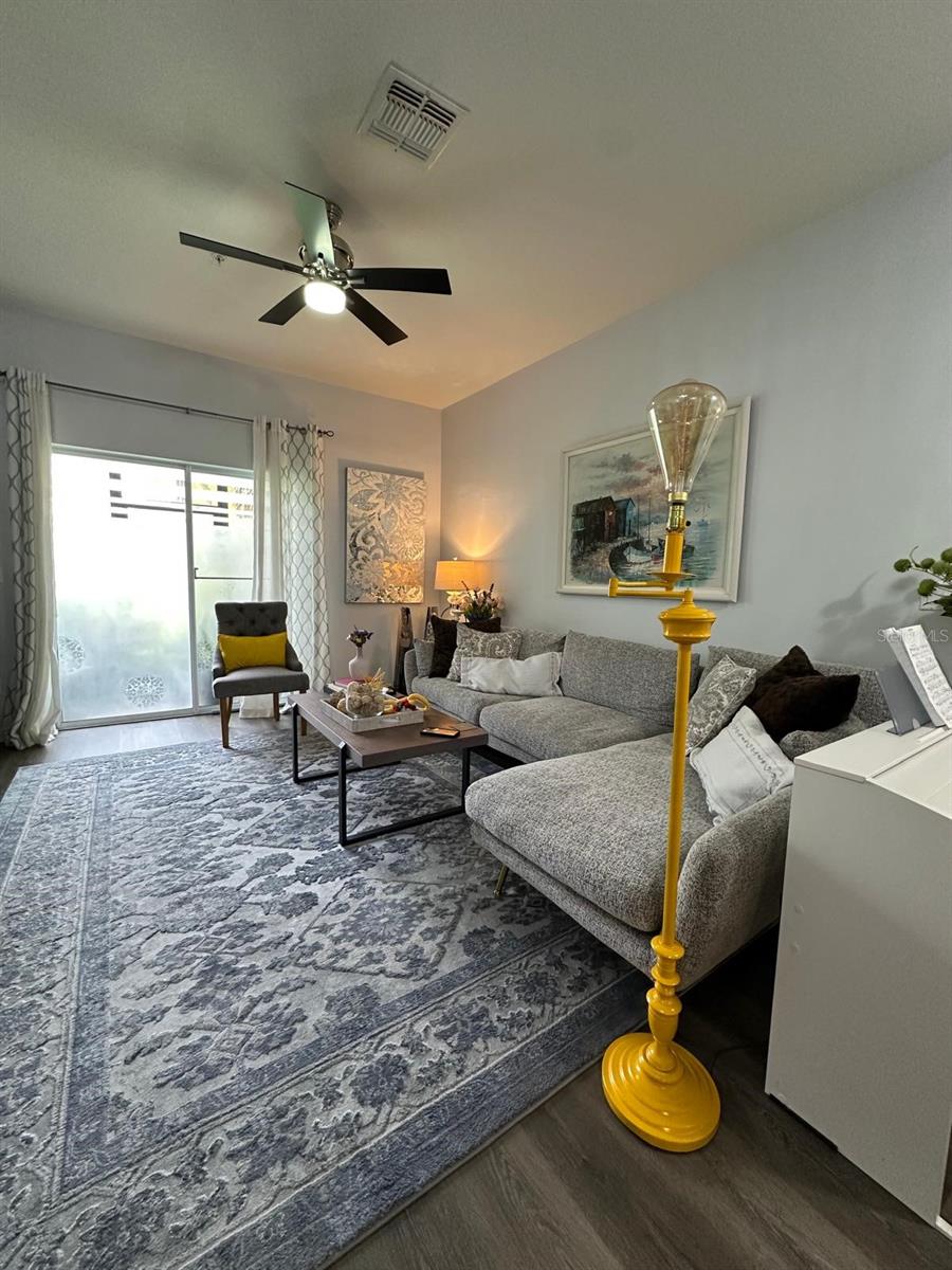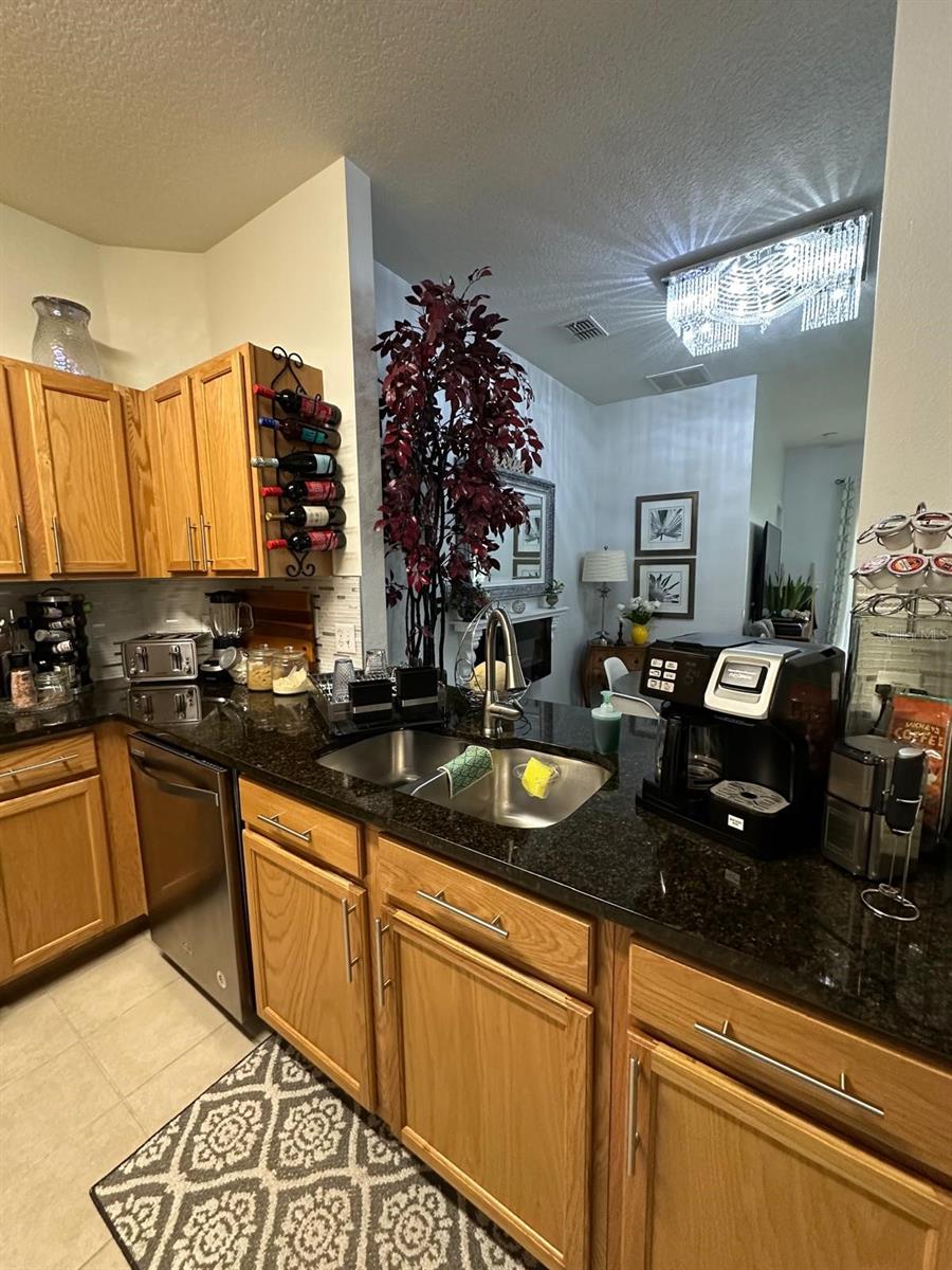 Beautiful single-story first-floor condo at 7519 Bliss Way, just 1.5 miles from the entrance to Disney property! This charming and well-maintained unit features no stairs, offering easy, accessible living with three bedrooms and two bathrooms, including a comfortable master suite with his and hers walk-in closets and a private en-suite bath. The open-concept floor plan flows from the kitchen—featuring granite countertops—to the dining and living areas, leading to a screened-in patio with peaceful views of the lush green conservation area. Recent upgrades include luxury vinyl flooring throughout, ceiling fans in the living room, master bedroom, and one additional bedroom, and a storage cabinet in the guest bathroom. Additional features include a one-car garage with direct access to the unit, private parking space, and ample guest parking. The unit is sold unfurnished, but furniture can be negotiated separately, giving you flexibility for personal use or rental. Oakwater Resort offers gated entrance and beautifully landscaped grounds, heated pool and spa, clubhouse with fitness center and game room, tennis, basketball and pickleball courts, catch-and-release fishing lake, and lush tropical landscaping throughout. Conveniently located minutes from Walt Disney World, major highways, restaurants, and shopping—including Walmart right next door—this condo is ideal as a primary residence, vacation retreat, or investment. This is also an excellent opportunity for short-term rental investors—first-floor units like this one are highly sought after for their convenience and accessibility. Schedule your private showing today and make this beautiful home yours!