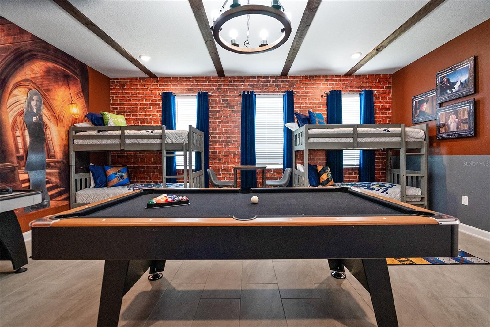 Price reduced $30,000! Discover this exceptional 8-bedroom, 5-bath home plus two converted game rooms used as bedrooms (10 sleeping areas total) in the sought-after Cove at Storey Lake—steps to the clubhouse! Boasting over 4,200 square feet of beautifully designed living space, this spacious residence is ideal for large families or a high-performing vacation rental. The home features a modern kitchen with stainless steel appliances, an open-concept layout, and a private screened-in pool and spa — all backing onto open space with no rear neighbors, providing enhanced privacy and a peaceful outdoor setting. Themed bedrooms throughout the home, including Harry Potter, Mickey Mouse, Pokémon, and Star Wars, create a fun and immersive experience for guests of all ages. The main floor offers two generously sized bedrooms, including a primary suite with direct pool access. One of the first-floor recreation rooms has been transformed into a Harry Potter-themed room with pool tables and two custom bunk beds. Upstairs, you’ll find six additional bedrooms plus a large recreation room converted into a Star Wars-themed bedroom with three beds, as well as a spacious loft and multiple full bathrooms — all thoughtfully arranged for comfort and privacy. Enjoy world-class resort amenities including a clubhouse, fitness center, lazy river, splash park, sports courts, mini golf, and more — all within a gated, 24-hour guarded community just minutes from Disney, Universal Studios, and Orlando’s premier attractions. Whether you're looking for a second home or investment opportunity, this home offers a rare combination of size, location, and value. Schedule your private showing today!