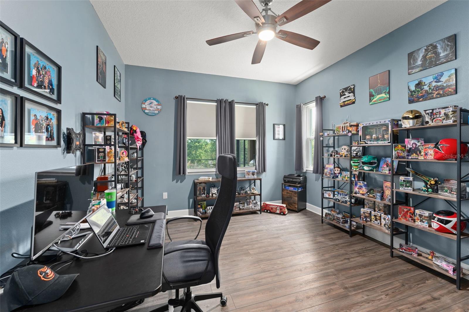 Welcome to this impressive nearly 4,000 sq ft residence tucked away on a tranquil half-acre lot in the sought-after Kissimmee area. With 4 spacious bedrooms, 3 full bathrooms, a 3-car garage, and a screened-in pool, plus an office and fully paid-off solar panels, this home is designed for both comfortable living and exceptional entertaining. This property also offers the added benefit of an ASSUMABLE VA LOAN, providing a potential opportunity for qualified buyers to take advantage of favorable loan terms. From the moment you arrive, you're greeted by a beautifully manicured front yard with elegant paver walkways leading to a stately façade. The front entrance sets the tone with dual sidelites, an arched transom window, and a soaring second-story window that showcases the chandelier inside — a true statement of the grandeur that awaits. Step inside to the inviting family room, where natural light fills the space. To the right, discover a full guest bathroom conveniently situated between a well-sized guest bedroom and a versatile office space. Continue into the heart of the home and experience an open-concept layout connecting the kitchen, dining, and living areas. Accent walls add warmth and style, while French doors open to your private backyard oasis. The chef’s kitchen is a showstopper, featuring a large island with breakfast bar seating, stone countertops, rich dark cabinetry, stainless steel appliances, and a built-in double oven. Adjacent to the kitchen is a formal living room—perfect for entertaining—and easy access to the laundry room and garage. Upstairs, you’re welcomed by a spacious loft currently used as a home theater, complete with a projector and screen that convey with the home. To the left lies the luxurious primary suite, boasting a tray ceiling, stylish barn door, walk-in closet, and a spa-inspired ensuite with dual vanities, a centerpiece soaking tub, and a glass-enclosed walk-in shower. On the opposite side of the loft, you'll find two more generously-sized bedrooms with a full bath featuring a tub/shower combo and an extended vanity for extra space. Step outside into your private retreat. The expansive screened-in patio is ideal for al fresco dining, sunbathing, or simply lounging poolside. The resort-style pool features a tranquil stone waterfall, all set against the backdrop of a serene conservation area, offering peace and privacy with no rear neighbors. Additional features include fully paid-off solar panels, providing energy efficiency and long-term savings, and security cameras throughout the property that will convey with the home—offering peace of mind from day one. This home has it all — space, style, and serenity. Don’t miss your chance to own a piece of paradise at 2793 Autumn Breeze Way. Schedule your private showing today!**This house comes with a REDUCED RATE through the seller's preferred lender. This is a lender-paid rate buydown that reduces the buyer's interest rate and monthly payment.**
