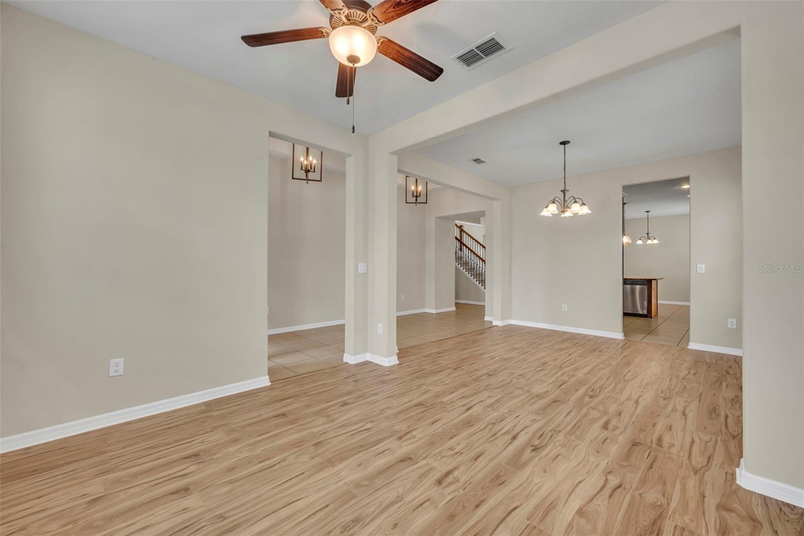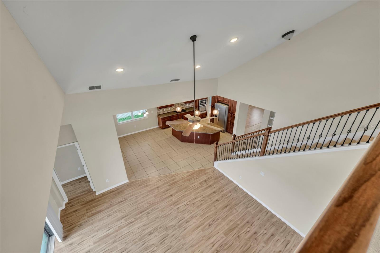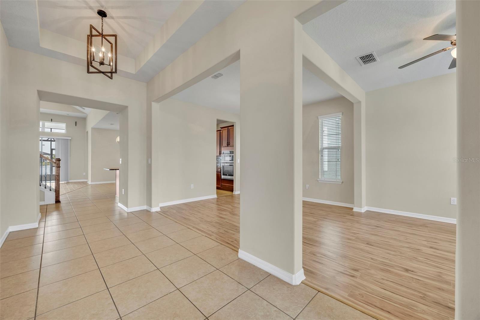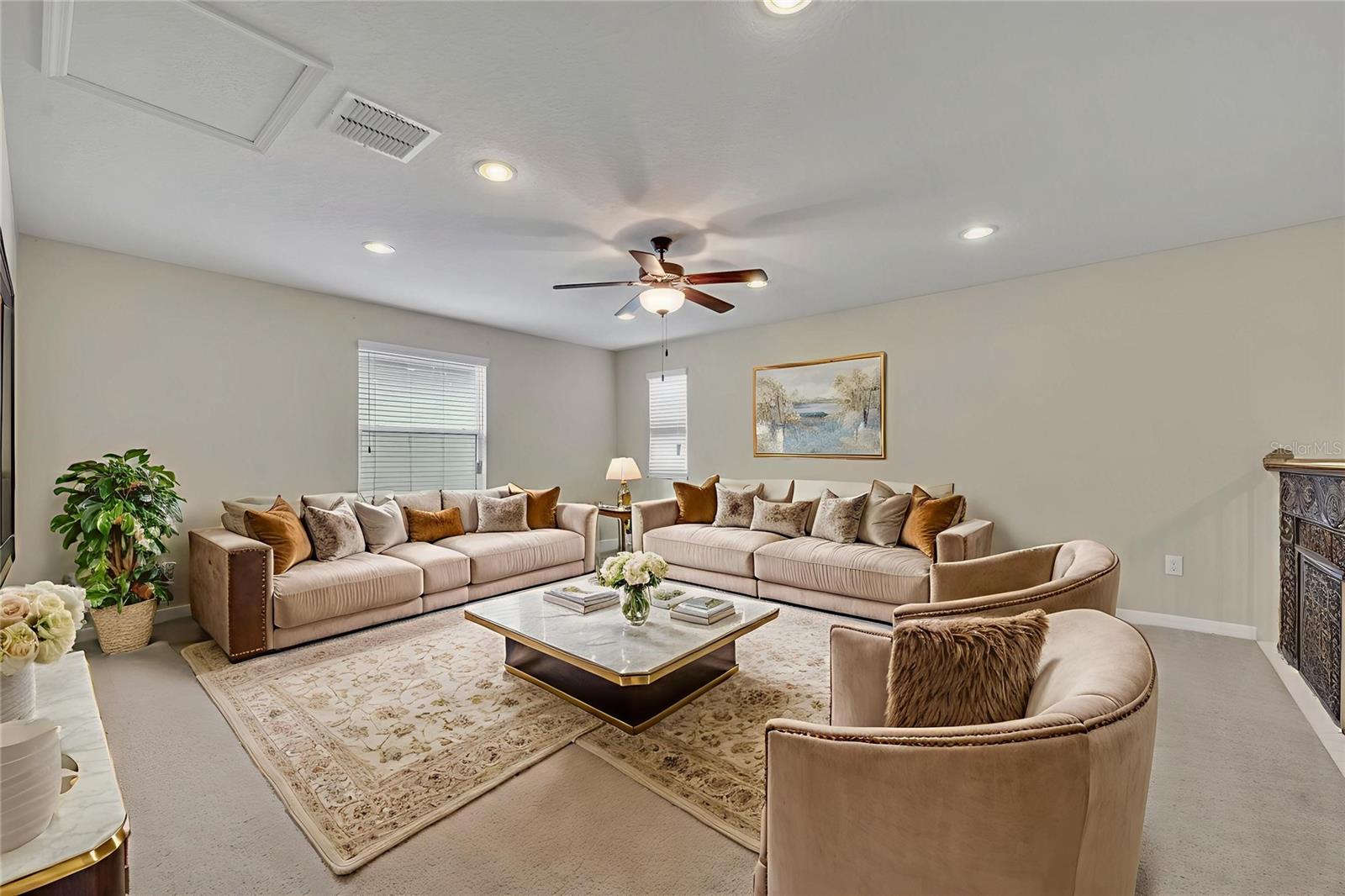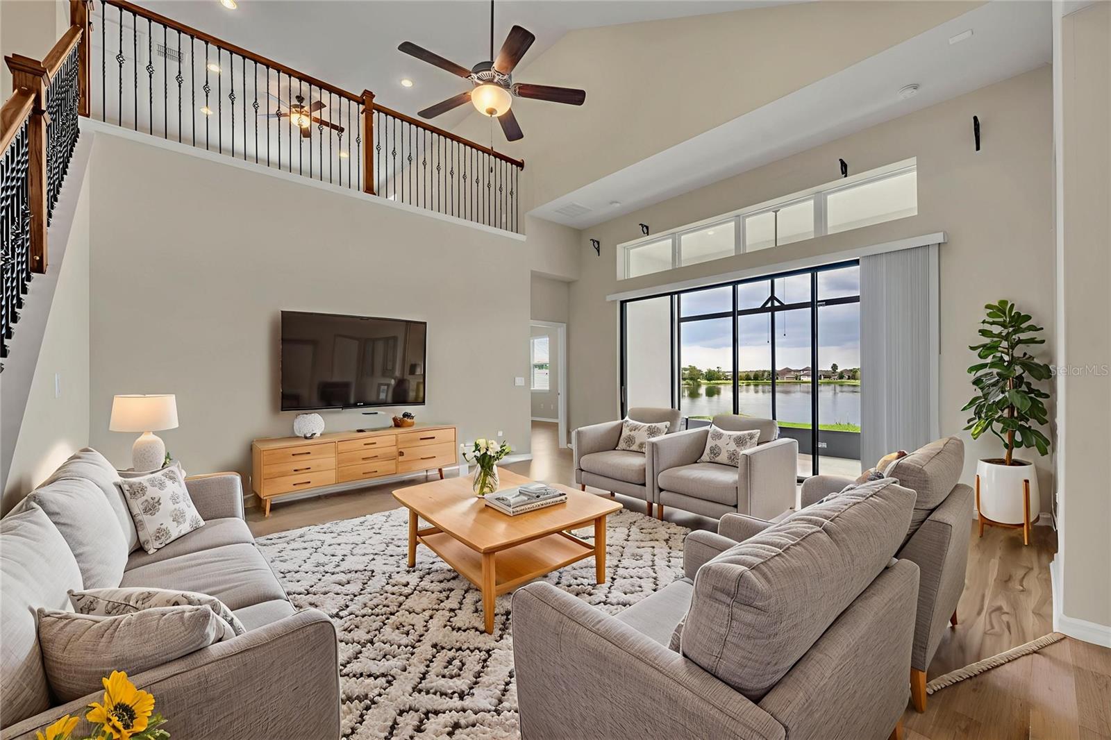 One or more photo(s) has been virtually staged. Welcome to this beautiful 5 Bed/ 4 Bath single family house with AMAZING WATER VIEW in the highly sought-after gated Tapestry community, conveniently located near the “Loop” shopping center. With high ceiling and over 3100 sqft, this beautiful home features NEW LAMINATE FLOORING, Luxury Gourmet Kitchen with granite countertops, stainless steel appliances and stylish back splash. The spacious Master Bedroom and 1 additional bedroom are ensuite with private bathroom with water view are located on the main level. One bedroom with a full bath and a HUGE LOFT is located on the second level, perfect to be used a game/theater room or guest and second living room. The spacious rear lanai are overlooking the massive pond with water fountain and light effect at night, and it's perfect for relaxing or outdoor activities. Tapestry is a gated community with 24-hour security and feature resort style swimming pool, fitness center, walking trail, dog park and playgrounds. It also has multi-purpose activity room, locker rooms, a ballroom, an upgraded catering kitchen, sports fields, and BBQ pavilion. Renaissance Charter School At Tapestry, The Prodigy Learning center and other public schools are located right outside the community. Schedule a private today and make this beautiful home yours...