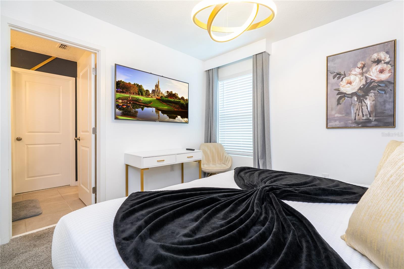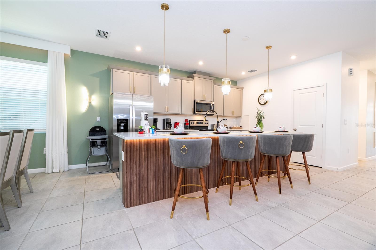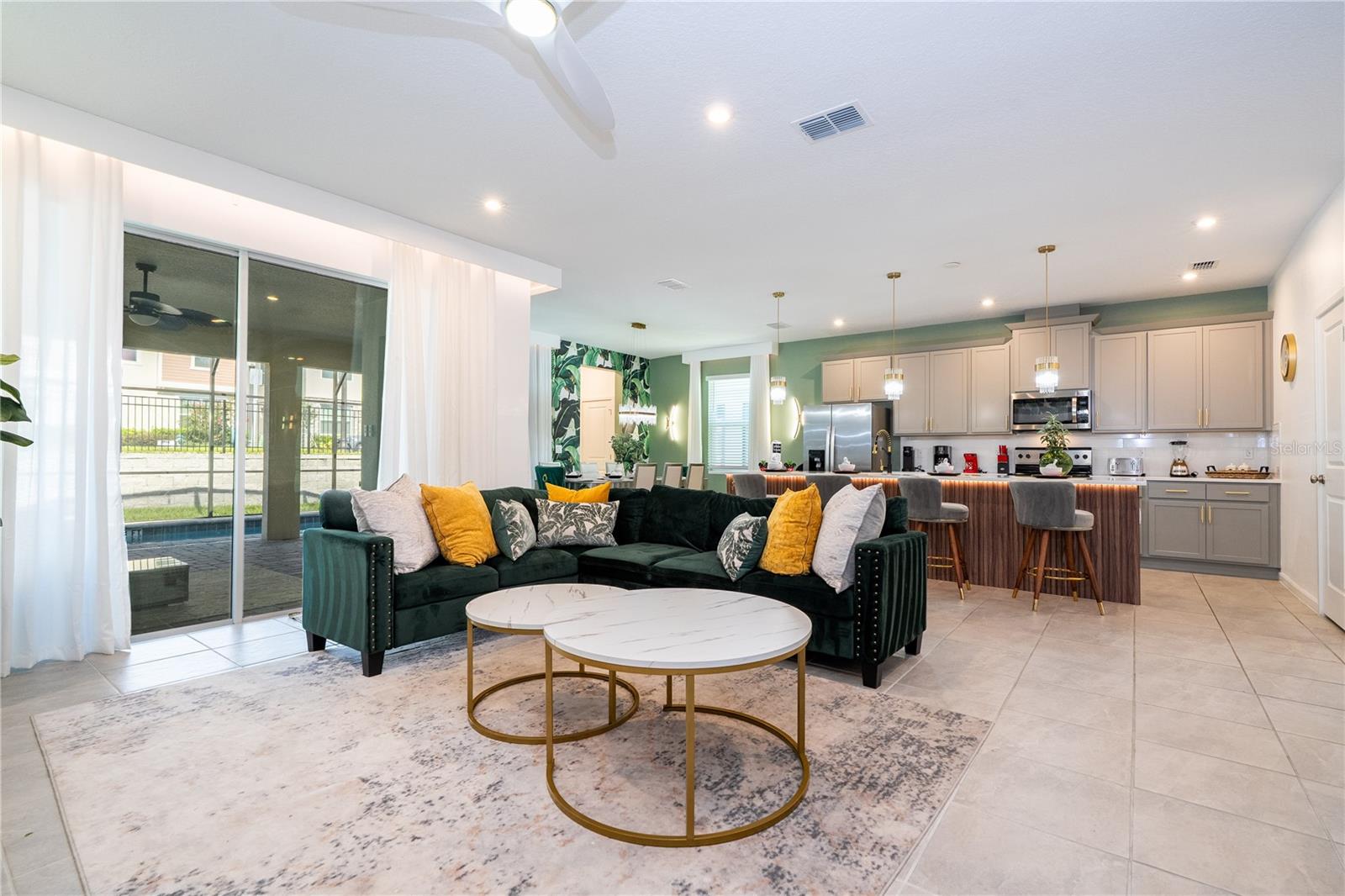 Welcome to 2370 Salty Winds Way, a stunning two-story home located in the highly desirable gated community of Solara Resort in Kissimmee. Built in 2023, this fully furnished 6-bedroom, 3.5-bathroom property is ideal for use as a vacation home, short-term rental, or full-time residence. Inside, you'll find an open-concept layout filled with natural light, high ceilings, and modern finishes. The spacious kitchen features stainless steel appliances and a large center island perfect for cooking and entertaining. Each bedroom is thoughtfully furnished and includes its own TV, offering comfort and convenience for guests or family members. Step outside to your private screened-in pool and spa, along with a covered lanai that provides the perfect space for relaxing or hosting. The home is located just minutes from world-renowned attractions such as Walt Disney World and Universal Studios, as well as shopping, dining, and major highways. Residents and guests also enjoy access to premium resort-style amenities including a clubhouse, pool, fitness center, and more. This home offers the perfect combination of style, location, and functionality—all within a vibrant vacation-friendly community.