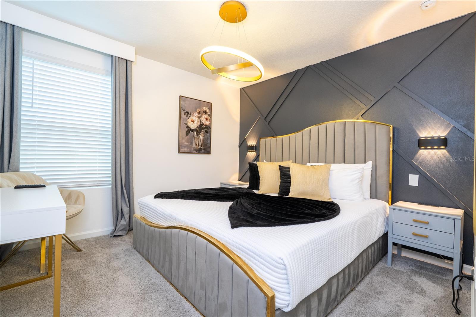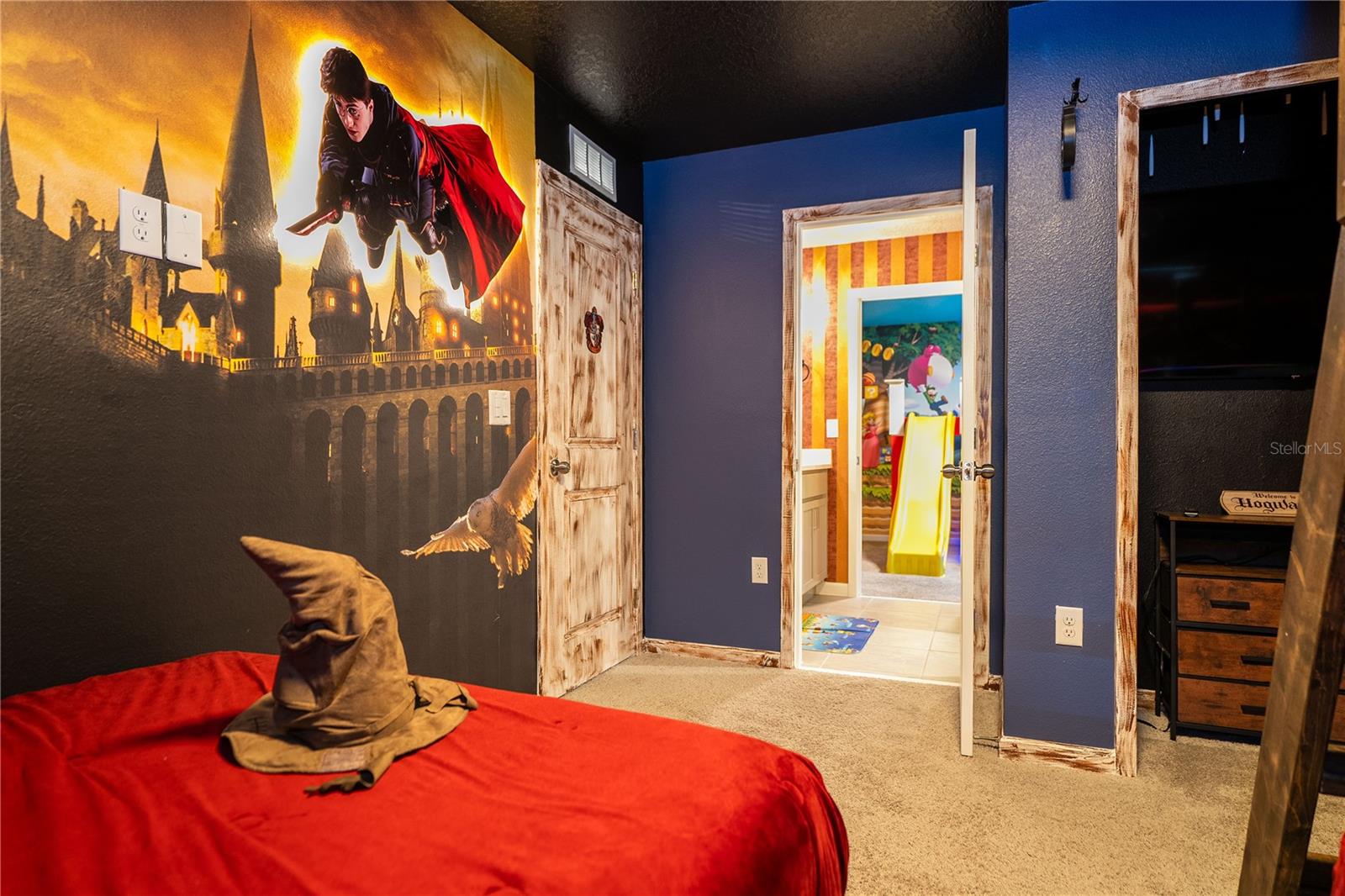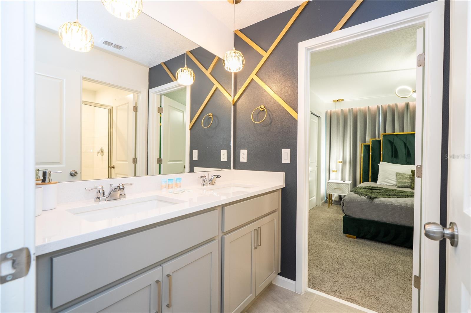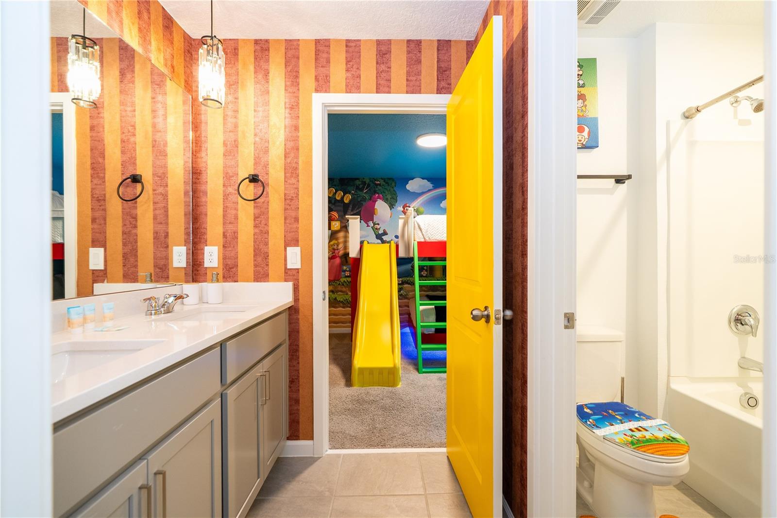 Welcome to 2370 Salty Winds Way, a stunning two-story home located in the highly desirable gated community of Solara Resort in Kissimmee. Built in 2023, this fully furnished 6-bedroom, 3.5-bathroom property is ideal for use as a vacation home, short-term rental, or full-time residence. Inside, you'll find an open-concept layout filled with natural light, high ceilings, and modern finishes. The spacious kitchen features stainless steel appliances and a large center island perfect for cooking and entertaining. Each bedroom is thoughtfully furnished and includes its own TV, offering comfort and convenience for guests or family members. Step outside to your private screened-in pool and spa, along with a covered lanai that provides the perfect space for relaxing or hosting. The home is located just minutes from world-renowned attractions such as Walt Disney World and Universal Studios, as well as shopping, dining, and major highways. Residents and guests also enjoy access to premium resort-style amenities including a clubhouse, pool, fitness center, and more. This home offers the perfect combination of style, location, and functionality—all within a vibrant vacation-friendly community.