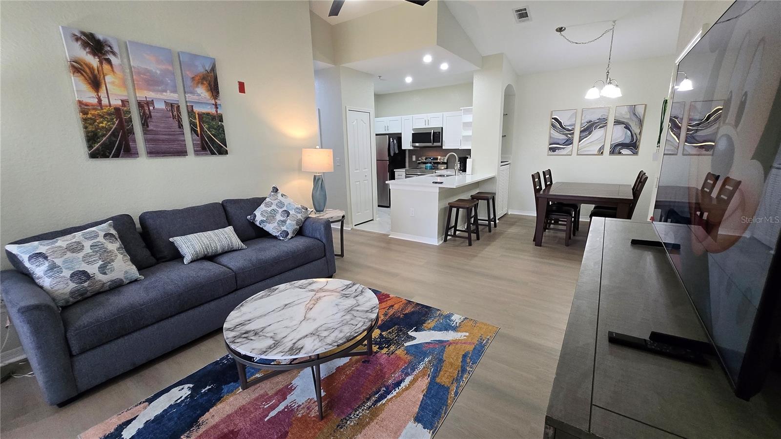 This beautifully updated 2-bedroom, 1-bath condo is located in the highly sought-after gated community of Legacy Dunes. Enjoy serene conservation views from every room and a private screened-in balcony with additional storage. The unit has been completely renovated, featuring: Brand new flooring, Modern kitchen with new cabinets, countertops, stainless steel appliances, Updated tilework, shower, and bathroom vanity, and many more. The kitchen comes fully equipped, including a washer and dryer for added convenience. Spacious walk-in closets in both bedrooms. Legacy Dunes offers resort-style amenities, including two pools (one heated), BBQ and picnic areas, a state-of-the-art fitness center, playground, tennis and basketball courts, sand volleyball court, car wash station, and even a golf practice cage! Perfectly located in West Kissimmee off US Hwy 192, just minutes from Walt Disney World, shopping, dining, and entertainment.
