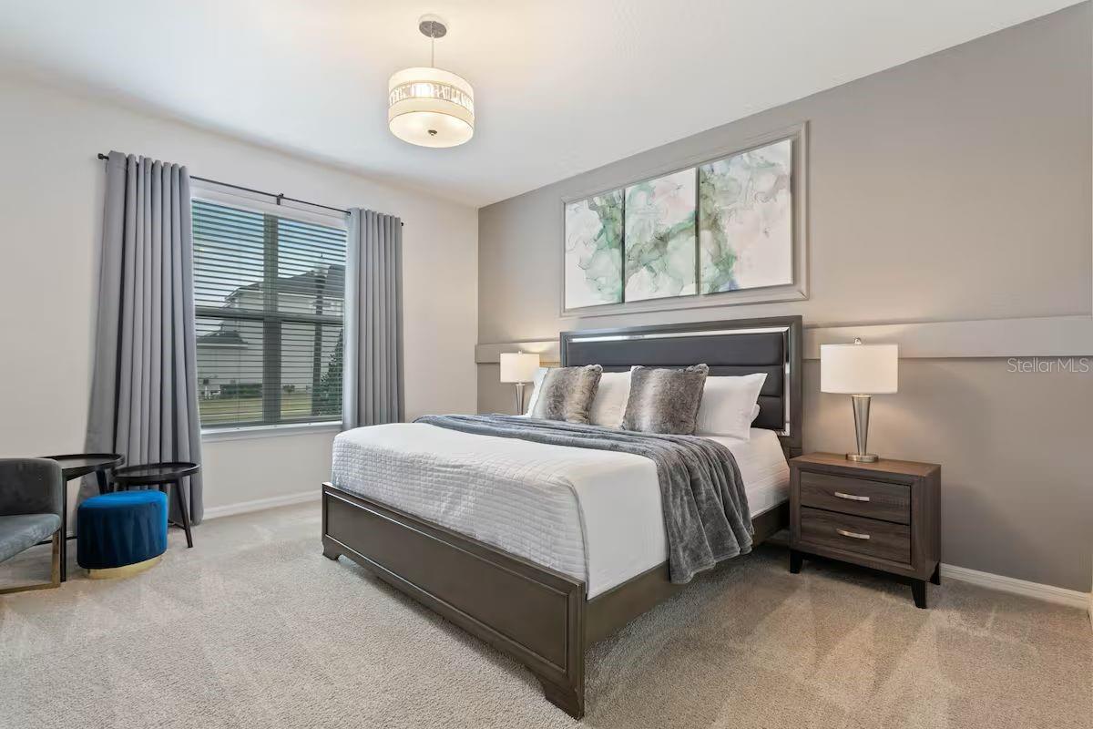 Stunning 9-Bedroom Vacation Home in Solara Resort! This beautifully decorated and fully furnished home offers 9 bedrooms, 6.5 bathrooms, and 4,363 sq. ft. of heated living space—perfect for large families, groups, or as a high-income short-term rental investment. The property features a private pool and spa, a patio with summer kitchen, grill, and outdoor lounge furniture, plus a converted garage game room for endless entertainment. The fully equipped kitchen makes dining and hosting a breeze. Located just minutes from Disney (7.5 mi), Universal (20.7 mi), SeaWorld (18.5 mi), and shopping/dining, this home combines comfort and convenience. The resort-style amenities include a grand clubhouse with poolside cabanas, restaurant and bar, fitness center, sports courts, splash pad, playground, and more. Whether as a vacation retreat or an investment property, this Solara Resort gem is an opportunity you don’t want to miss!