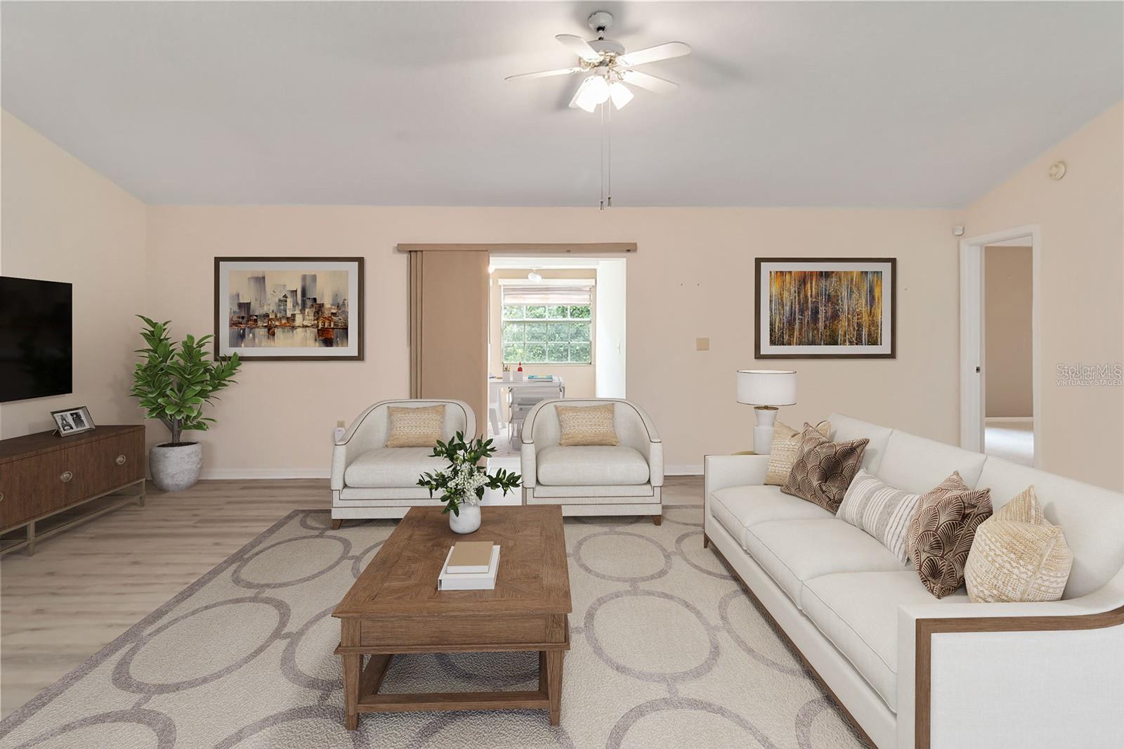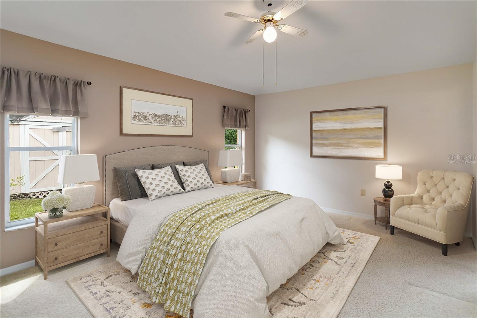 One or more photo(s) has been virtually staged. A BRAND NEW ROOF and a transferable warranty are two of the nice benefits of this great house! This spacious home is situated on a corner lot in a peaceful cul-de-sac, a location that is just minutes from all of the magic of Central Florida theme parks. Whether you want a roomy home for your family or an investment property; this home is ready for your special touches! Featuring a large yard, enclosed patio, split floor plan and high ceilings, with a security system and extra refrigerator that will convey at closing. Being located close to the community pool provides convenient access and another benefit of this mature subdivision. The large primary bedroom with ensuite includes dual sinks, separate shower, water closet and a walk-in closet. This solid built home is waiting you to update and create the perfect space for your family and friends. Located in the established neighborhood of Doral Woods, this home is convenient to Interstate 4, shops and restaurants. Don’t miss out on this exceptional property that combines comfort, convenience, and investment potential.