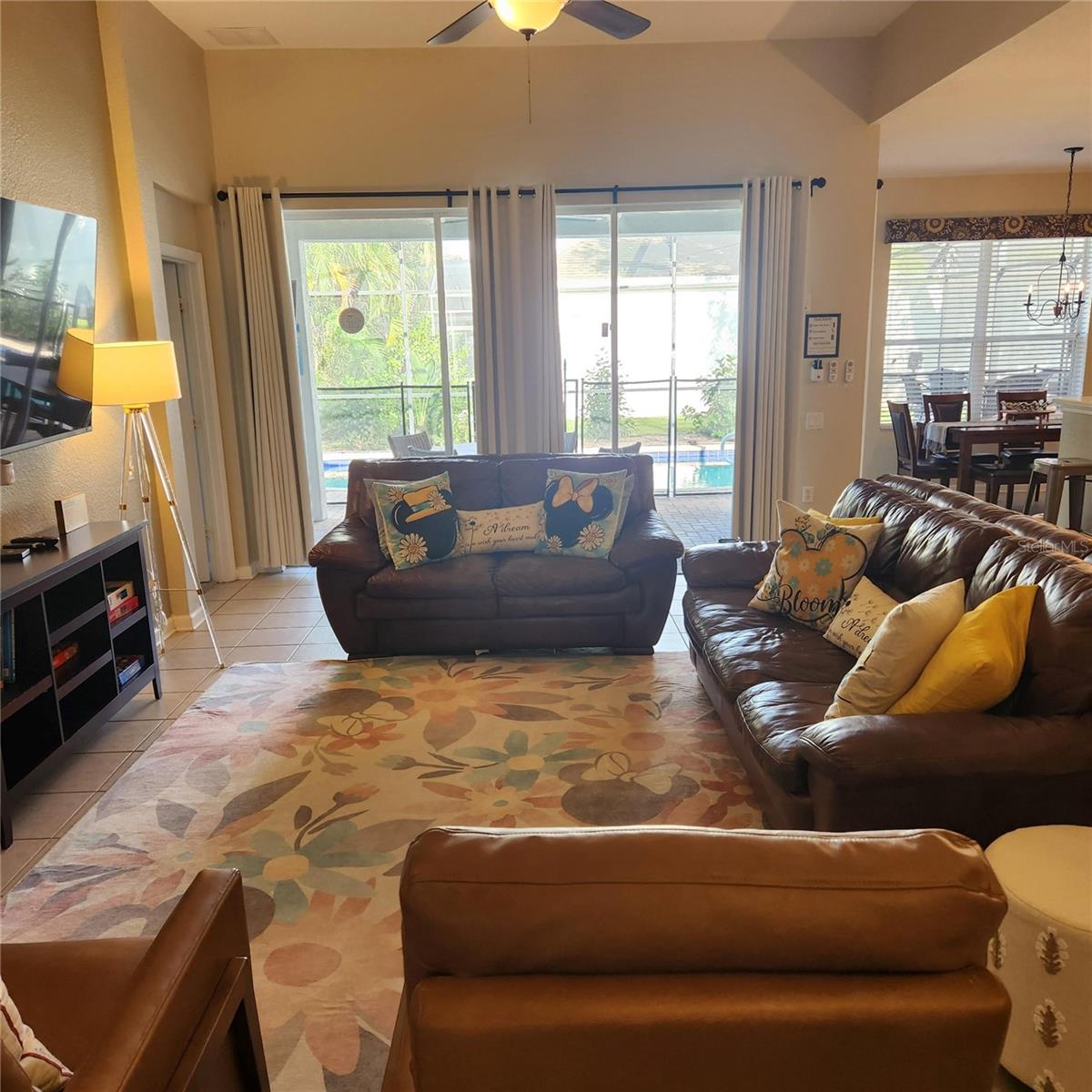 Explore this beautifully furnished, updated and Disney themed home in the sought-after Windsor Hills Resort by clicking on the virtual tour! Thoughtfully renovated to excel in the short-term rental market, this fully furnished, 4-bedroom, 4-bathroom retreat is rent ready, and booking will transfer at settlement. This home features a wall of windows to bring the outdoors in. This tastefully furnished and meticulously maintained home offers a private, screened-in heated pool and spa, and plenty of outdoor lounging space. The open-concept layout with a spacious main area is perfect for entertaining or relaxing after a day at the parks. The kitchen features upgraded cabinetry, granite countertop, a tile back splash, stainless steel appliances, plenty of workspace and its own breakfast dining area. The main dining area is conveniently located near the kitchen for ease in serving. Each bedroom is Disney-themed and features its own private en-suite bathroom, providing comfort and privacy for all guests. The game room has everything you need for the little ones or adults with a pool table, theater/gaming area with seating, games and toys. Recent Upgrades include a new Roof (2024), air conditioning, kitchen cabinets & countertops, updated bathroom vanities, modern furniture, and more! Located in the highly desirable gated community of Windsor Hills, only minutes from Central Florida's World-renowned Walt Disney World theme parks and Universal Studios. Windsor Hills has everything you’re looking for in a resort with a superb location and world-class amenities including a lagoon-style community pool, water park, The Windsor Hills community offers unmatched amenities, including a 24-hour guarded gatehouse, a 140,000-gallon lagoon-style swimming pool, hot tub, water park with slides and splash pad, clubhouse with movie theater, fitness center, game room, sundry shop, and on-site dining. Outdoor amenities include several playgrounds, basketball and tennis courts, a beach volleyball court, a putting green, pickleball courts, and a dog park. The HOA covers lawn maintenance, landscaping, irrigation, cable TV, high-speed internet, and waste removal, making this a low-maintenance, high-reward opportunity.