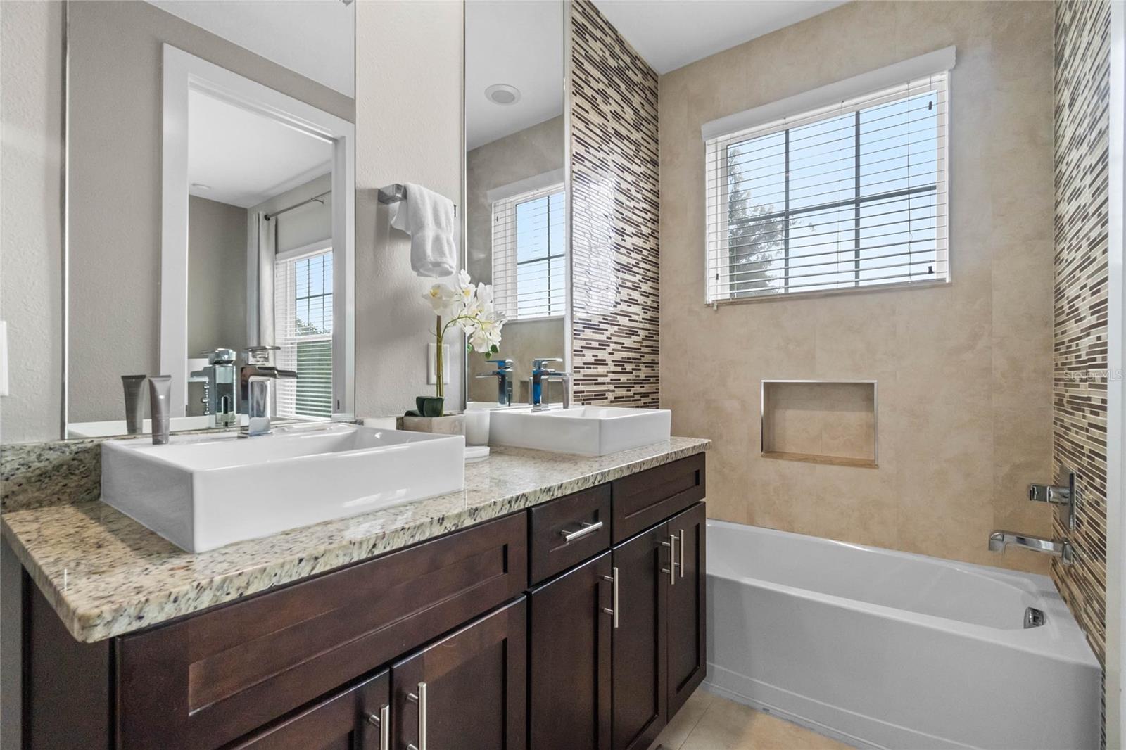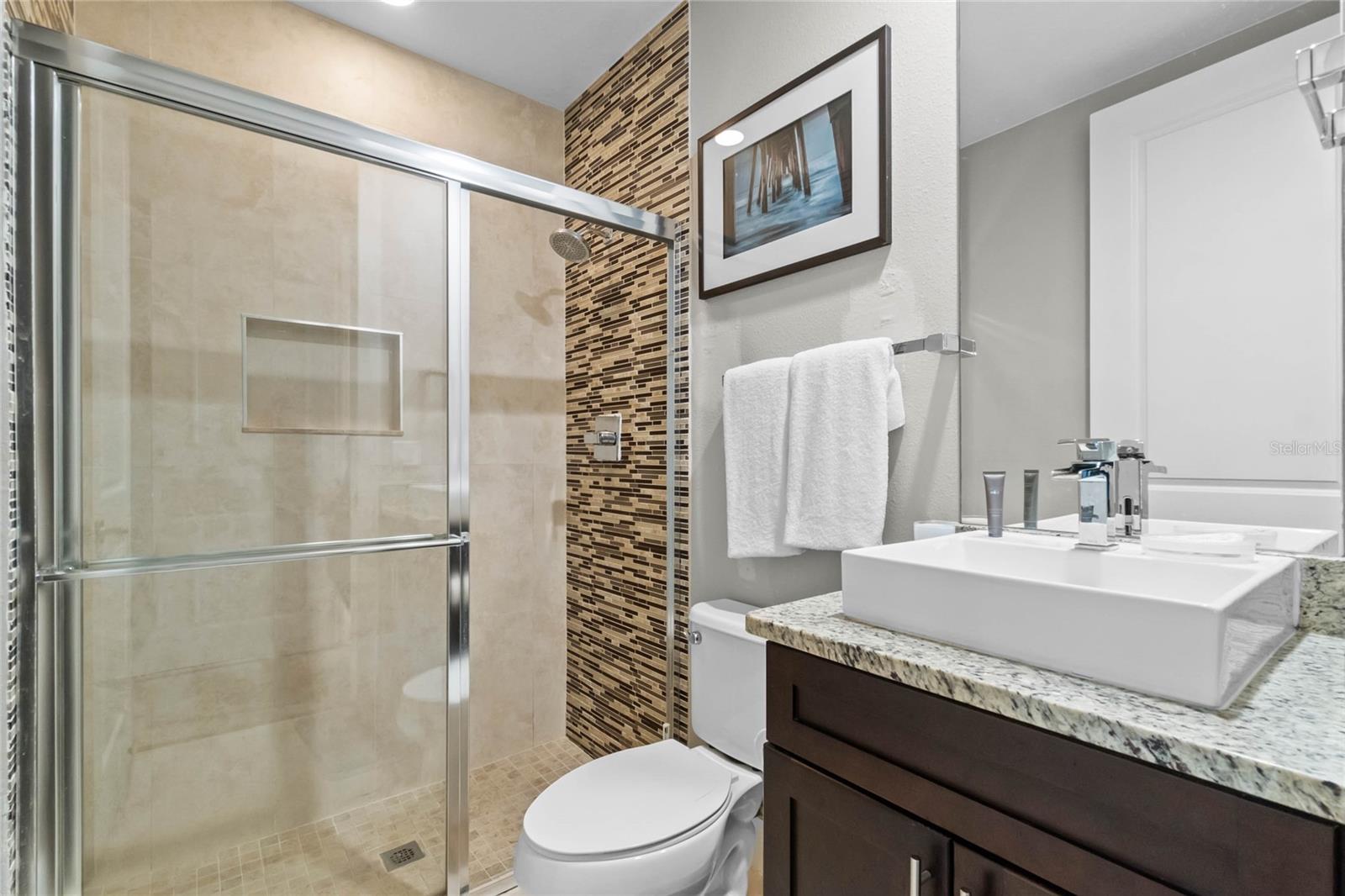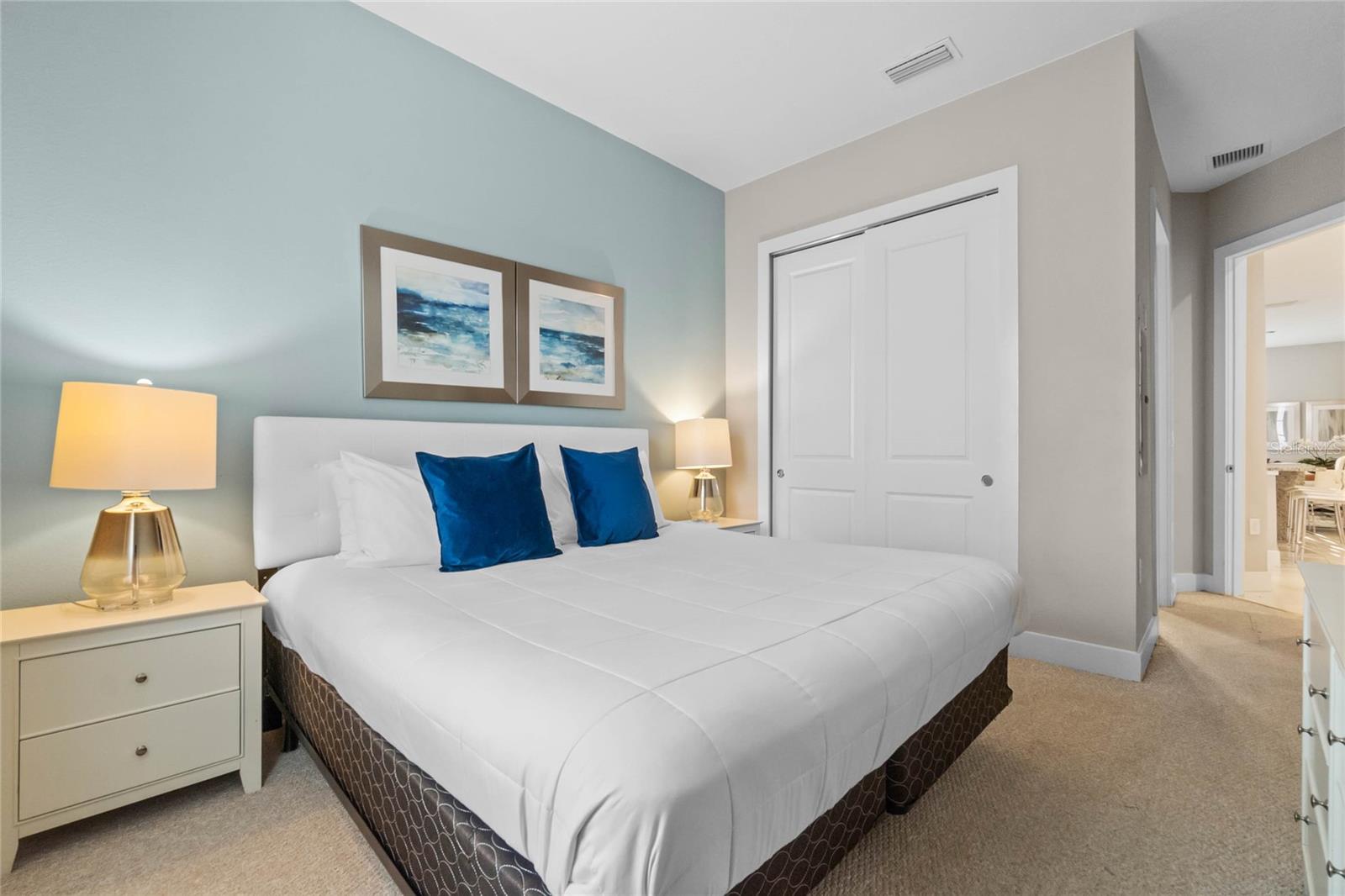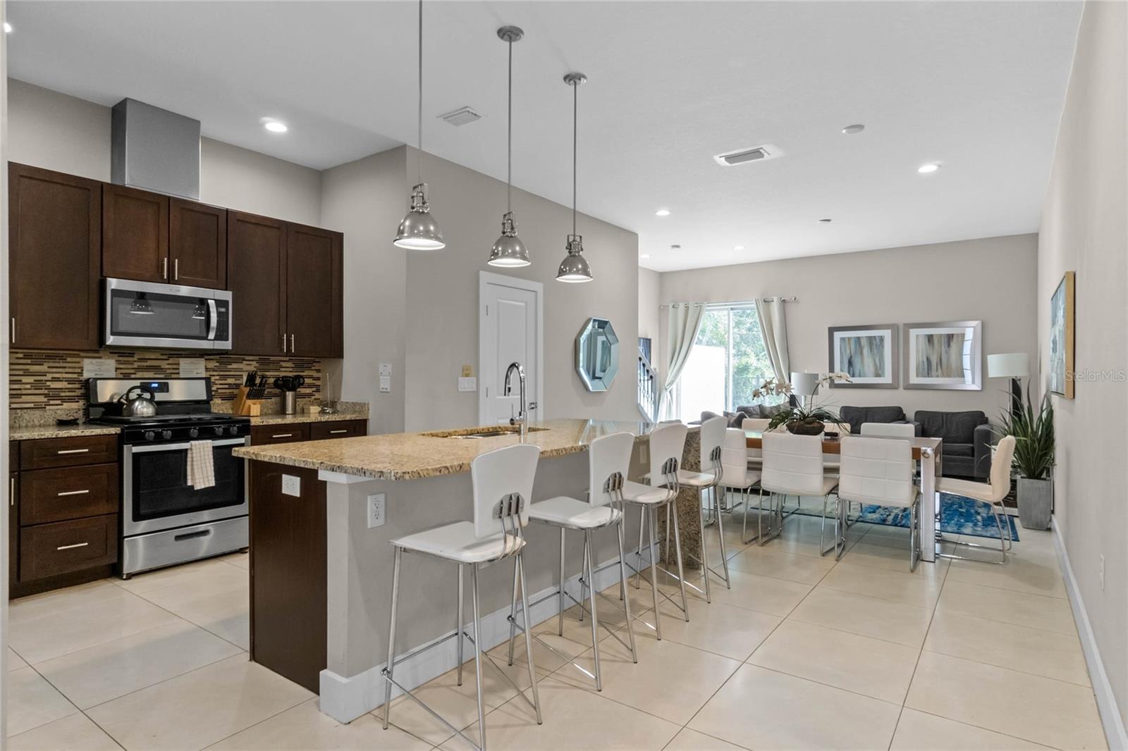 Live the Magic or Profit from It — Just 5 Minutes from Disney! Discover your perfect vacation retreat or investment gem in SUMMERVILLE RESORT, a GATED townhome community ideally located just minutes from WALT DISNEY WORLD. Zoned for SHORT-TERM RENTALS, this property offers both strong income potential and the ultimate in personal convenience — with top dining, shopping, and easy highway access right at your doorstep. This home is an ideal location within the community, just a short stroll to the COMMUNITY POOL AND FITNESS CENTER! Inside, four spacious bedrooms, each with BRAND NEW CARPET, feature their own private en-suite, providing comfort and privacy for family, guests, or vacation renters. The main floor welcomes you with a bright, open layout including a full bedroom suite, half bath, and gourmet kitchen with a large island, granite countertops, and stainless steel appliances and new microwave. The great room flows out to a tranquil PATIO FRAMED BY WOODED VIEWS, perfect for unwinding after a day at the parks. Upstairs, the expansive primary suite offers a true retreat with wooded views, walk-in closet, dual-sink vanity, large walk-in shower, and soaking tub. Two additional bedrooms upstairs add unique charm — one overlooking the community pool, the other with a walk-in closet. A laundry closet with washer and dryer makes everyday living or guest turnovers a breeze. As a resident or host, you’ll enjoy access to resort-style amenities including a clubhouse, fitness center, playground, pool, and plenty of guest parking. Whether you’re seeking a profitable short-term rental, a Disney getaway home, or a stylish low-maintenance residence, this townhome checks every box. Don’t miss your chance to own just minutes from the magic! (Exclusive offer: receive 1% of the loan amount toward closing costs or a rate buy-down — inquire today!)