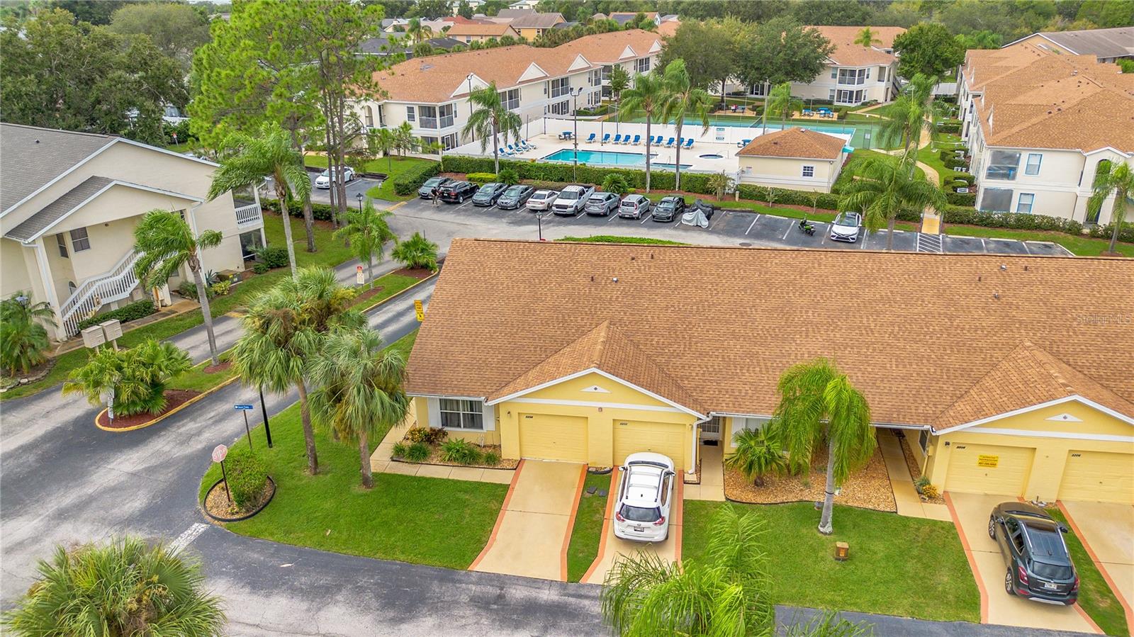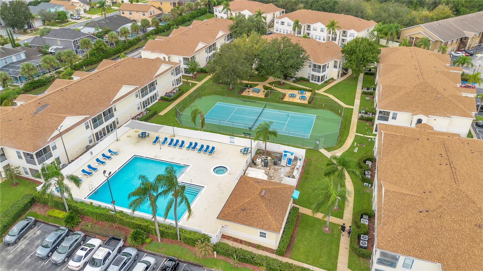 INVESTORS or HOMEOWNERS Discover this prime income-generating opportunity near Disney! This impressive home offers versatile use as a short-term or long-term rental, or as your personal residence. Enjoy a range of amenities including an oversized pool, hot tub, gym, BBQ area, and tennis court—all maintained by the HOA, which also handles exterior upkeep. Boasting a coveted location just 5 miles from Disney Theme Park, this single-level townhome with vaulted ceilings offers a spacious feel. The attached garage has been converted into a bonus room. All Comparables in this area in this price point don't have a Garage. Recent updates include a new roof (2022) and beautifully remodeled Kitchen Cabinets. The property also features a charming screened-in patio for relaxation. Conveniently located near the pool and mailbox, this property promises both comfort and value, whether you choose to live here or capitalize on its rental potential.