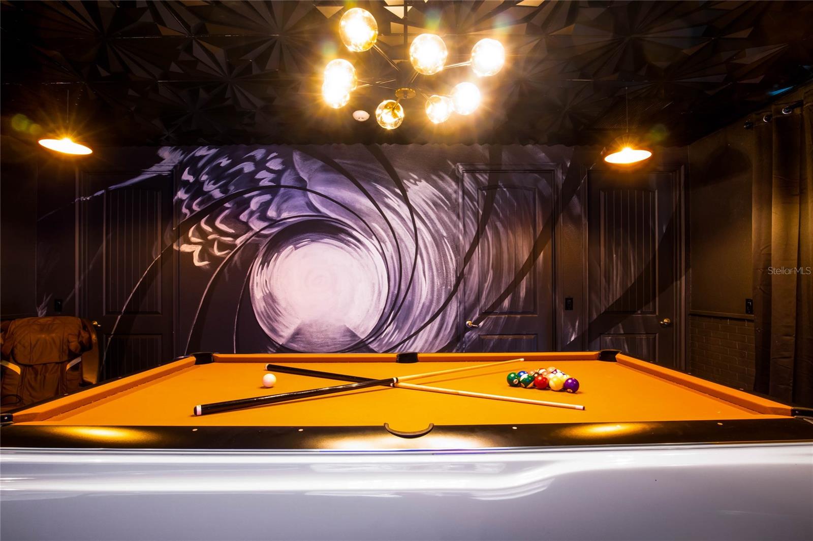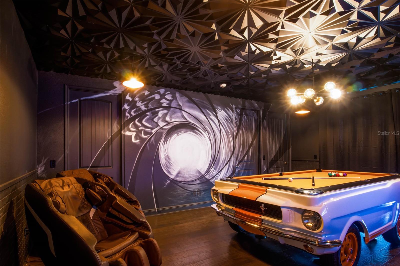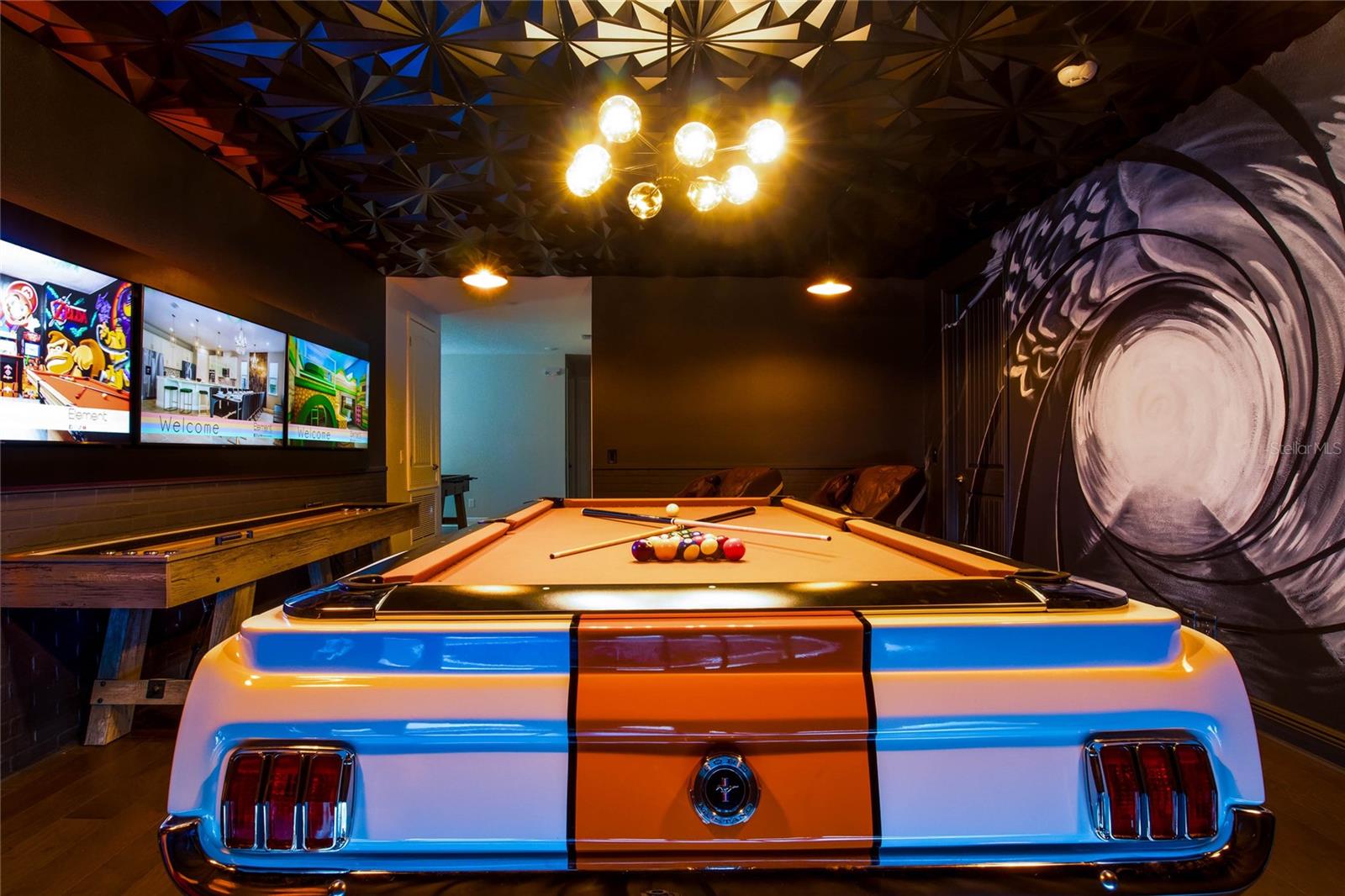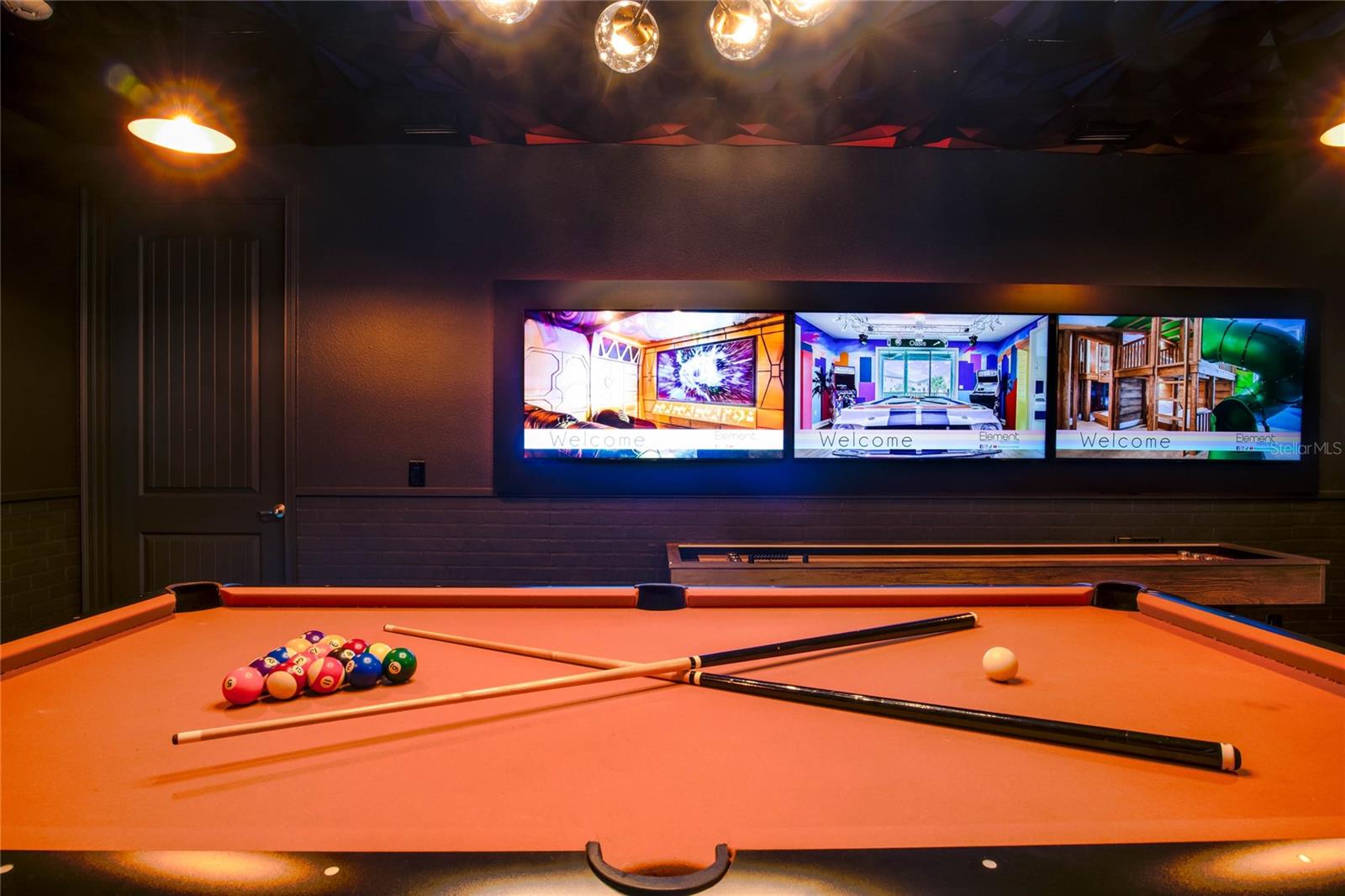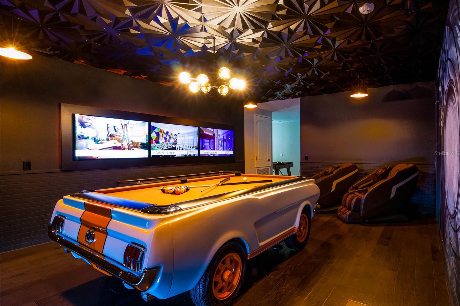 Welcome to “HIDDEN GEM”, the crown jewel of Encore Resort at Reunion where luxury and imagination collide to create one of the most spectacular THEMED PROPERTIES in Central Florida. This stunning 11-bedroom, 10-full and 3-half bath estate SLEEPS 29 and is more than a vacation home—it is a destination in itself and one of the most sought-after short-term rental investments in the community. This home has already secured $121,000 in 2025 GROSS RENTS, and has $69,981 in RESERVATIONS for 2026+! From the moment you enter the expansive open-concept living area you will see every attention to detail, including a gourmet chef’s kitchen with two refrigerators, two dishwashers, a dedicated coffee bar, an oversized dining table, and a spacious breakfast bar perfect for entertaining large groups. Sliding glass doors open to a beautifully landscaped private oasis featuring a heated pool, spa, lanai, and outdoor bath where guests can unwind after a day at the nearby theme parks. The magic truly unfolds upstairs where imagination takes center stage. Guests are wowed by a classic CARTOON THEMED THEATRE ROOM with tiered seating and CUSTOM MURALS, and a SECRET-AGENT inspired game lounge complete with a 1965 Ford Mustang pool table, dual massage chairs, and shuffleboard. Immersive themed bedrooms transform every stay into an adventure, from a GEM MINE TRAIN and JAMES BOND 007 suite to a DEEP-SPACE ESCAPE and a ONE-OF-A-KIND TREE LODGE with custom bunk beds, a suspension bridge, and a TUNNEL SLIDE that delights guest of all ages. A converted garage GAME ROOM on the main level adds even more entertainment with a custom basketball shooting game, ping pong, and arcades. Every inch of this professionally decorated, fully furnished property blends high-end finishes with unforgettable experiences, ensuring rave guest reviews and repeat bookings. Encore Resort at Reunion amplifies the allure with a spectacular clubhouse, award-winning restaurant, full water park, state-of-the-art fitness center, spa, playgrounds, sports courts, and 24-hour gated security, plus concierge services for park tickets, resort shuttles, and more—all just minutes from world-class golf, shopping, and dining. Hidden Gem is not just one of the largest homes in the community, it is arguably the most creatively themed and best performing. Whether you are an investor seeking strong, proven returns or a buyer dreaming of the ultimate vacation retreat, this exceptional property stands out as a must-see showstopper in the heart of Central Florida.