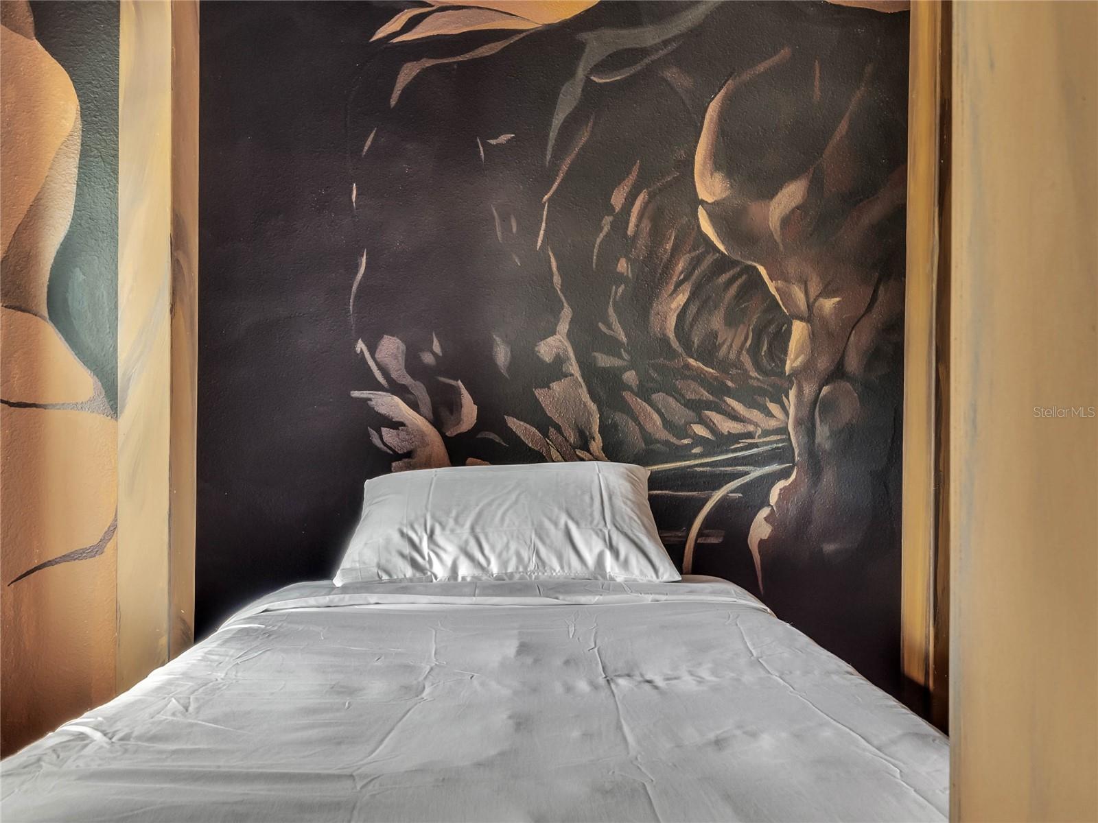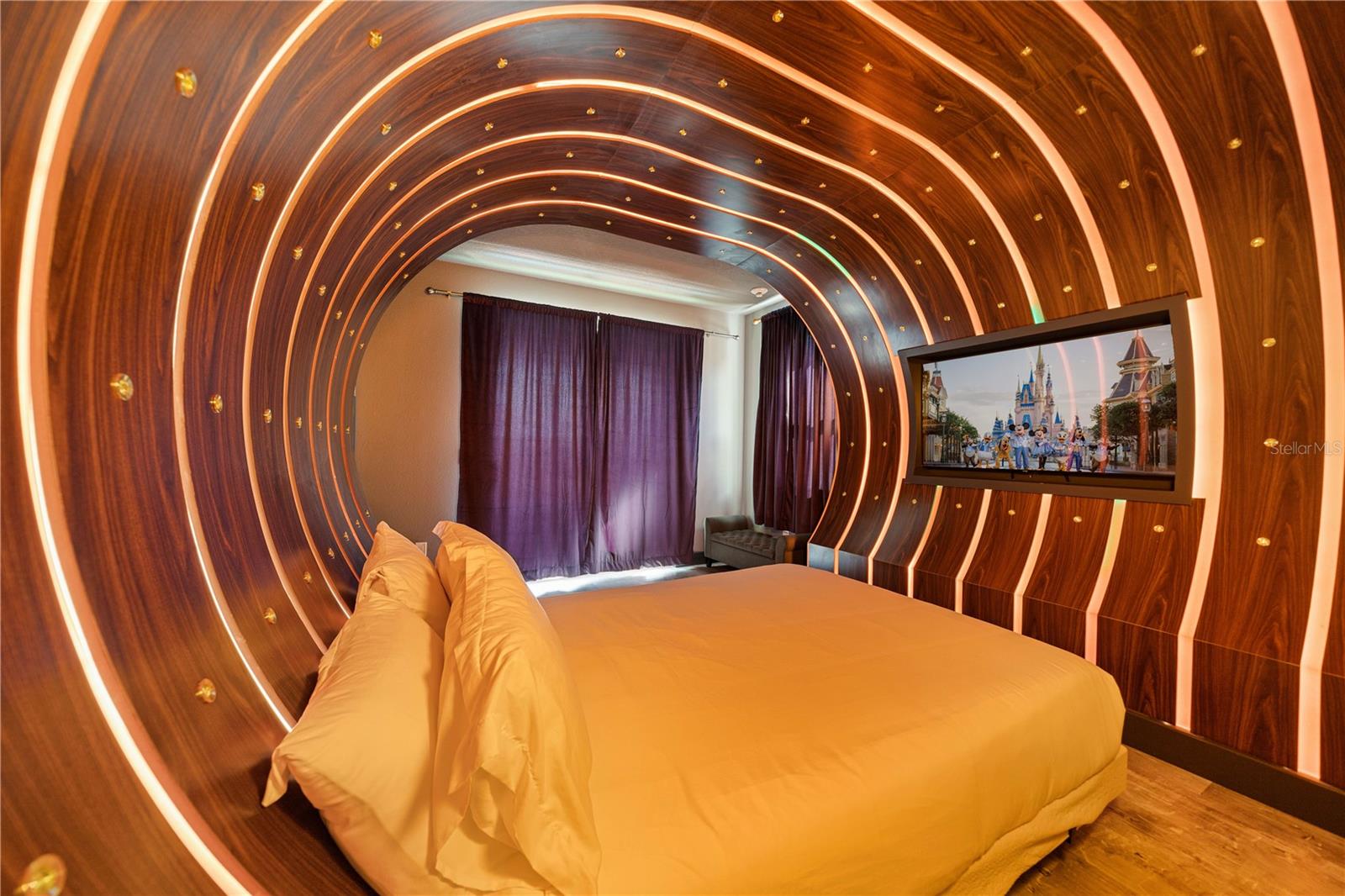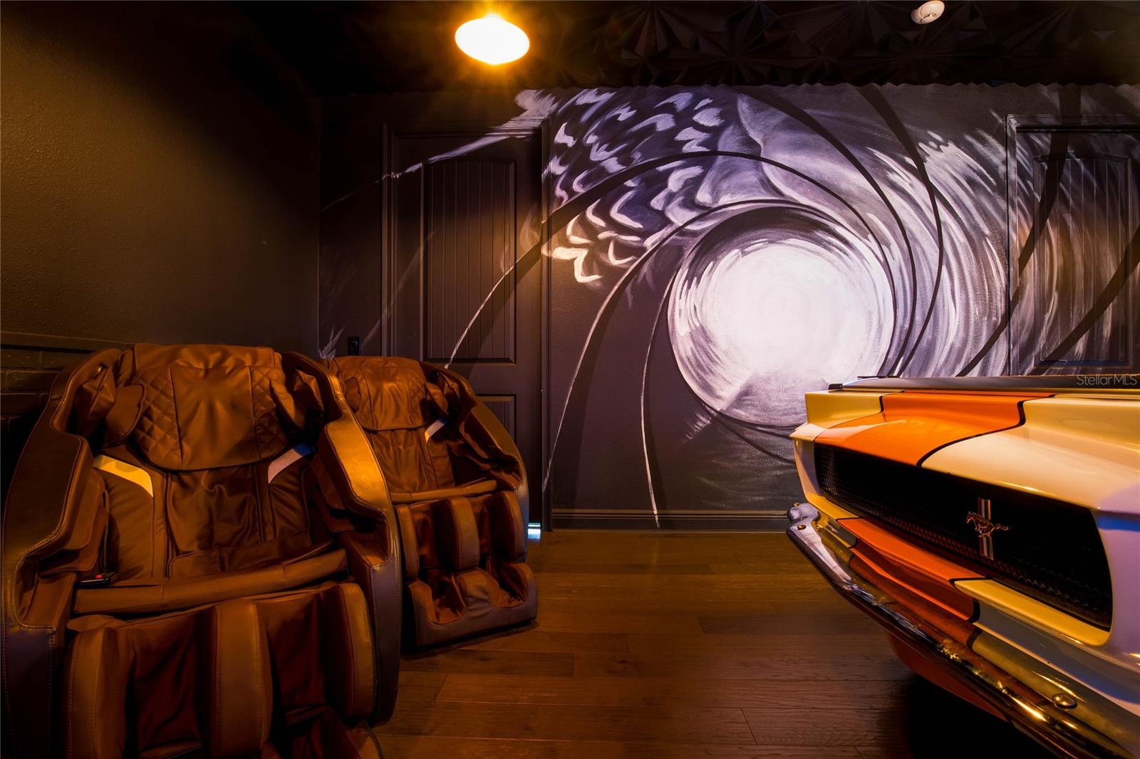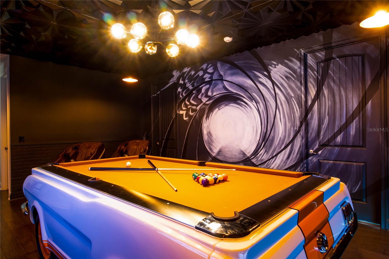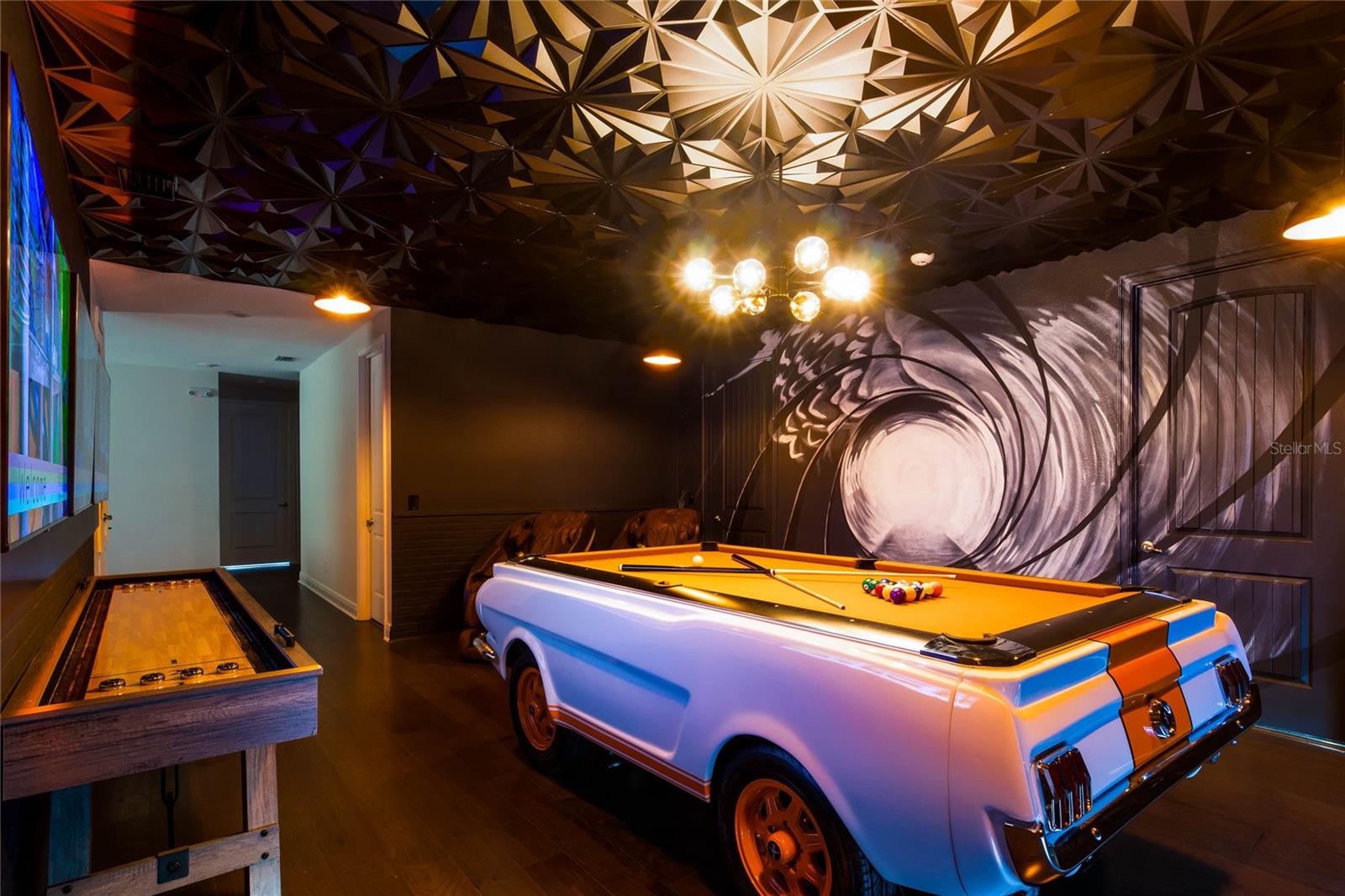 Welcome to “HIDDEN GEM”, the crown jewel of Encore Resort at Reunion where luxury and imagination collide to create one of the most spectacular THEMED PROPERTIES in Central Florida. This stunning 11-bedroom, 10-full and 3-half bath estate SLEEPS 29 and is more than a vacation home—it is a destination in itself and one of the most sought-after short-term rental investments in the community. This home has already secured $121,000 in 2025 GROSS RENTS, and has $69,981 in RESERVATIONS for 2026+! From the moment you enter the expansive open-concept living area you will see every attention to detail, including a gourmet chef’s kitchen with two refrigerators, two dishwashers, a dedicated coffee bar, an oversized dining table, and a spacious breakfast bar perfect for entertaining large groups. Sliding glass doors open to a beautifully landscaped private oasis featuring a heated pool, spa, lanai, and outdoor bath where guests can unwind after a day at the nearby theme parks. The magic truly unfolds upstairs where imagination takes center stage. Guests are wowed by a classic CARTOON THEMED THEATRE ROOM with tiered seating and CUSTOM MURALS, and a SECRET-AGENT inspired game lounge complete with a 1965 Ford Mustang pool table, dual massage chairs, and shuffleboard. Immersive themed bedrooms transform every stay into an adventure, from a GEM MINE TRAIN and JAMES BOND 007 suite to a DEEP-SPACE ESCAPE and a ONE-OF-A-KIND TREE LODGE with custom bunk beds, a suspension bridge, and a TUNNEL SLIDE that delights guest of all ages. A converted garage GAME ROOM on the main level adds even more entertainment with a custom basketball shooting game, ping pong, and arcades. Every inch of this professionally decorated, fully furnished property blends high-end finishes with unforgettable experiences, ensuring rave guest reviews and repeat bookings. Encore Resort at Reunion amplifies the allure with a spectacular clubhouse, award-winning restaurant, full water park, state-of-the-art fitness center, spa, playgrounds, sports courts, and 24-hour gated security, plus concierge services for park tickets, resort shuttles, and more—all just minutes from world-class golf, shopping, and dining. Hidden Gem is not just one of the largest homes in the community, it is arguably the most creatively themed and best performing. Whether you are an investor seeking strong, proven returns or a buyer dreaming of the ultimate vacation retreat, this exceptional property stands out as a must-see showstopper in the heart of Central Florida.