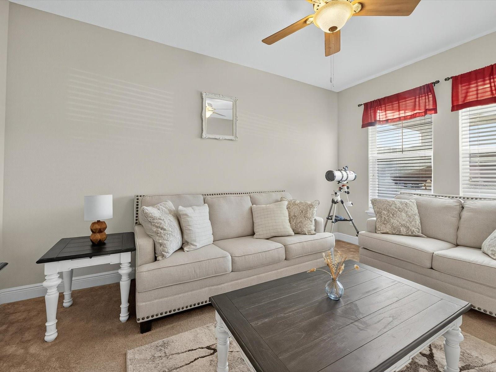 Welcome to Concorde Estates — where comfort meets convenience! Step inside this bright and inviting three-bedroom, two-bath home tucked within one of the area’s most desirable neighborhoods. Sunlight pours through every room, highlighting the spacious layout and warm tile floors. A cozy den provides the perfect nook for a home office or quiet reading space, and the indoor laundry room keeps chores out of sight. The open-concept living area flows easily into a stylish kitchen featuring a generous island, modern appliances, and plenty of cabinet space — ideal for both family dinners and casual entertaining. The primary suite offers a peaceful retreat with a large closet and a spa-like ensuite complete with a freestanding tub. Step through the sliding doors onto your screened-in back porch, where you can sip morning coffee in privacy and enjoy your fenced yard with room for pets or play. Concorde Estates spoils its residents with a clubhouse, fitness center, resort-style pool, tennis courts, park, and playground — all just a short stroll away. This home checks every box for comfort, style, and convenience. Don’t let it slip away — come see why life in Concorde Estates feels like the perfect fit.