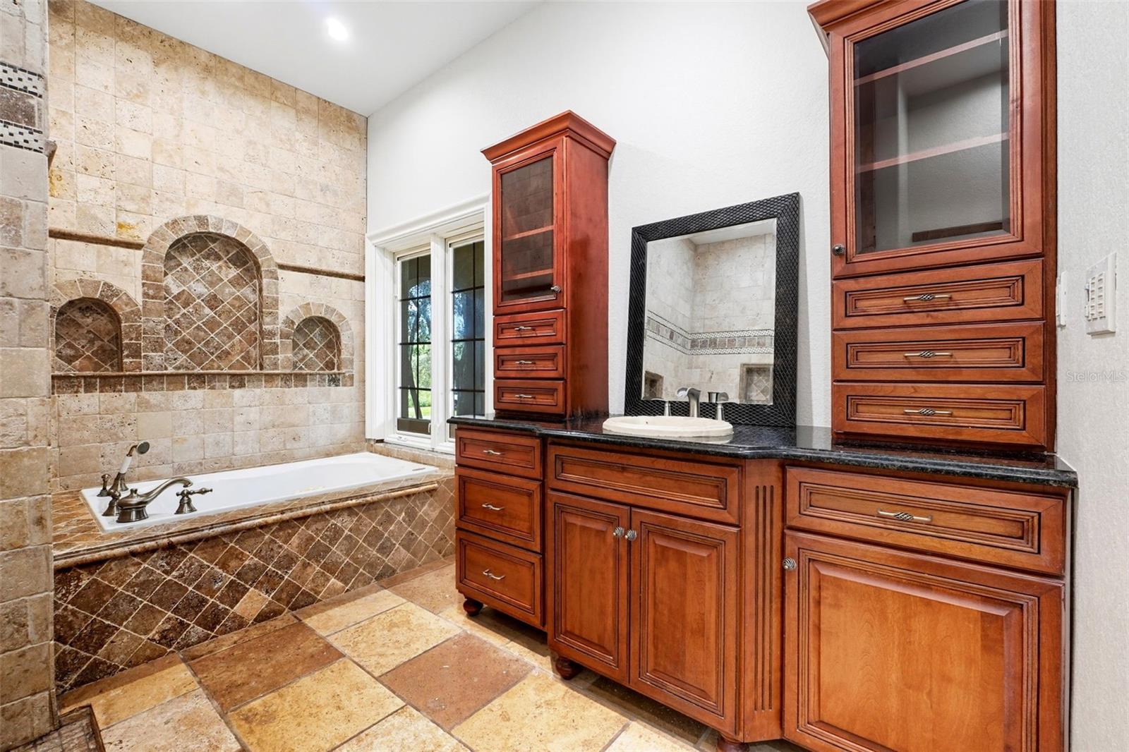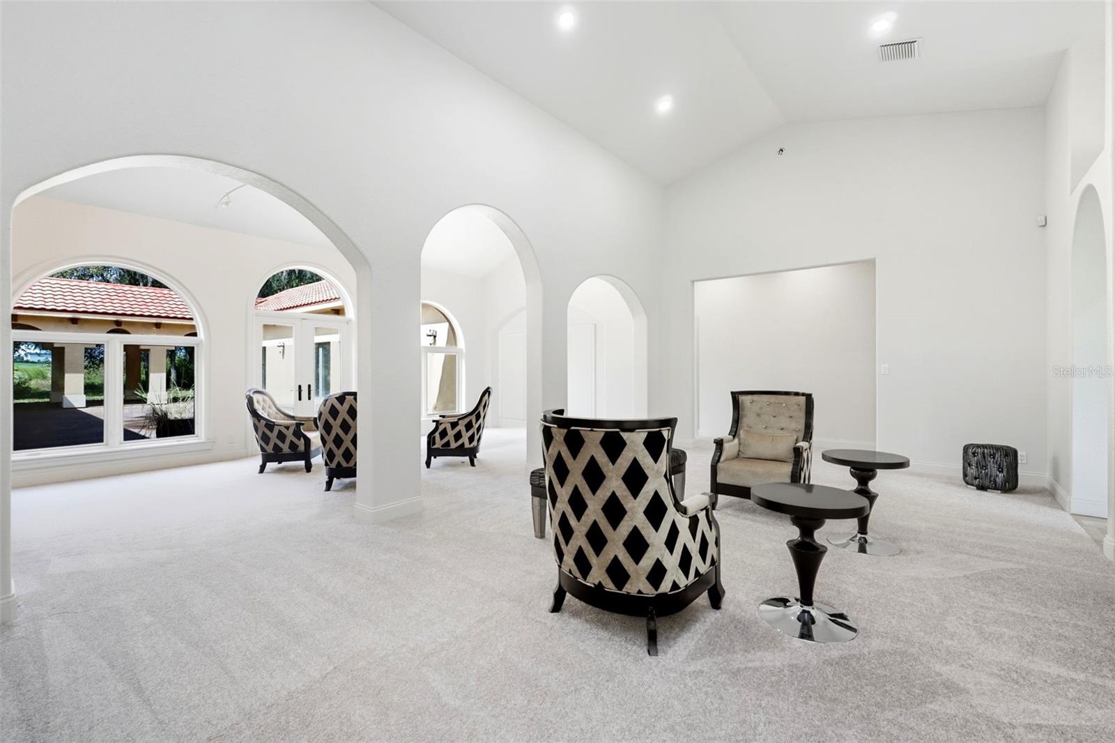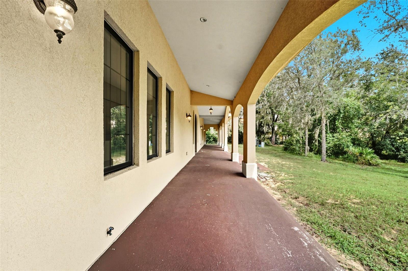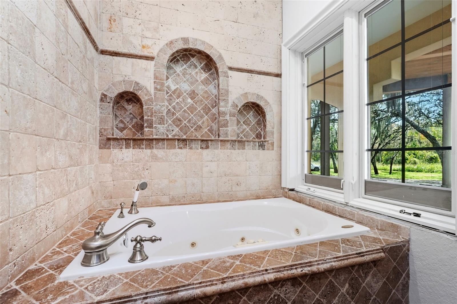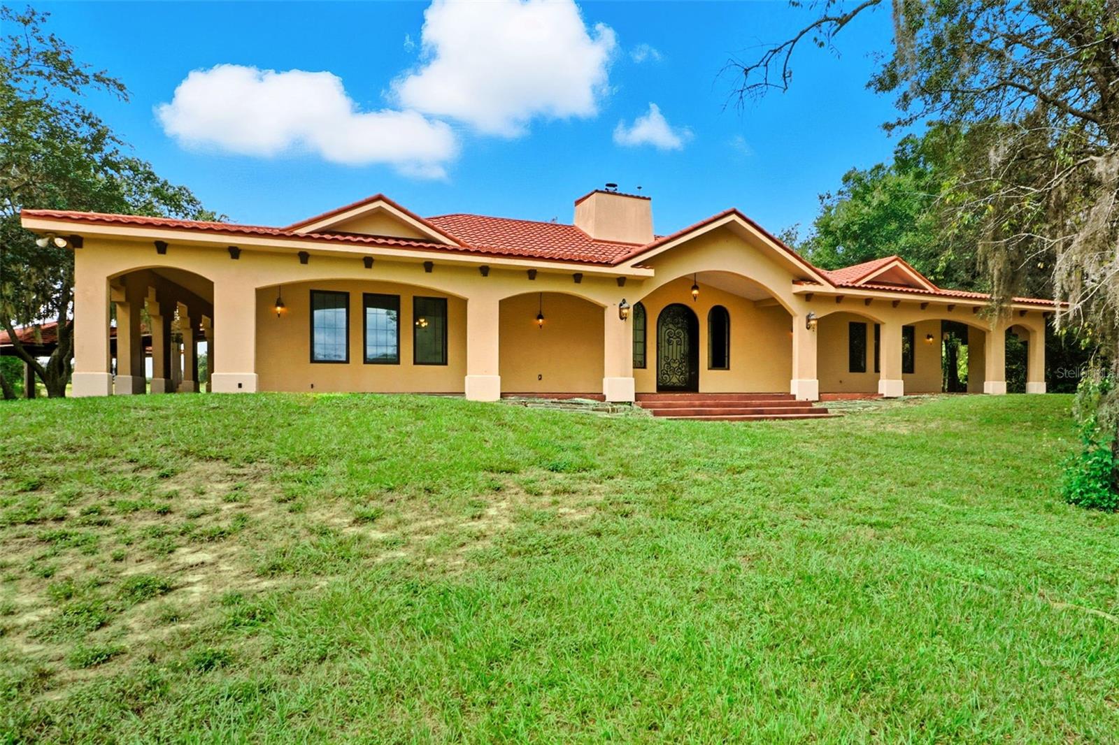 Welcome to this one-of-a-kind GOLF FRONT equestrian estate home on 5 high and dry private acres. This mediterranean property features over 6,500 of living SQFT with 3 bedrooms, 3 full bathrooms, 2 half bathrooms, extensive natural light throughout, 2 fireplaces, 2 laundry areas, a theater ready room, ample entertaining space all thoughtfully positioned between a North and South wing. The primary suite is situated in the South wing and has its own private fireplace with extensive views of the 14th fairway of Champion’s Gate award winning National Golf Course, a massive walk-in closet and custom travertine fitted bathroom with jetted tub, separate shower and dual vanities. Extra rooms in the South wing include a massive laundry room/utility room, flex room off the kitchen (play room, office, storage) and a half bathroom. Additionally in the South wing is massive 14+ seat dining room and the top-of-the-line custom kitchen with all wood Bertch cabinets, extensive level 5 granite countertops, a Miele Dishwasher, a Fisher & Paykel 2 drawer dishwasher, GE Monogram under counter 2 drawer beverage refrigerator, Sub-Zero built-in refrigerator, double Miele ovens, a Miele warming drawer and a Miele 5 burner cooktop. The North wing features 3 bedrooms (or 2 bedrooms and an office), 2 bathrooms, 1 half bathroom, a theater ready room, a laundry closet, and two additional living rooms. The center of the home features a massive great room with cathedral ceilings, a double-sided fireplace and the grand entryway with a custom iron front door, travertine flooring and ample storage. The home is surrounded by over 2,700 SQFT of covered outdoor space and is centered on a large 1,100+ SQFT courtyard. Other features include 2 water heaters, double pane windows and doors, custom millwork around each window, solid core doors, rounded drywall edges, architectural niches, barrel tile-look metal roof, spray foam insulation, 2 a/c’s, a private well and all of this on a private 5 acre lot. Within minutes to Disney World, Seaworld, Universal, award winning shopping and restaurants and short access to multiple golf courses and the interstate. The property has the feeling of being rural and still within minutes of all that Central Florida has to offer. Don’t miss the immersive virtual tour!