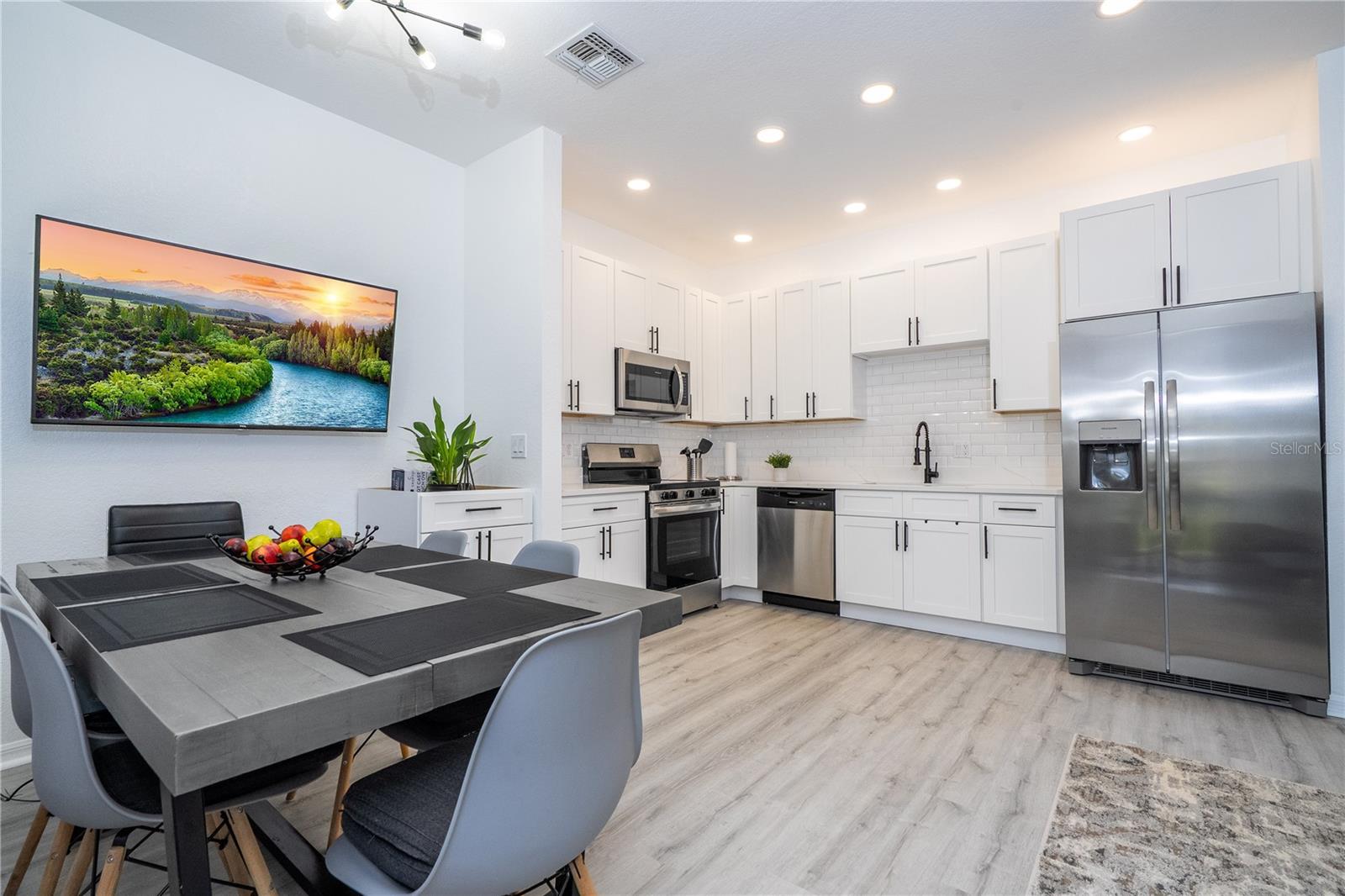 Exclusivity, Comfort & Modern Living — All in One Home! This stunning residence is more than just a house — it’s your dream home. Beautifully designed and impeccably maintained, this one-of-a-kind property stands out in the community for its exclusive finishes, stylish décor, and thoughtful upgrades throughout. 4 spacious, elegantly decorated bedrooms, including a themed kids’ room with 4 beds — sure to delight the whole family. 2 full bathrooms plus a powder room, all recently updated. Brand-new furniture and mattresses (2024). 6.5 mm waterproof laminate flooring with factory warranty on the main level. New carpet installed upstairs in 2024. Chef’s kitchen with 42" solid wood cabinetry (custom cabinetry replaced in 2025). Sleek Calacatta quartz countertops. Modern matte black faucets (2025). Stainless steel appliances with invoices and factory warranties (2025). All TVs purchased in 2024. New roof (2024). Water heater replaced (2022). Full interior paint (2025). Private lakeside hot tub — heated and ready to enjoy. Smart security system with app-controlled cameras. Google Nest thermostat for remote climate control. Smart lock and Ring doorbell, both app-enabled. Exclusive unit — no other in the community compares. HOA covers exterior painting, landscaping, tree trimming, lawn care, and cleaning. Gated community with keypad entry for extra security. Enjoy serene lake views and magical sunsets from your backyard hot tub as ducks swim peacefully across the water — the perfect setting for relaxation and entertainment. The community offers great amenities including parking space for 3 cars, a gym, movie theater, party room, playground, and volleyball court. Ideally located in a quiet, family-friendly neighborhood with quick access to shopping, dining, and world-famous attractions: Aldi – 1.7 km ? 1.06 miles Walmart – 1.9 km ? 1.18 miles Sam’s Club – 2.1 km ? 1.30 miles Bravo Supermarket – 2.7 km ? 1.68 miles (7 minutes) Historic Downtown – 6.9 km ? 4.29 miles (10 minutes) Disney Parks – 11 km ? 6.83 miles (13 minutes) Plus dozens of top-rated restaurants just minutes away! Whether you’re looking for your forever home or a highly desirable short-term rental property, this residence offers both luxury living and excellent investment potential. Don’t miss out — schedule your private showing today and experience this exceptional home for yourself!