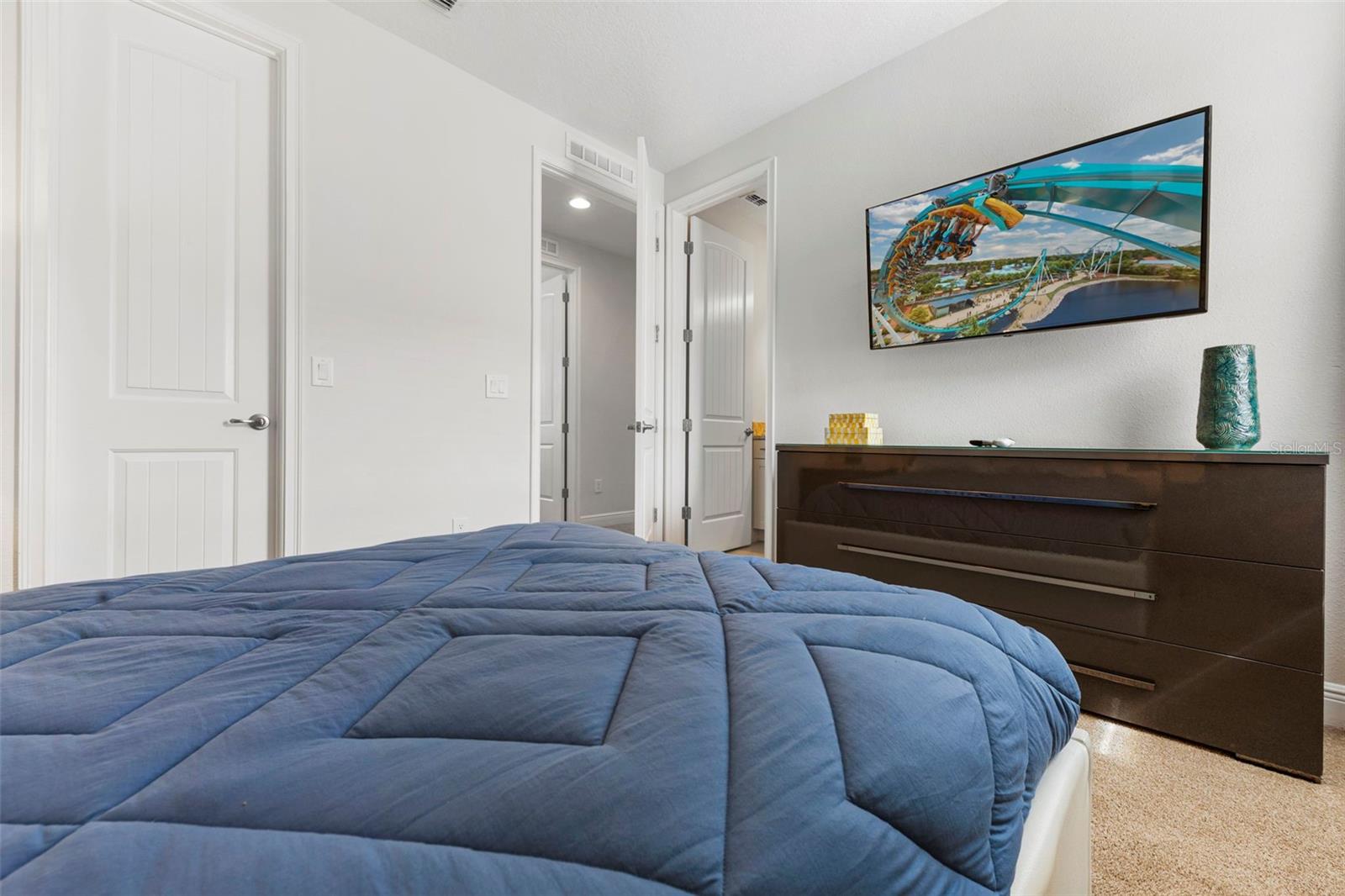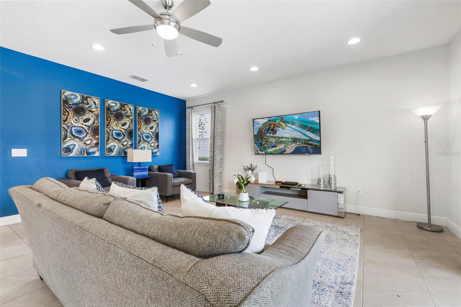 WOW! Fall in love with this beautifully furnished 5-bedroom/5-bathroom home, on a large lot with private pool and spa in the highly desired gated community of Encore at Reunion. Beautifully presented, this elegant two-story residence offers a bright, open floor plan with modern finishes and stylish décor throughout. The gourmet kitchen features granite countertops, stainless steel appliances, and a large island overlooking the spacious living and dining areas. Step outside to your private lanai with a sparkling pool, spa, and lush tropical landscaping—perfect for enjoying the Florida sunshine. Encore Resort provides world-class amenities including a water park, fitness center, sports courts, on-site dining, and 24-hour concierge service. Ideally located just minutes from Walt Disney World® and Central Florida’s top attractions, this home is perfect as a primary residence, vacation getaway, or short-term rental investment. Listing agent is managing agent. If you would like more information about rental history, rates etc, please ask.