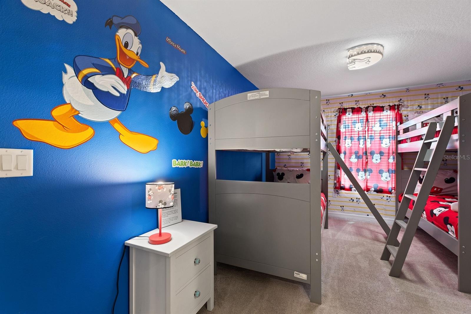 1031 exchange available! ALL FURNISHINGS ARE INCLUDED! Just 8 miles from Walt Disney World at Solara Resort, a gated community near Orlando's top attractions, including Universal Studios, SeaWorld, and I-Drive. This stunning 7-bedroom, 6.5-bath vacation home, built in 2022, offers a private heated pool and spa, blending comfort and style for the ultimate getaway. The home features two primary suites—one on each floor—for added privacy, along with themed bedrooms upstairs that inspire wonder. The modern kitchen boasts granite countertops, stainless steel appliances, and a spacious dining area perfect for entertaining. Step outside to a covered patio, BBQ area, and serene wooded views, ideal for unwinding after a day at the parks. The garage has been transformed into an awesome game room that will keep everyone busy for hours! Solara Resort's world-class amenities include a Grand Clubhouse with a heated pool, FlowRider® surf simulator, fitness center, bar and grill, ice cream parlor