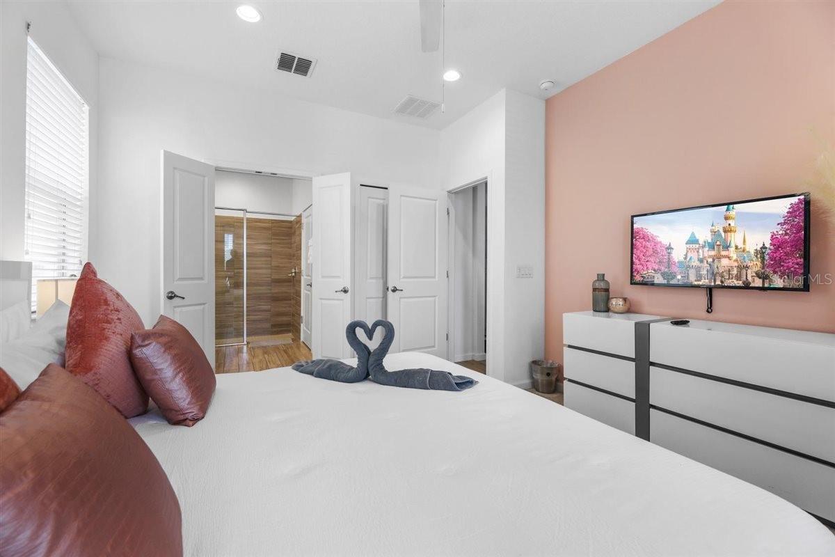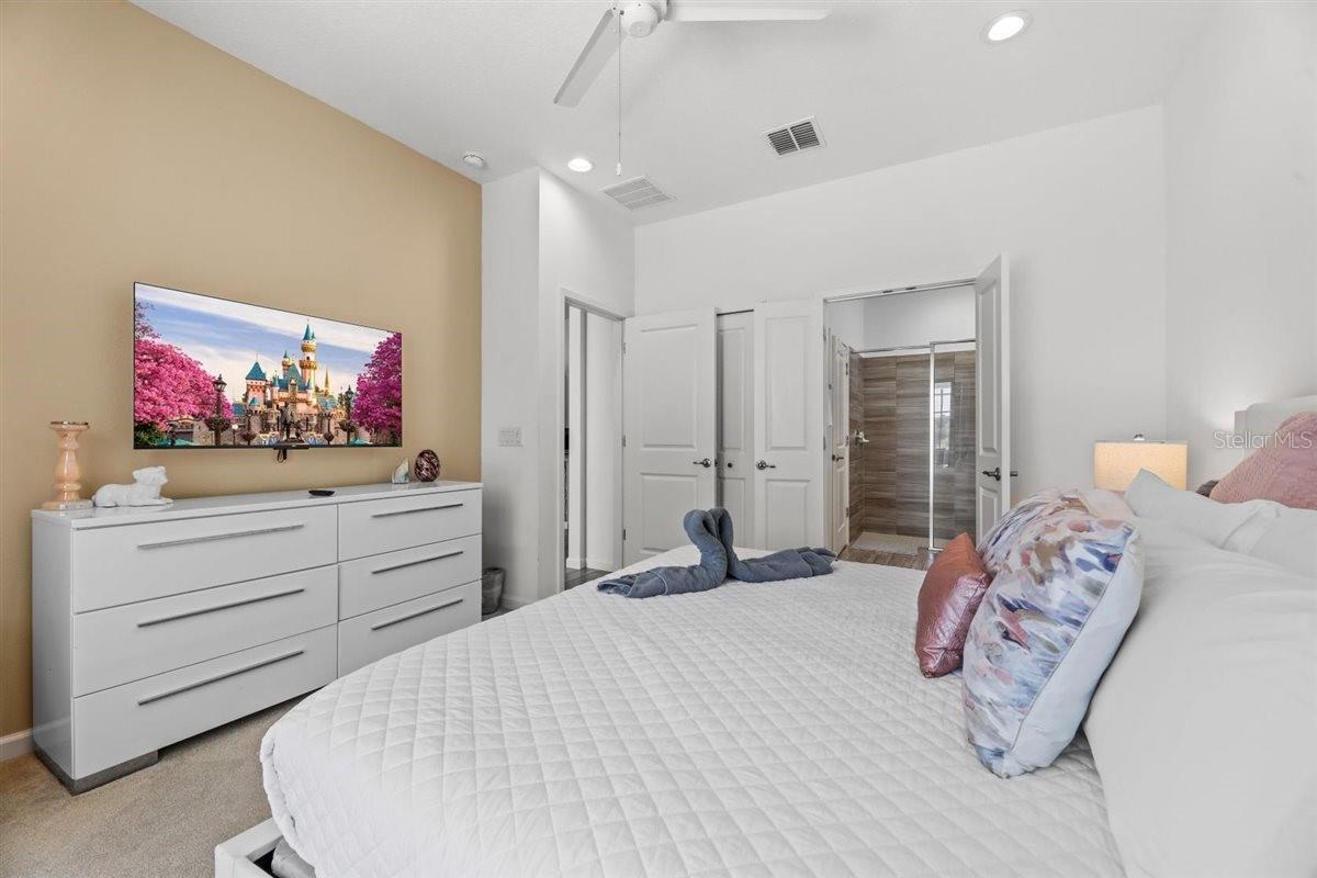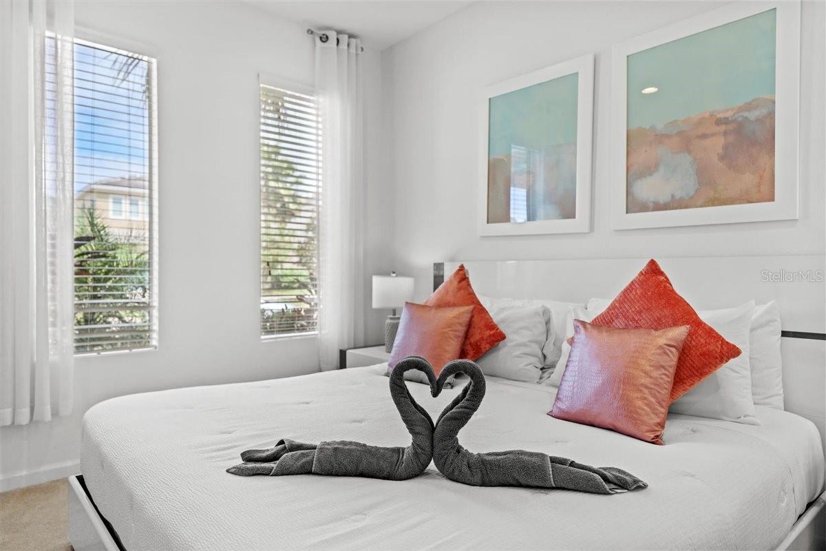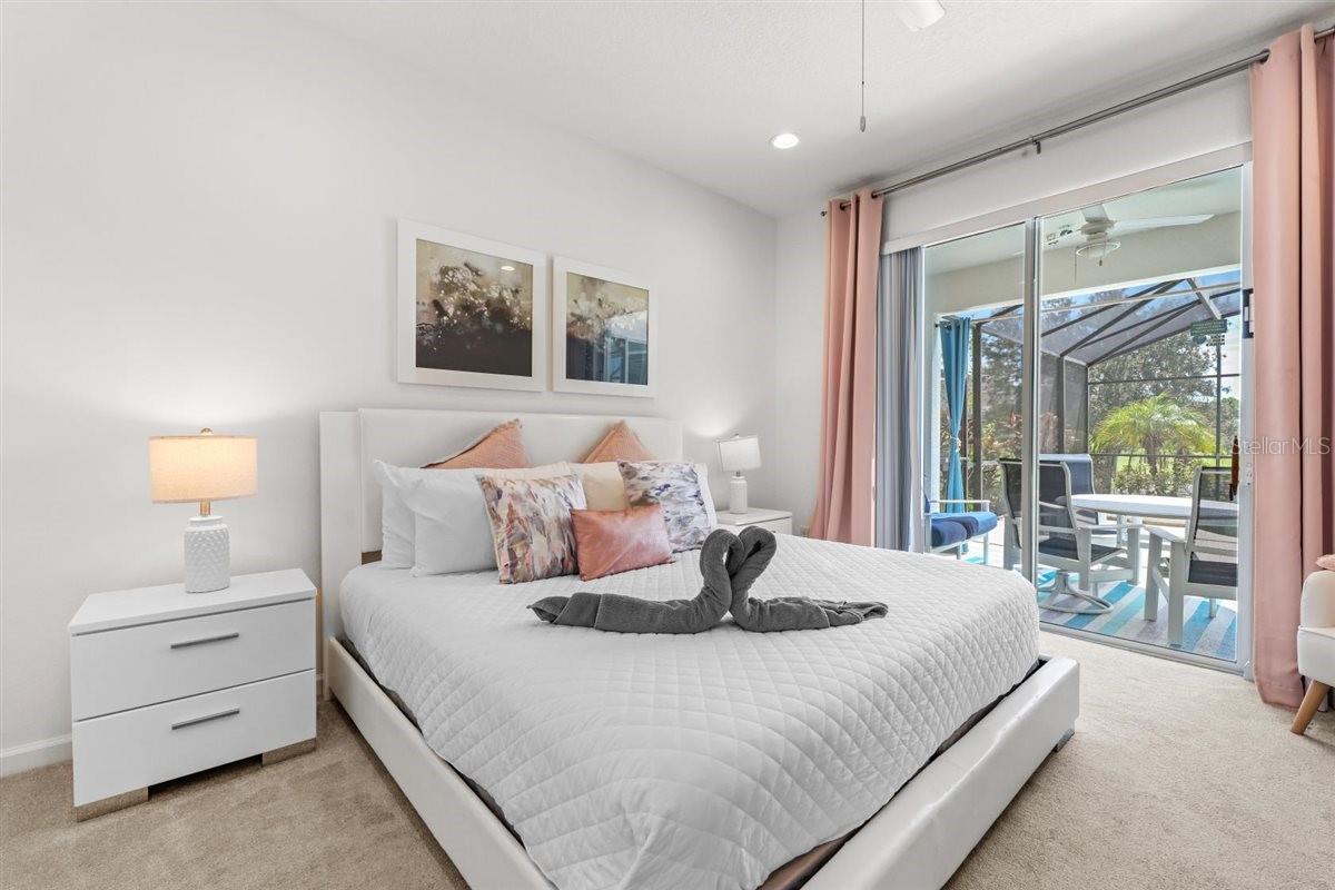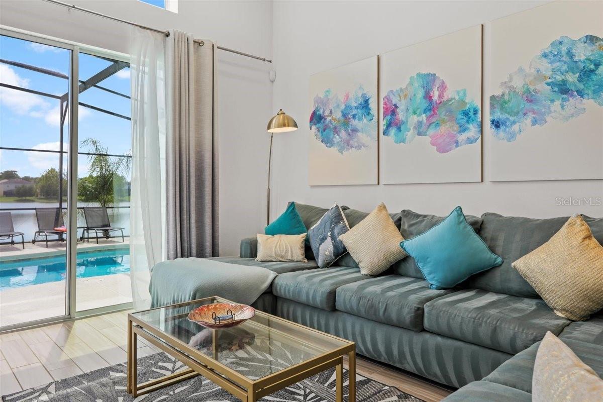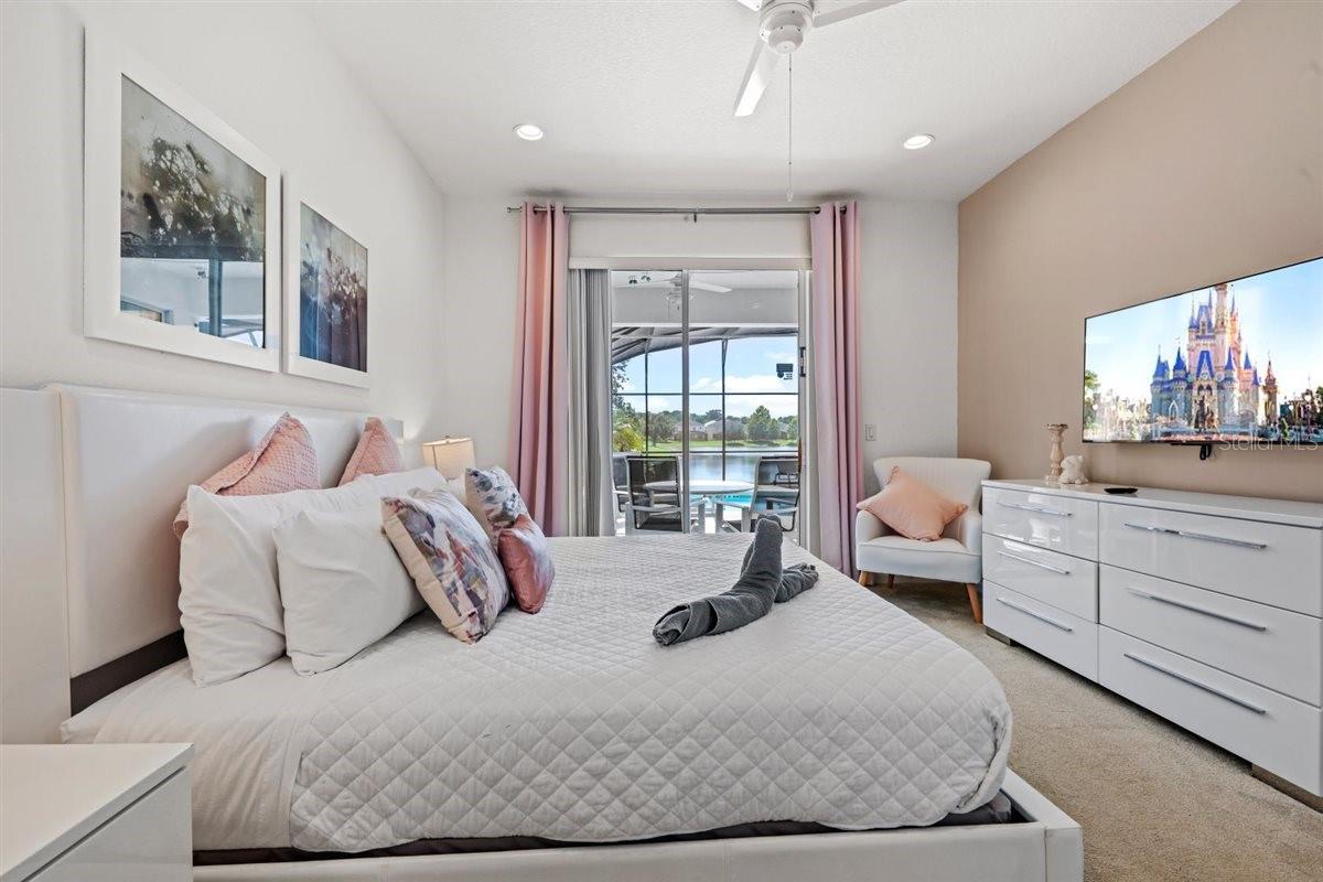 Welcome to this immaculate, fully furnished residence featuring 4 spacious bedrooms—including 2 en-suite master suites—3 bathrooms, and a private heated pool with spa overlooking a serene lake. This exceptional home offers a premium, south-facing lot with extended deck space and an “infinity-style” pool experience. Inside, the open-concept living area flows seamlessly to the outdoors, creating the perfect setting for relaxation and entertaining. Recent upgrades include fully owned 2023 solar panels providing significant utility savings, a private air-conditioned Mickey Mouse-themed game room, and over $100,000 in improvements throughout the property. Ideally located just minutes from Walt Disney World, Universal Orlando, and SeaWorld, this home presents a rare opportunity for both personal enjoyment and investment. **A substantial volume of confirmed future bookings will convey with the sale, offering immediate rental income potential.** From the moment you step inside and take in the panoramic views of the sparkling pool and lake, you’ll know you’ve found a true dream home