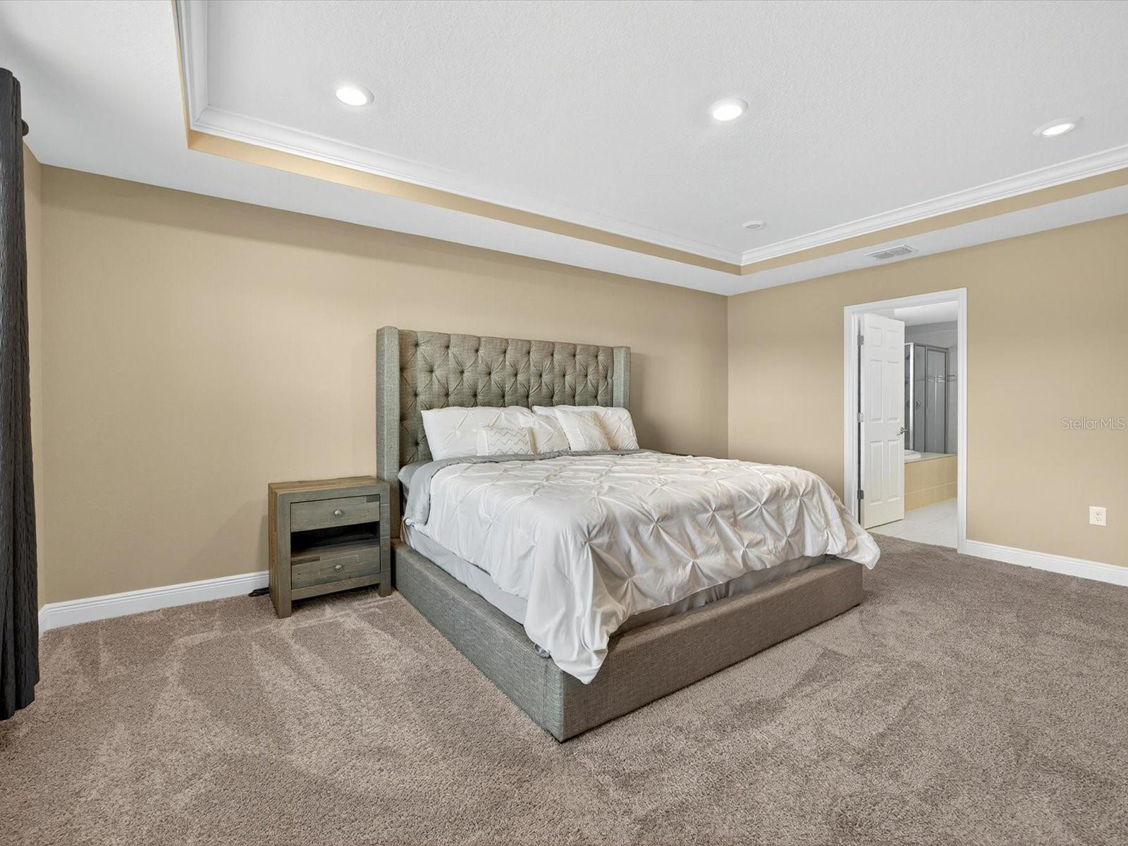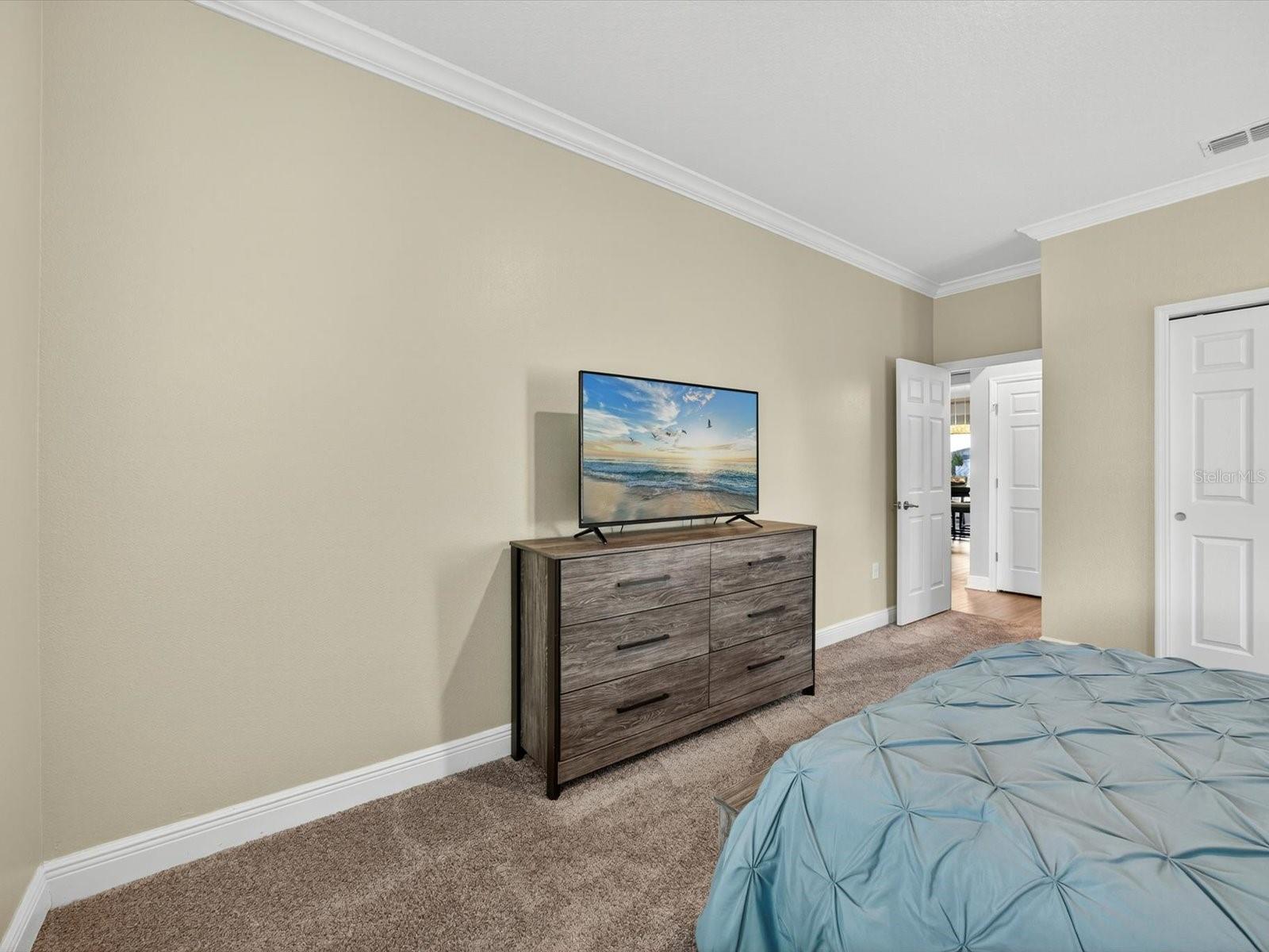 Waterfront living with room to breathe. Set on an oversized water-view lot, this fully updated, fully furnished home blends premium finishes with a comfortable, open layout. The main level centers around a sleek kitchen and bright living/dining space that flow to a covered lanai; perfect for sunrise coffee and sunset views across the water. A bedroom on the main floor adds true flexibility for guests, multigenerational living, or a quiet office. Upstairs, the private owner’s retreat pairs with additional bedrooms and flexible space for work or play. Used only as a second home, everything feels fresh and lightly lived-in. A 3-car garage with an epoxy floor delivers extra storage and a polished look. Close to shopping, dining, and major routes. Easy to show! Come see the waterfront lifestyle.