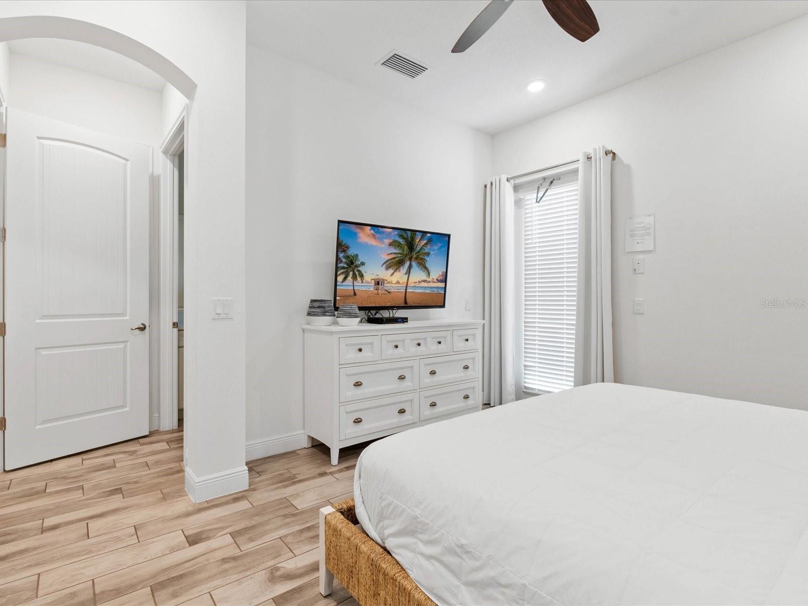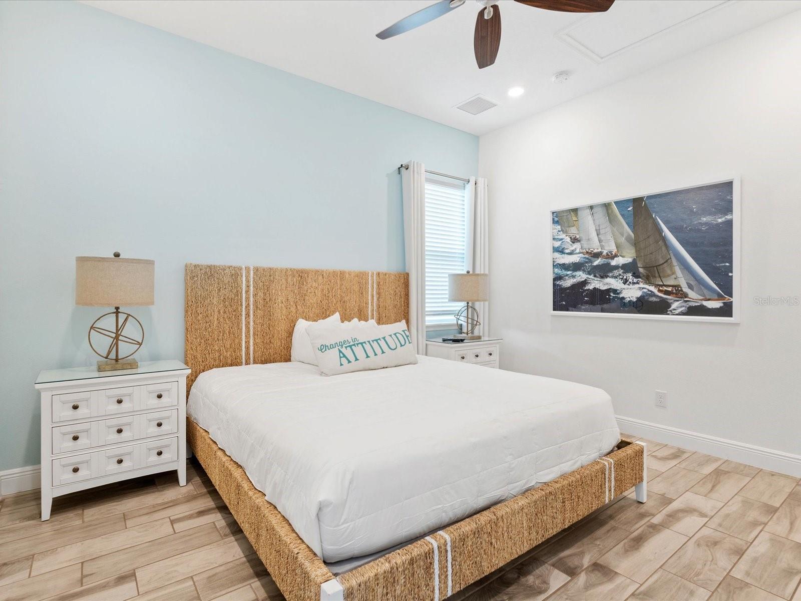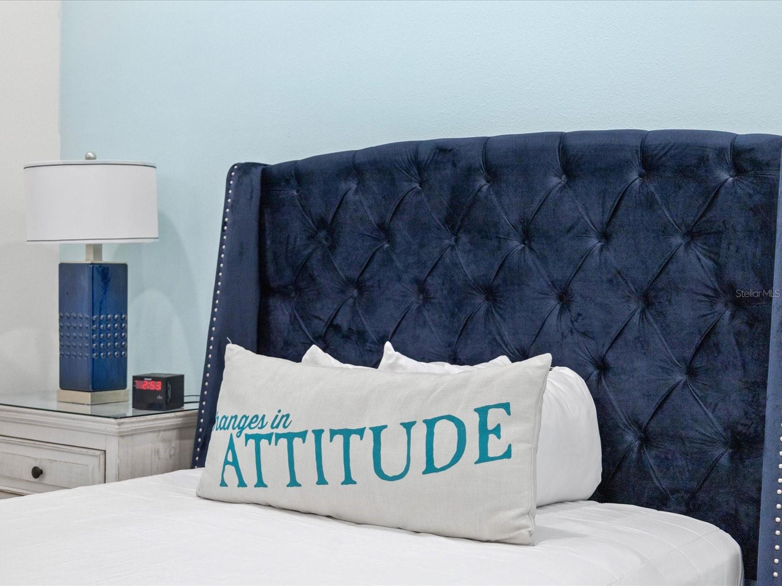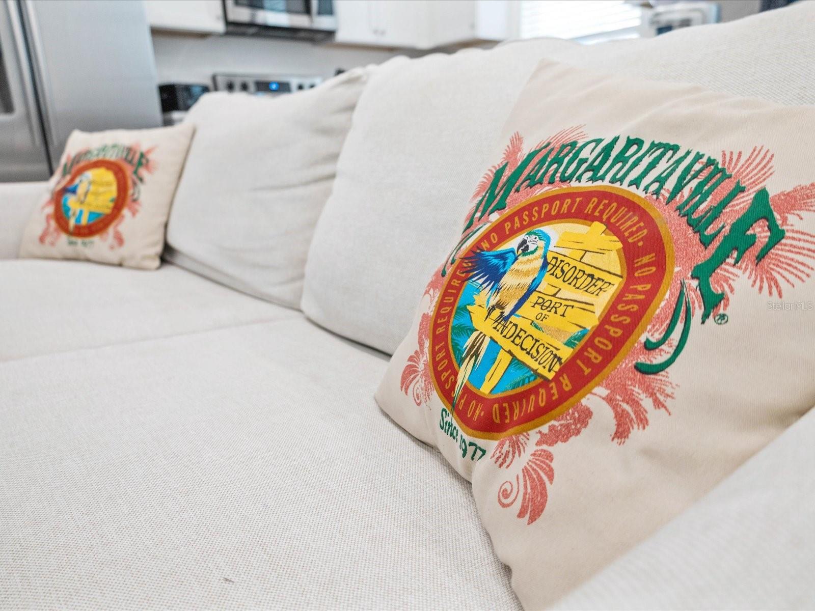Stunning 2 bedroom, 2 bathroom POOL COTTAGE located in the heart of Margaritaville Resort! This immaculately kept, highly sought after floorplan, rents extremely well and is just moments away from the theme parks. Fully furnished with Margaritaville's signature furniture package and decor, this cottage offers two primary bedrooms, one downstairs and one upstairs, private balcony off of the upstairs bedroom, BOSE IN CEILING SURROUND SOUND, high end wood look tile throughout, upgraded quartz countertops, wooden stairs, oversized private owners closet, high ceilings, and so much more. Step out onto the spacious FULLY FENCED backyard to soak up the sun in your private, heated pool, or head upstairs to the balcony to watch the beautiful Florida sunsets with a glimpse of the Disney fireworks. This property can be used as a full time residence, second home, short term or long term rental property. This resort style community features two large swimming pools, multiple restaurants and bars, fitness center, full service spa, lush and tranquil walking trails to all ends of the community, as well as a moments walk to all of the restaurants, bars, shops and entertainment that Sunset Walk has to offer! Low maintenance resort living includes fully maintained grounds, home exterior, lawn care, and 24/7 roaming and manned gated security entrance.