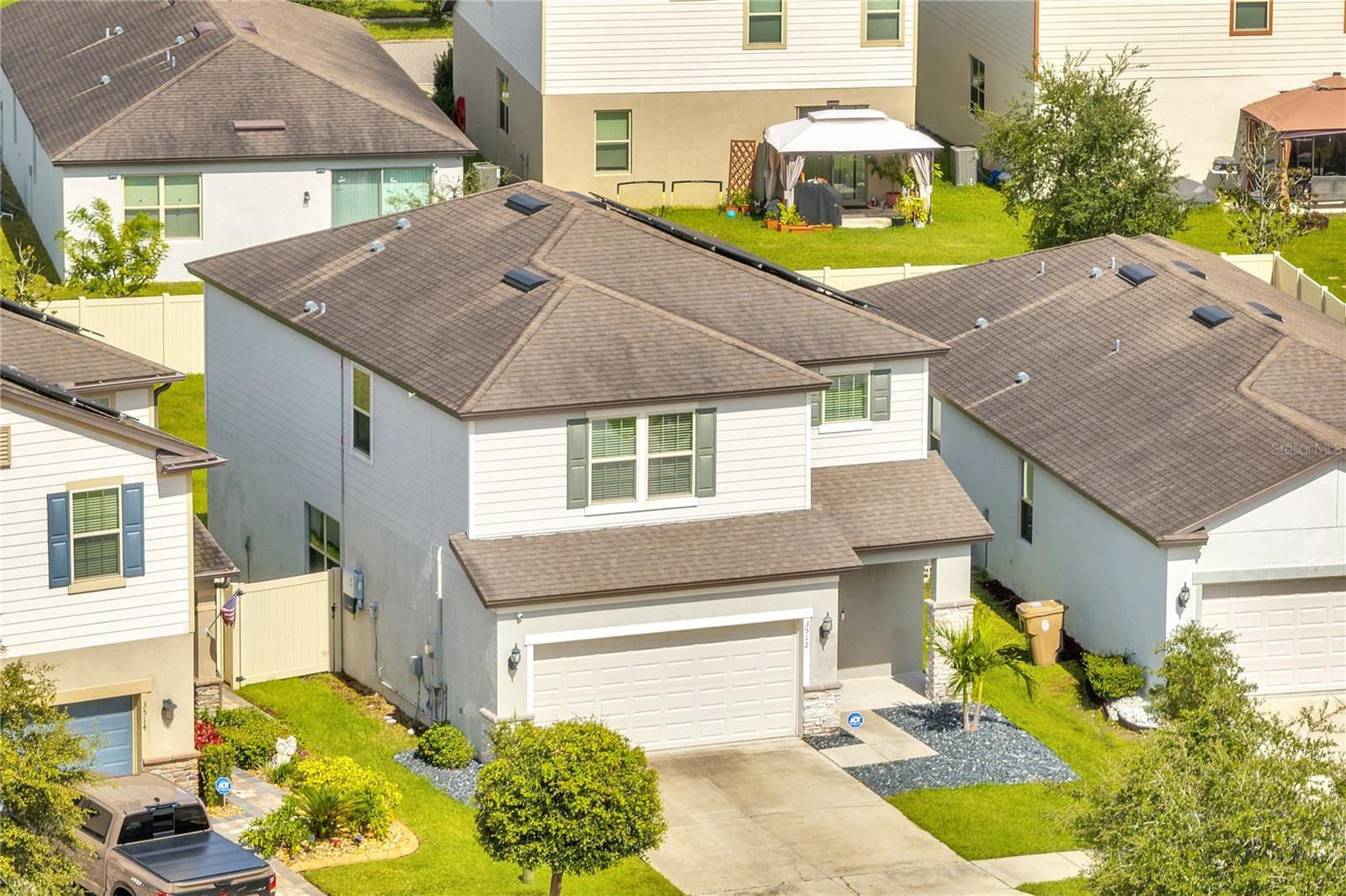 Welcome to 3512 Crossings Loop, a beautifully upgraded four-bedroom, three-bath two-story home nestled in one of Kissimmee’s most desirable communities—just minutes from Lake Nona, Orlando International Airport, and the area’s best shopping, dining, and theme parks. From the moment you arrive, you’ll notice the home’s stunning curb appeal, enhanced by new decorative rock landscaping and a freshly painted exterior. Inside, elegance meets comfort with porcelain tile flooring, soft plush carpet, and freshly painted interiors that create a bright, inviting atmosphere throughout. The open-concept layout is perfect for entertaining and family living, offering generous living spaces and an effortless flow between the kitchen, dining, and living areas. Step outside to your expansive fenced backyard—ideal for gatherings, outdoor dining, or simply enjoying Florida’s beautiful weather in privacy. This home also comes equipped with a fully paid-off solar panel system, providing exceptional energy efficiency and long-term savings. Perfectly located near top-rated schools, Lake Nona Medical City, and major highways, this property combines luxury, convenience, and modern living. Experience the perfect balance of style and comfort—your dream home awaits at 3512 Crossings Loop.