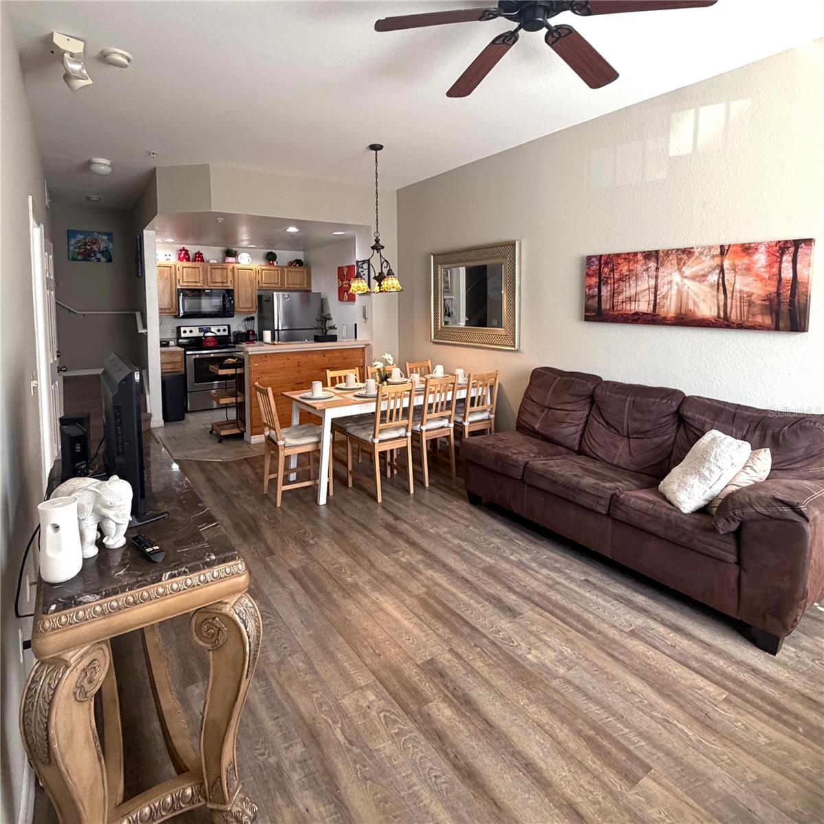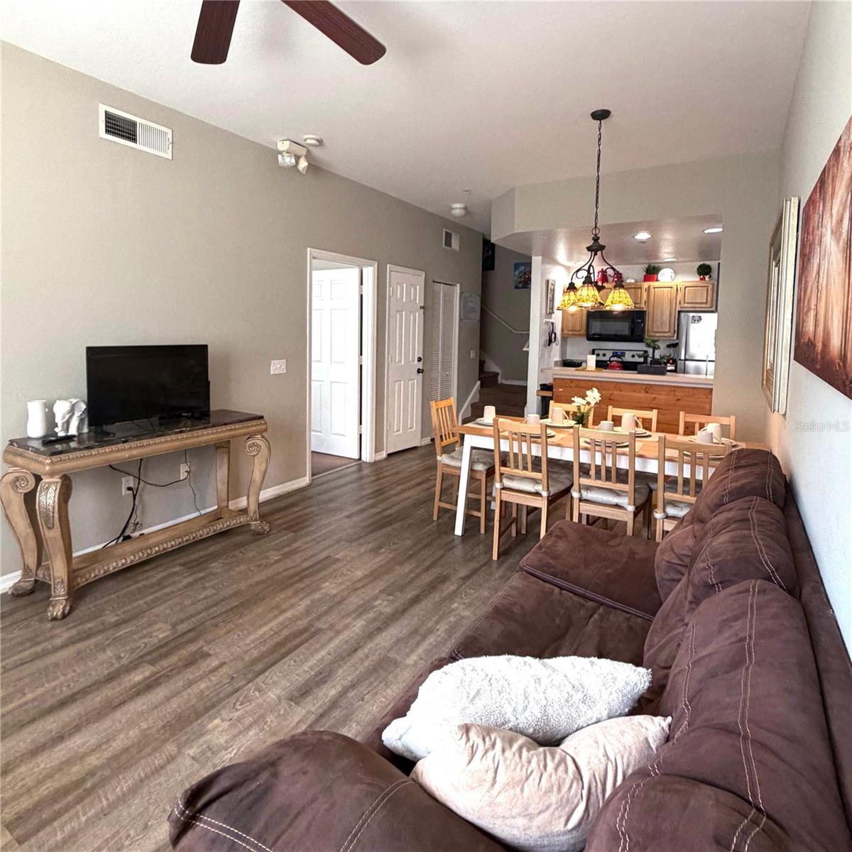Beautiful 3-bedroom, 2-bath home sold furnished - please note that kitchen utensils and TVs are not included; only the furniture and décor are part of the sale- located in the guard-gated community of Venetian Bay Villages. Conveniently situated near major attractions, Orlando International Airport, The Loop shopping center, and main roadways. This unit is close to the clubhouse and main community pool. The community offers 3 pools, including a main heated pool open until late daily, as well as a fitness room and theater next to the clubhouse. Additional amenities include a beach volleyball court, basketball and tennis courts, and 2 satellite pools with play areas throughout the neighborhood. This property offers a great location within a resort-style setting. Schedule your showing today! Showings under a 24 hour notice only and check availability of the house.