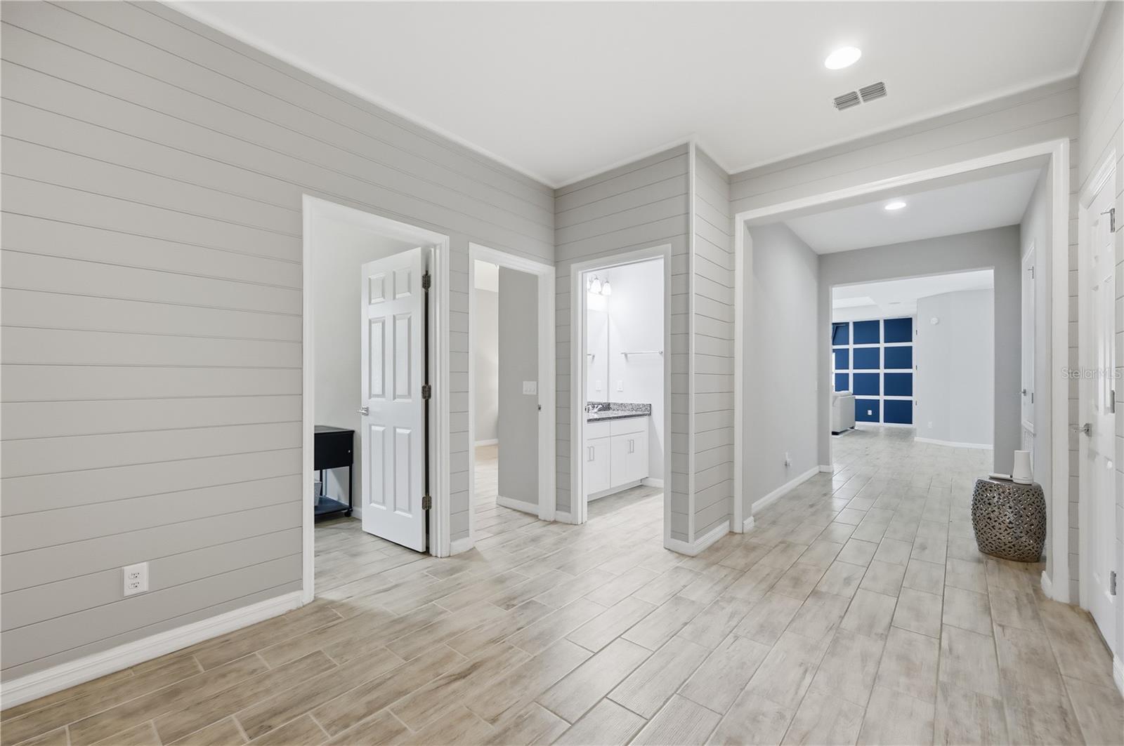 Stunning fully UPGRADED BUILDER MODEL HOME on an oversized corner lot in beautiful Concorde Estates! Step outside your front door and you are greeted to WATER & PARK VIEWS from many areas of the home. This 4-bedroom, 2-bath home offers over 2,300 sq ft of upscale living. Step inside to discover exquisite wood-look tile flooring that flows seamlessly throughout the home. The family room and owner's suite feature custom coffered checkerboard accent walls, adding custom character and visual appeal. The spacious gourmet kitchen is a chef's dream, complete with stainless steel appliances, sleek stone countertops, and ample cabinetry Surround sound speakers in the family room. Enjoy park views, a water purification system, central A/C, and a separate laundry room. Located just moments from LAKE TOHO, with community amenities including a pool, dog park, tennis courts, playground, and clubhouse. This home is loaded with upgrades so make this home a must see on your list, and be home for the holidays!