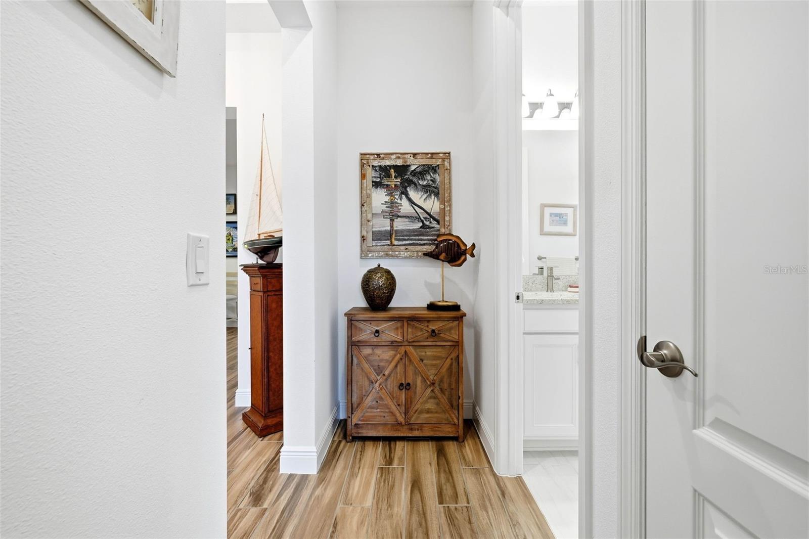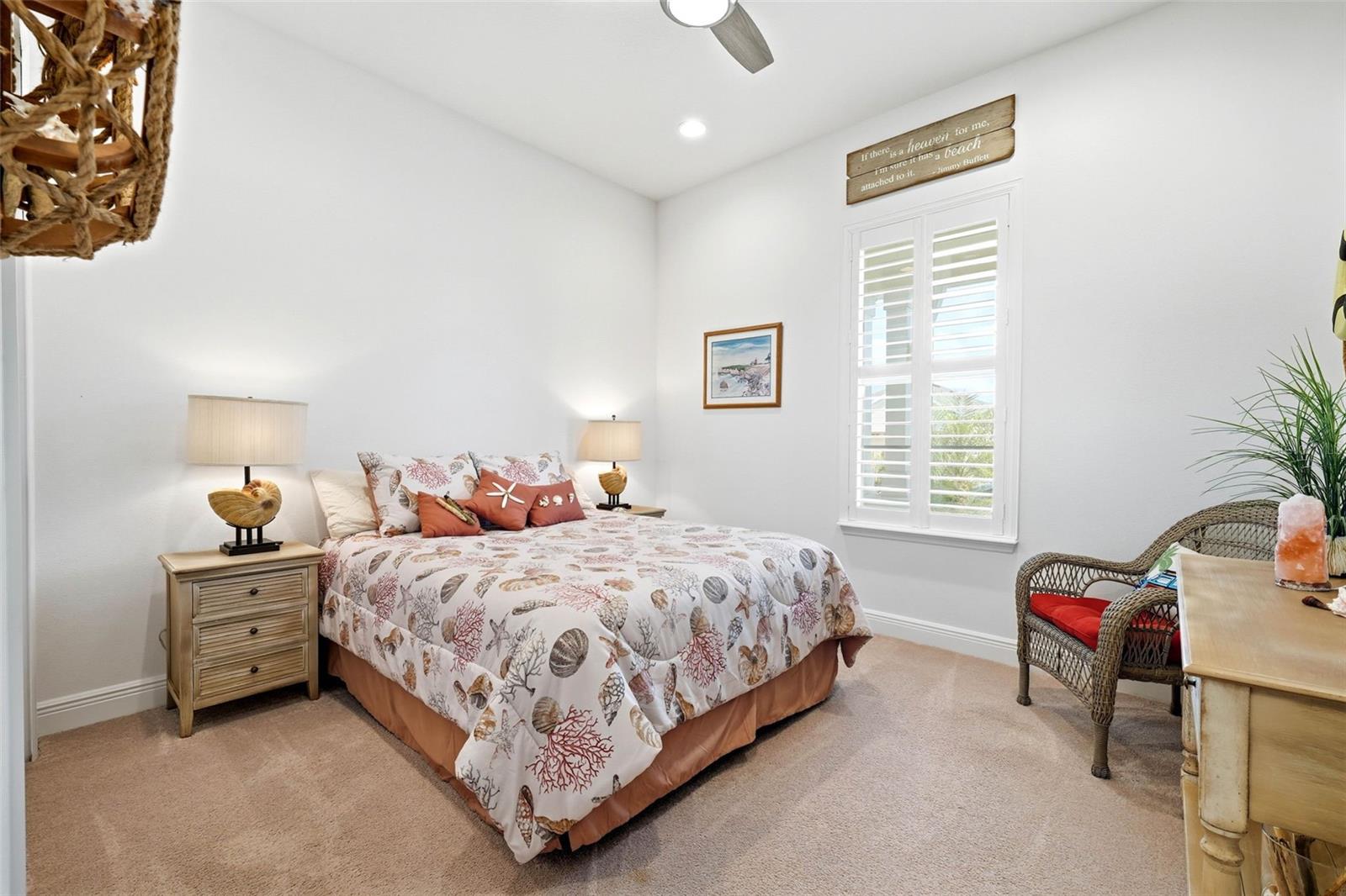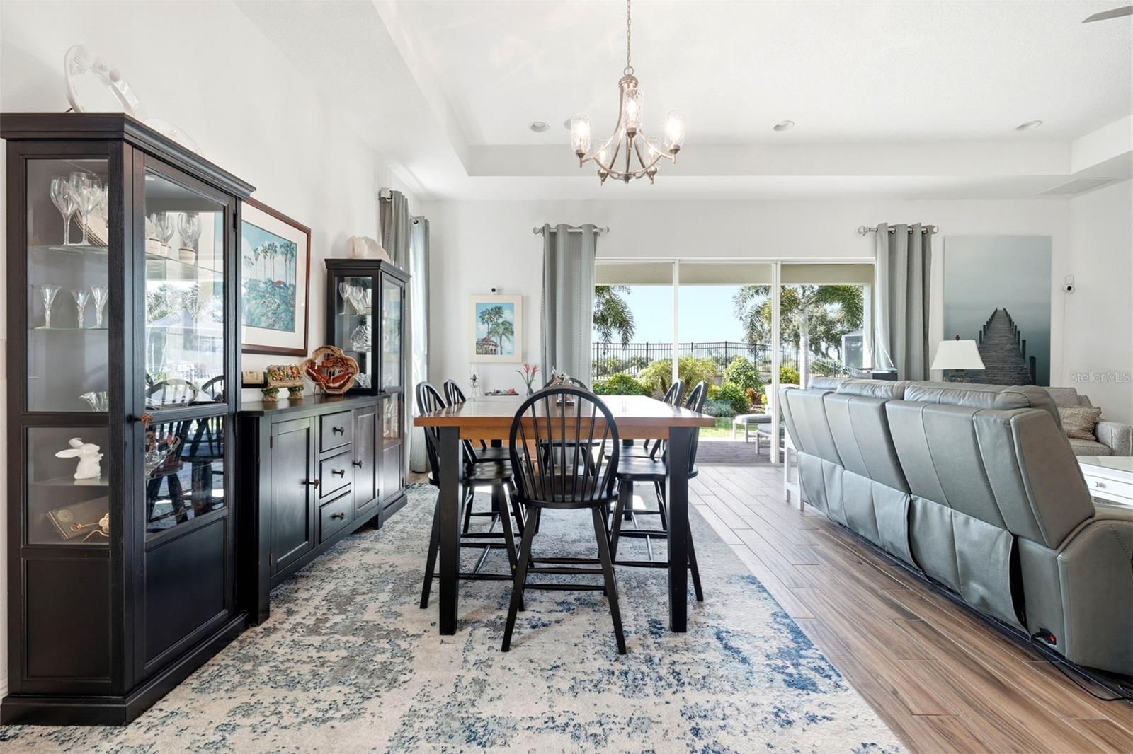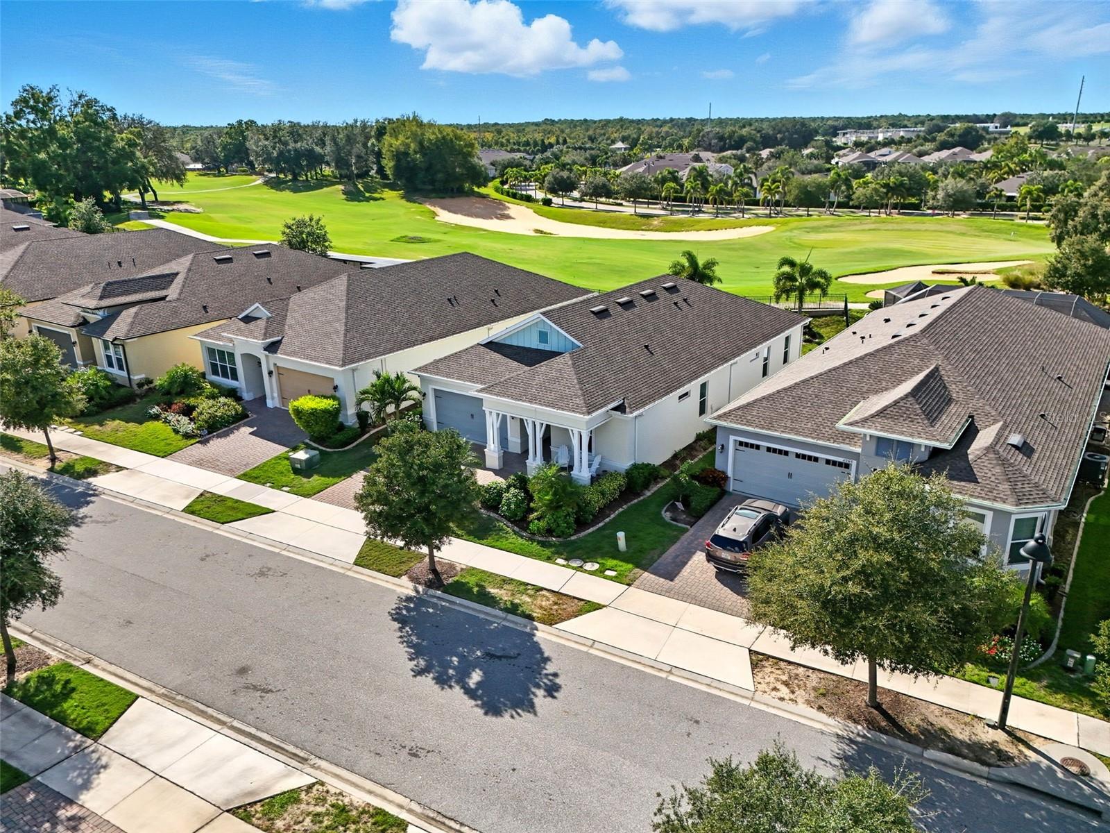 Welcome to resort-style living in the Four Seasons 55+ guard-gated community. This St. Lucia model loaded with the top upgrades offered by the builder, blends coastal elegance with a tropical lifestyle in the open living space. Features include wood-look tile, 8’ doors, tray ceilings, designer lighting and fans. Split-bedroom floorplan ensures guest privacy. Expanded, builder-upgraded great room with dry bar is ideal for entertaining. Gourmet kitchen offers granite island, soft-close cabinets, GE Profile appliances, gas cooktop, vent hood, and LG refrigerator. Primary suite features golf course views, tray ceiling, and spa-style bath with dual-head shower, double vanity, and walk-in closet. Enjoy morning rocket launches from the front porch and amazing sunsets from the back covered lanai and fenced yard. HOA covers lawn care and irrigation. Amenities: clubhouses, pools, spa, tennis, pickleball, fitness center, and full-time activities director. Easy access to Disney World, Celebration, Universal, shopping, dining, and major routes to Orlando and Tampa airports, and both coasts. Seller is a licensed Florida Realtor.