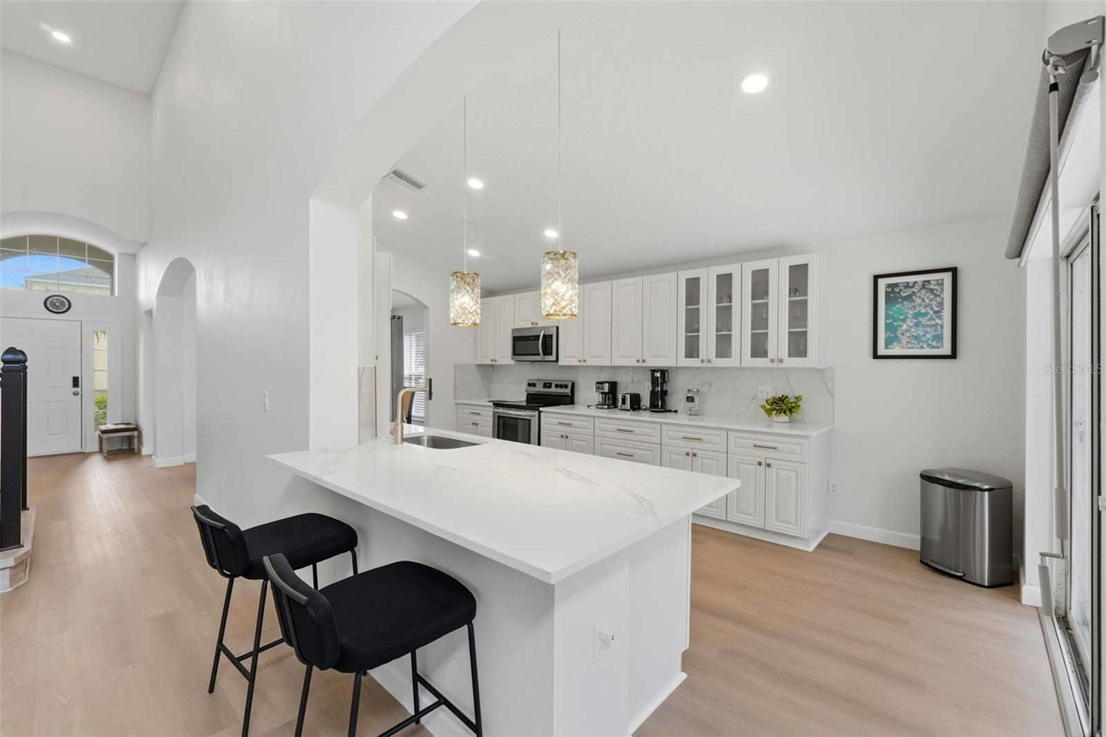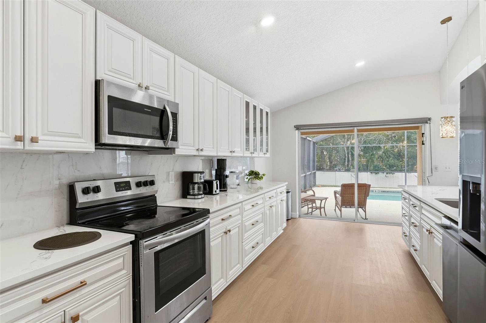 Fully Renovated 5-Bedroom Pool Home with Pond View in Prime Kissimmee Location! Welcome to this beautifully updated corner-lot residence ideally situated in the heart of Kissimmee, just off Highway 192 — offering quick access to shopping, dining, entertainment, and world-famous attractions. This stunning two-story home has been fully renovated to combine modern style with everyday comfort, making it truly move-in ready. Step inside to discover a bright and open floor plan featuring brand-new flooring throughout, fresh interior and exterior paint, and high ceilings that create an inviting sense of space. The fully upgraded kitchen showcases new cabinets, elegant countertops, and ample storage, making it a dream for both everyday living and entertaining. This spacious home offers five bedrooms and three full bathrooms, with the primary suite conveniently located on the main floor for added privacy and comfort. Upstairs, you’ll find additional well-sized bedrooms perfect for family, guests, or a home office. Outdoors, enjoy your very own private screened-in pool overlooking a peaceful pond view, providing the perfect setting for relaxation or weekend gatherings. The extended driveway offers plenty of parking space, ideal for large families or guests. With its prime location, thoughtful upgrades, and elegant design, this home has it all — whether you’re seeking a family residence, vacation retreat, or investment opportunity. Don’t miss your chance to own this beautifully renovated home — schedule your private showing today!