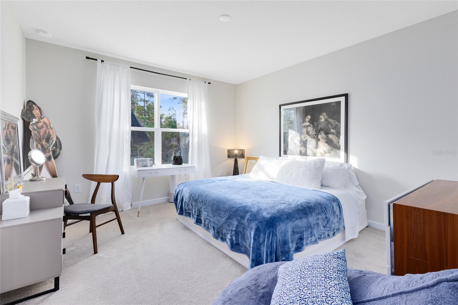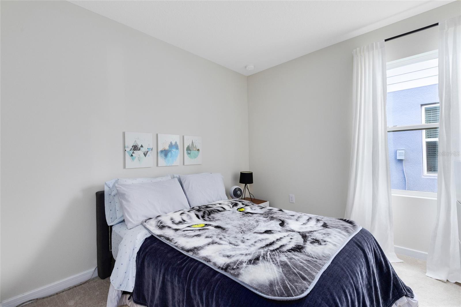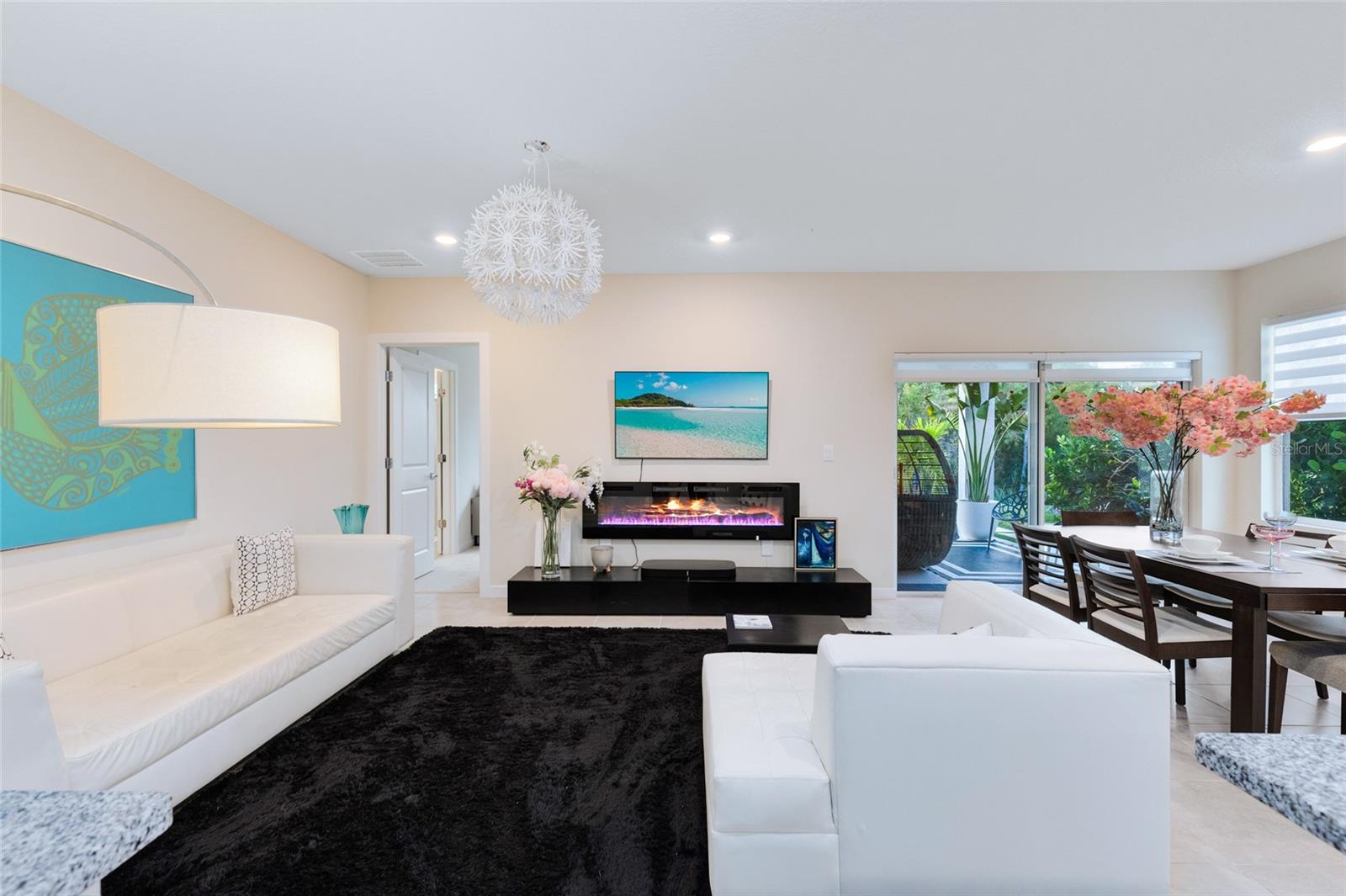 Welcome Home To Your Happy Place. This beautifully maintained 4-bedroom, 2-bath Pulte Homes Daniel model in Cypress Hammock, offering a bright open layout and a peaceful conservation backdrop with no rear neighbors. Spend days and nights in the sanctuary feel of the backyard, light the firepit and enjoy the calm, relaxing feel of nature. The main living area is filled with natural light and features large sliders that frame the private outdoor setting. The modern kitchen boasts upgrades galore, opens to the connected dining area and family room while including stone countertops, white cabinetry, a center island with seating, stainless steel appliances, a walk-in pantry, and tile flooring that continues throughout the main spaces. The family room is warm and inviting with views of the backyard and easy access to the covered lanai. The primary suite is tucked away for privacy and features a spacious bedroom, a large walk-in closet, and an en suite bathroom with a double vanity, stone counters, and a walk-in shower. Three additional bedrooms share a full bathroom on the opposite side of the home, creating a comfortable split layout. Outside, the covered lanai and upgraded patio area provide a relaxing extension of your living space with room to entertain while enjoying the natural conservation view. A community walking trail runs just behind the home, offering a peaceful path around the conservation area right outside your backyard. Built in 2023, this home offers energy-efficient features, solar panels, and modern finishes throughout. Cypress Hammock residents enjoy a resort-style pool, splash pad, clubhouse, playground, walking trails, and more—all with a low HOA and no CDD. Conveniently located off Poinciana Blvd with quick access to theme parks, shopping, dining, and major roadways.