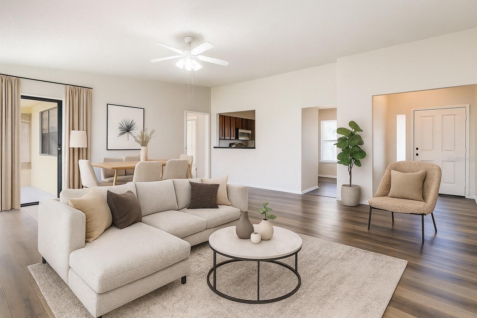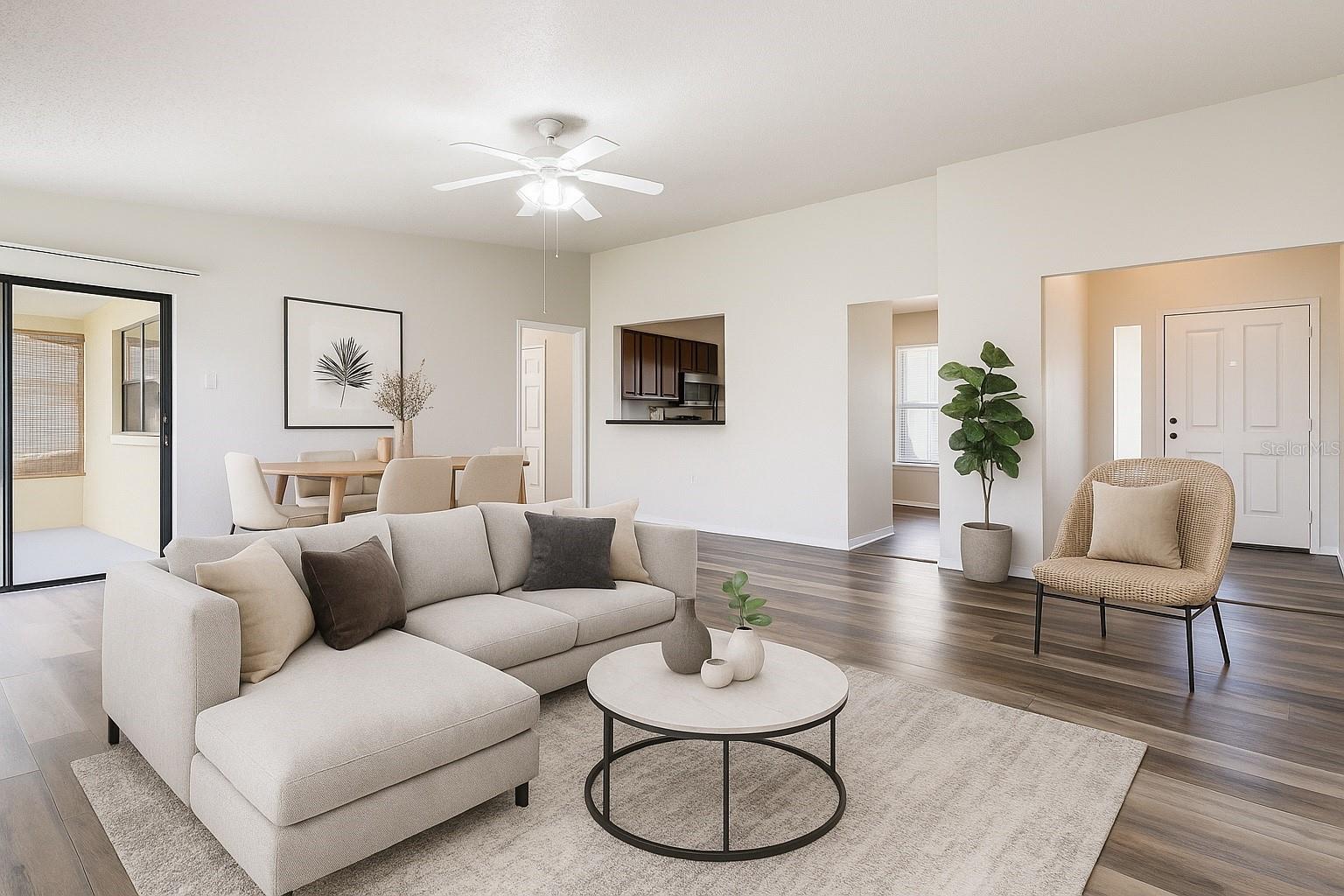 One or more photo(s) has been virtually staged. ** SELLER IS OFFERING A $5,000 CREDIT TOWARD BUYERS’ CLOSING COSTS WITH AN ACCEPTABLE OFFER.** This WELL-LOCATED, lovely single-family home features 3 bedrooms and 2 bathrooms on an oversized lot in the desirable Poinciana community. The open and functional layout features modern vinyl flooring recently installed in the kitchen and living areas. The kitchen includes stainless steel appliances and a cozy eat-in space filled with natural light. Enjoy peaceful afternoons in the enclosed porch—perfect for relaxation or entertaining—and take advantage of the fenced and spacious backyard with a shed for extra storage and endless possibilities. The garage has been freshly painted, adding to the home’s clean and well-maintained appeal. GREAT LOCATION!!! This home strikes the perfect balance between comfort and convenience. This house sits within a mile of the main shopping and dining center at Doverplum and Cypress Parkway, Poinciana Public Library, and much more. Everything you need is right at your fingertips! Schedule your showing today before it’s gone! .** ROOF REPLACED IN 2023 **