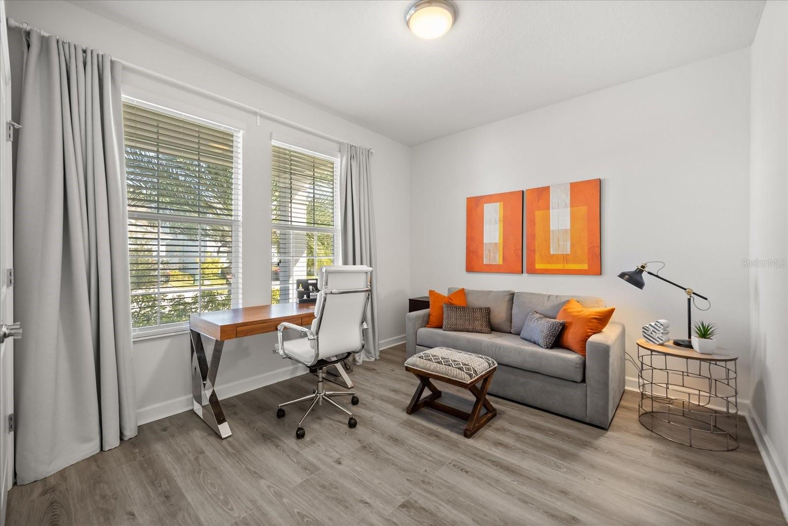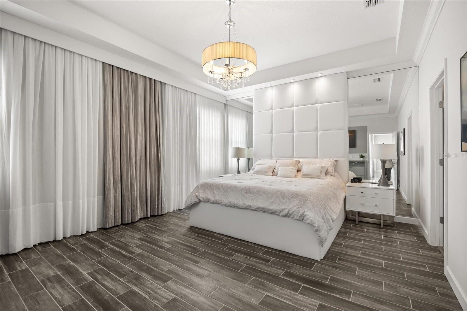 Welcome to this *PROFESSIONALLY DESIGNED* single-story home, the beautiful MARINA floor plan by Lennar Homes, consisting of *4 BEDROOMS / 3 FULL BATHROOMS and 3 CAR GARAGE* nestled in a premium lot, with no neighbors in the back, located in the sought after GATED RESIDENTIAL COMMUNITY *REFLECTIONS at Storey Lake*. Upon entering this filled with natural light home, you are greeted by a spacious foyer that seamlessly flows into the home's main living areas, with 6" x 24" DARK GREY wood like CERAMIC TILE FLOORING. The 2nd and 3rd bedrooms are located on the left side of the foyer, and 3rd bedroom has been converted a suite with a full bathroom, featuring QUARTZ double vanity, and a private area for the toilet and shower. Moving into the main living areas, the formal dinning room will be on your left, tastefully designed, making it ideal for private dining experiences. The spacious open KITCHEN and FAMILY ROOM offer a modern, yet cozy ambiance with many upgraded features such as built-in cabinets, TV shelving and lighting. At the heart of the home, the kitchen boasts high-quality stainless steel appliances—including a microwave, range, side-by-side refrigerator, and dishwasher. The kitchen's GREY QUARTZ countertops and 42-inch built-in upper cabinetry reflect a perfect balance of style and functionality. The large Master Bedroom is located at the right end of the family room and offers two windows to the backyard. The Master Bathroom, designed with an eye for sophistication and practicality is equipped with quartz double vanity, bathtub and separate shower with glass enclosure. The oversized walk-in closet is equipped with high quality built-in California shelving. The 4th Bedroom, with luxury vinyl flooring is located at the right side of the living room and has the 3rd Bathroom right outside. The extra large 3 CAR GARAGE has a utility sink added. The community Clubhouse offers a beautiful pool, fully equipped gym, conference room and play area. This home is impeccably well maintained and ready to move-in. Off of Osceola Parkway, this property offers a strategic location near Disney parks, Publix, Walmart, Target and a wide selection of grocery stores, shopping, and restaurants.
