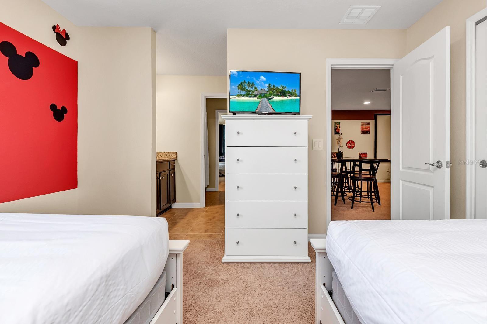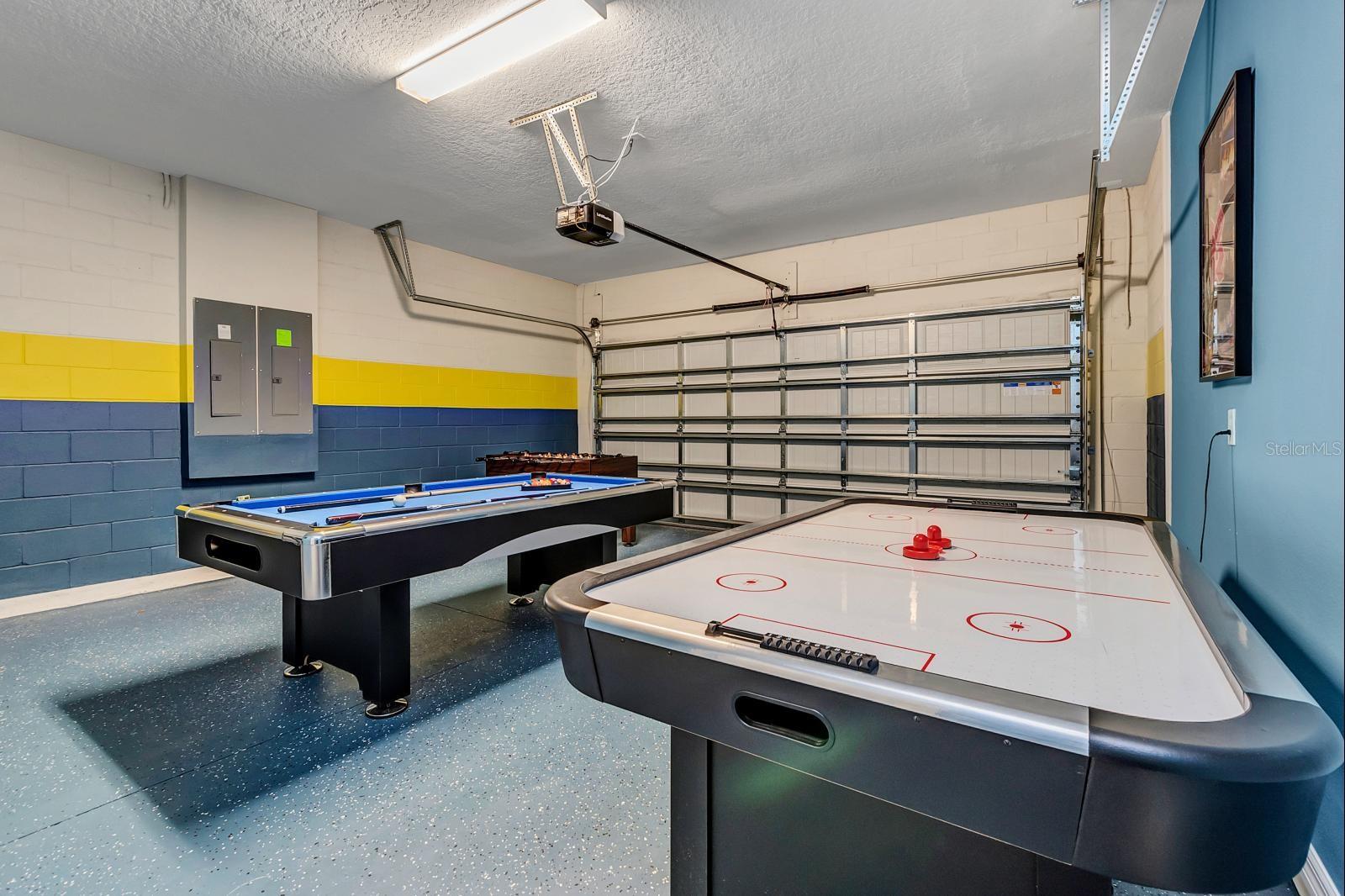 Luxury Meets Comfort Minutes from Disney! - Cul-De-Sac lot! Welcome to your dream getaway at Windsor at Westside — a luxurious yet charming retreat just 10 minutes from Mickey’s doorstep. Perfectly located near Orlando’s top attractions, this modern home offers the ideal blend of relaxation, entertainment, and style. Step inside and discover a bright, open-concept living space designed for comfort and connection. The gourmet kitchen features gleaming granite countertops, stainless steel appliances, and an oversized island with seating for six — perfect for breakfast pancakes or late-night snacks. Gather your loved ones around the elegant dining table for twelve and enjoy memorable meals together. The spacious living room invites you to unwind with its plush white couches, serene blue décor, and large flat-screen TV — the perfect place to relax after a fun-filled day at the parks. Step outside to your private tropical oasis, complete with a sparkling pool, spa, and sun-soaked patio surrounded by lush greenery and a screened lanai for privacy. Whether you prefer lounging in the shade or taking a refreshing swim, this outdoor retreat is designed for pure enjoyment. For indoor fun, the garage-turned-game room offers hours of entertainment with air hockey and foosball — a favorite spot for both kids and adults. The first-floor king suite provides a peaceful escape with crisp linens, elegant décor, a private en-suite bathroom, and direct access to the pool area. Upstairs, the cozy loft is perfect for family movie nights or quiet relaxation. From sunrise coffee to sunset swims, every detail of this home has been thoughtfully designed for unforgettable family moments. Don’t just visit Orlando — make it your home away from home.