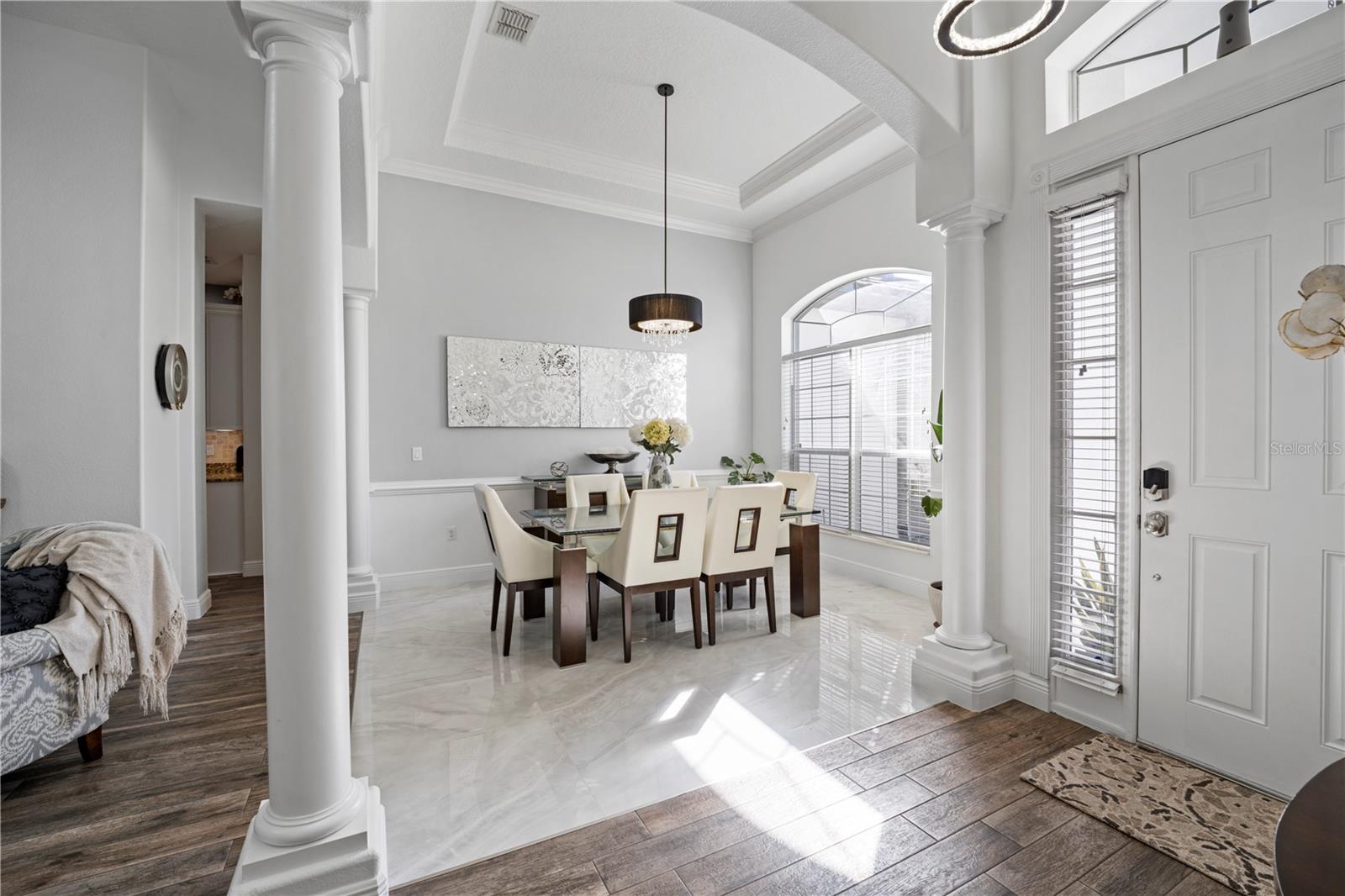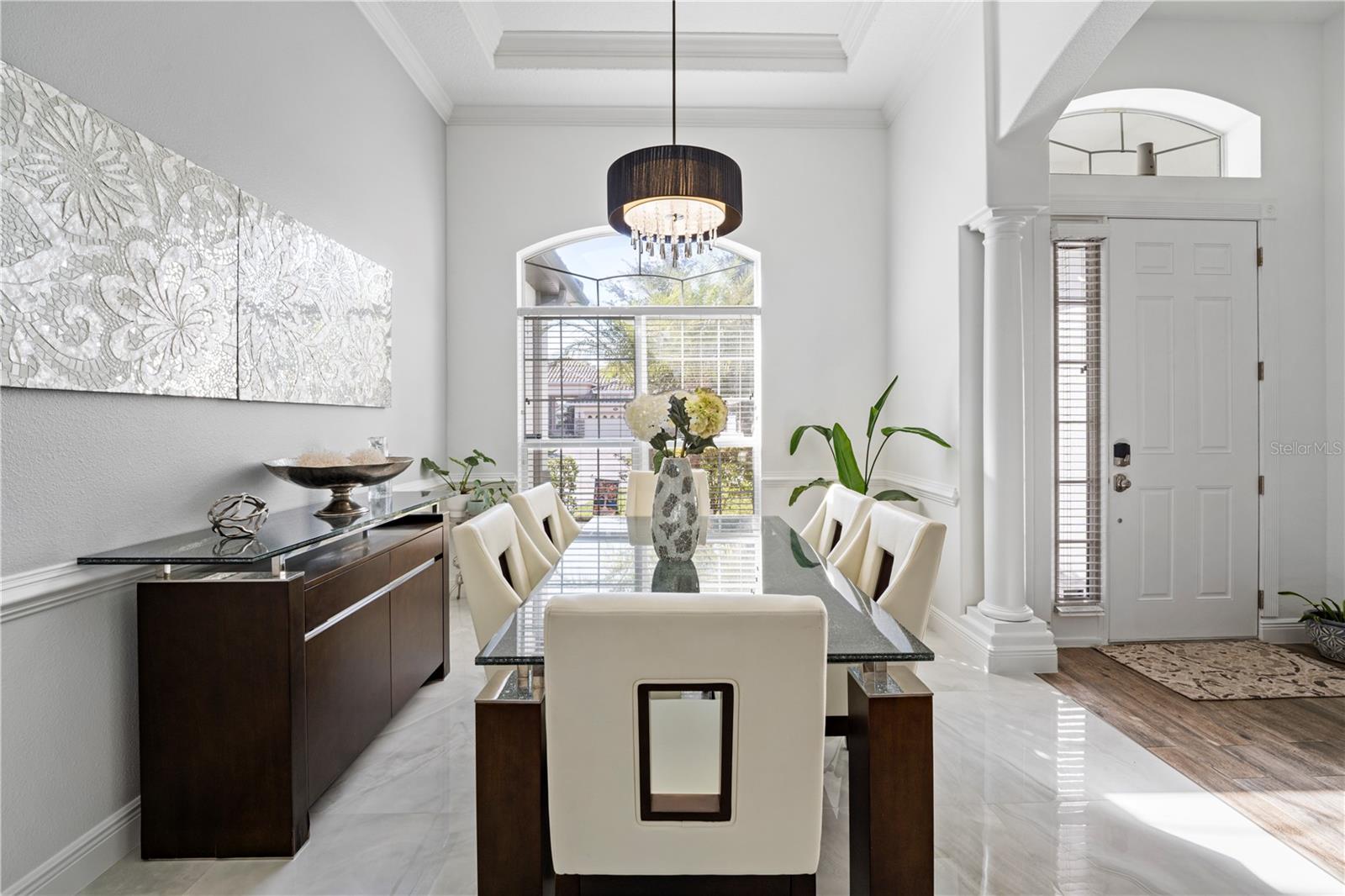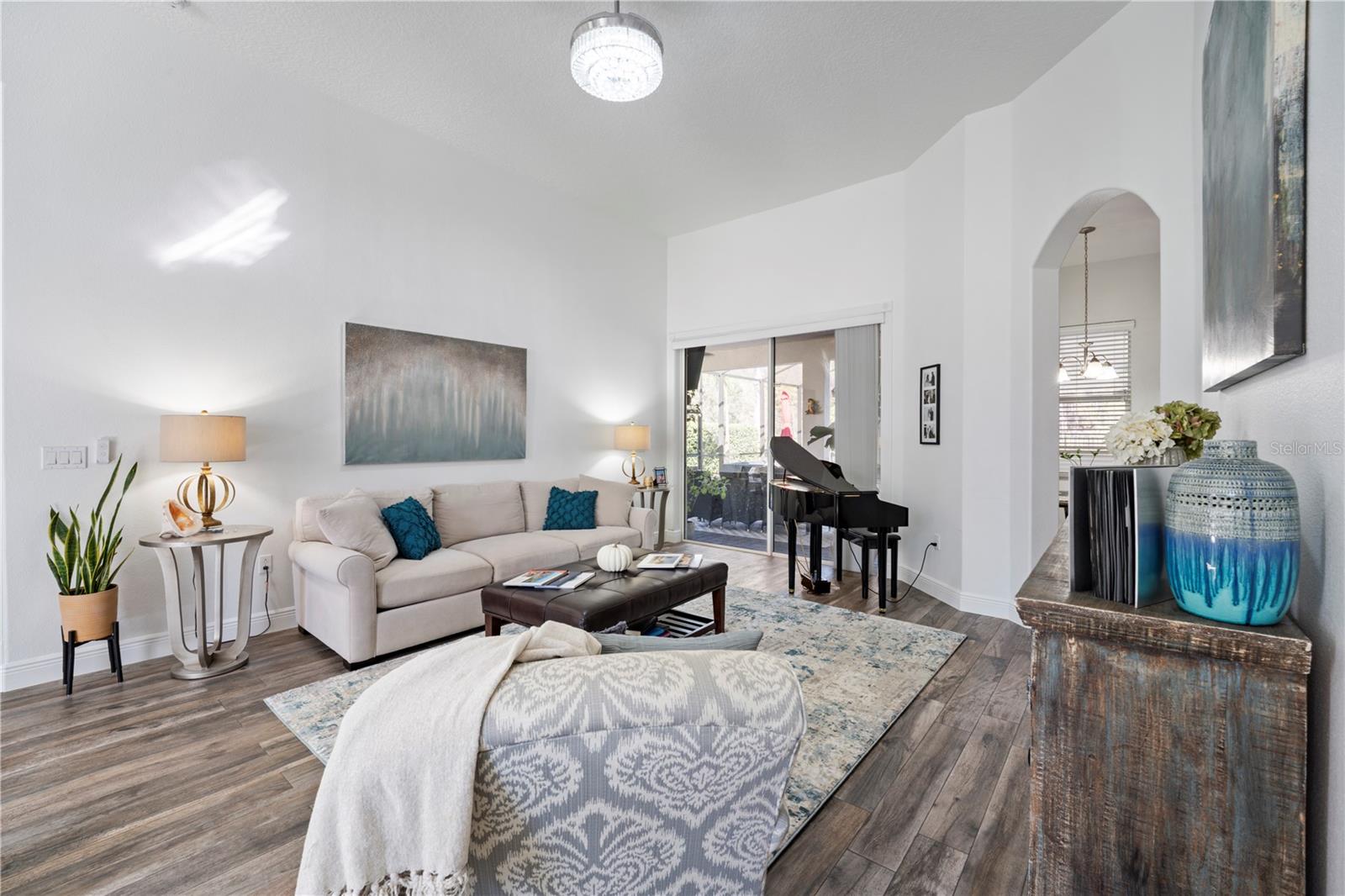 Experience resort-style living in this custom single-story pool home in the gated Mediterranean community of Avilla. Enjoy bright open spaces, 12.5 ft tray ceilings, marble and wood-look tile, and stunning pool + conservation views from the living, dining, and family rooms. Large sliders open to a spacious lanai, saltwater pool, tanning ledge, and panoramic screen—perfect for relaxing and watching the beautiful osprey, cranes and resident owl that make the woods their home. The kitchen offers granite counters, 42” cabinets, custom backsplash, prep island, bar seating, and walk-in pantry. The private primary suite overlooks the pool and features double closets and a spa-like bath. Three guest suites, a built-in office, full pool bath, oversized 3- car garage, and laundry room add convenience. Community amenities include a pool, tennis, basketball, playground, and walking paths. Prime location near The Loop, shops, dining, parks, boating, and easy access to Orlando Airport and theme parks. There's so much more.