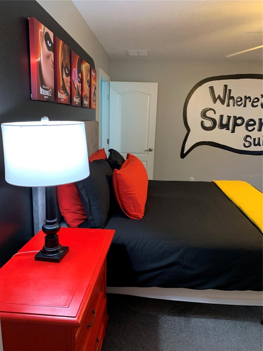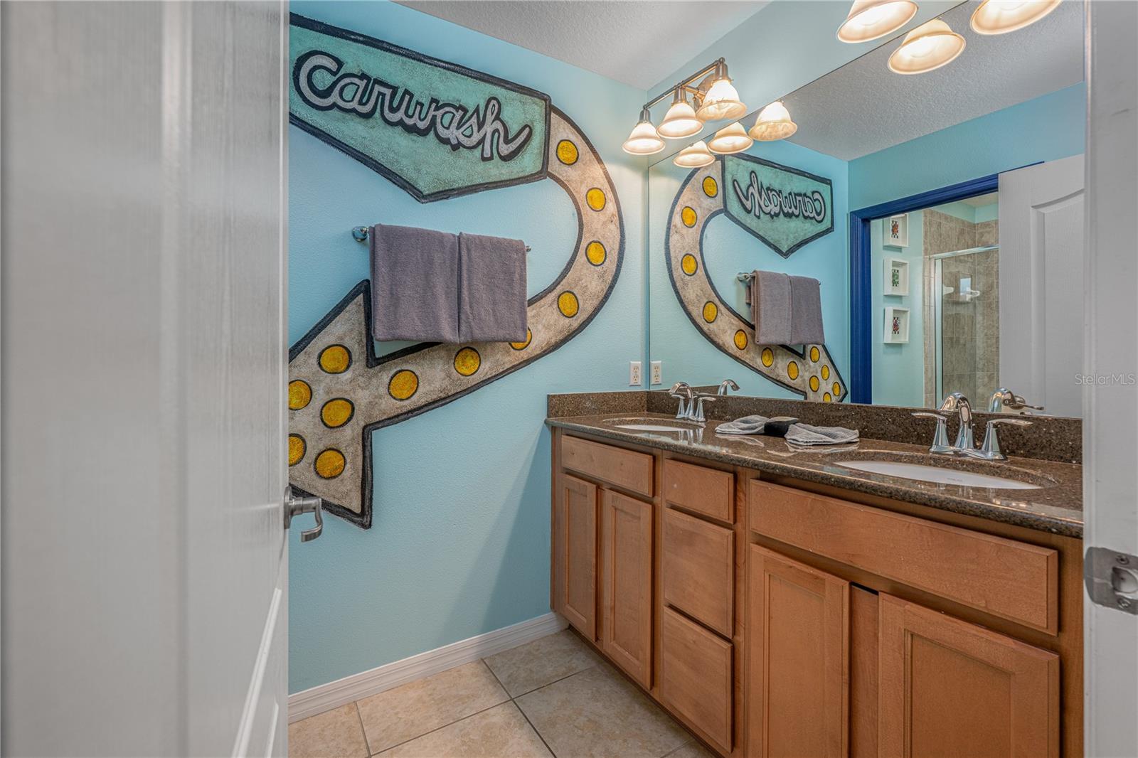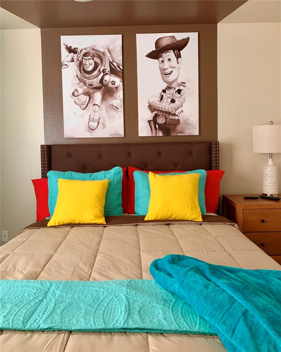 Discover a truly special retreat in Paradise Palms—perfectly located in the heart of the theme-park corridor and designed to deliver both comfort and unforgettable character. This fully furnished, professionally designed 4-bed, 3-bath townhome blends a light, bright atmosphere with playful touches throughout, including subtle hidden Mickeys and a uniquely immersive style that sets it apart from the rest. Inside, you’ll find whimsical Disney-themed décor, highlighted by the Epcot-inspired wallpaper in the kitchen, adding a fun and modern nod to the nearby parks. The home’s layout features an open-concept living area with granite countertops, stainless steel appliances, and seamless indoor-outdoor flow to the private lanai. A Florida-themed bedroom downstairs, paired with a full bath, offers convenience and flexibility for guests. Upstairs, the magic continues with three themed bedrooms—a Toy Story room, a Peter Pan room, and an Incredibles room—each designed to delight guests of all ages and create a true vacation experience. Step outside to your south-facing private splash pool, offering ideal all-day sun exposure—and NO REAR NEIGHBORS. Perfect set up for relaxation or enhancing short-term rental appeal. Grab a pool floatie and sit back and enjoy some sunshine! This move-in-ready home is located in a gated, resort-style community offering a lagoon pool, spa, fitness center, theater, arcade, tennis courts, and 24-hour security. HOA includes cable, internet, lawn care, and full access to amenities. Zoned for short-term rental and just minutes from world-class attractions, this home is the perfect blend of investment opportunity and magical getaway. And you can choose to stay with current managment company and keep rentals already in place! Don’t miss this one of a kind vacation villa!!