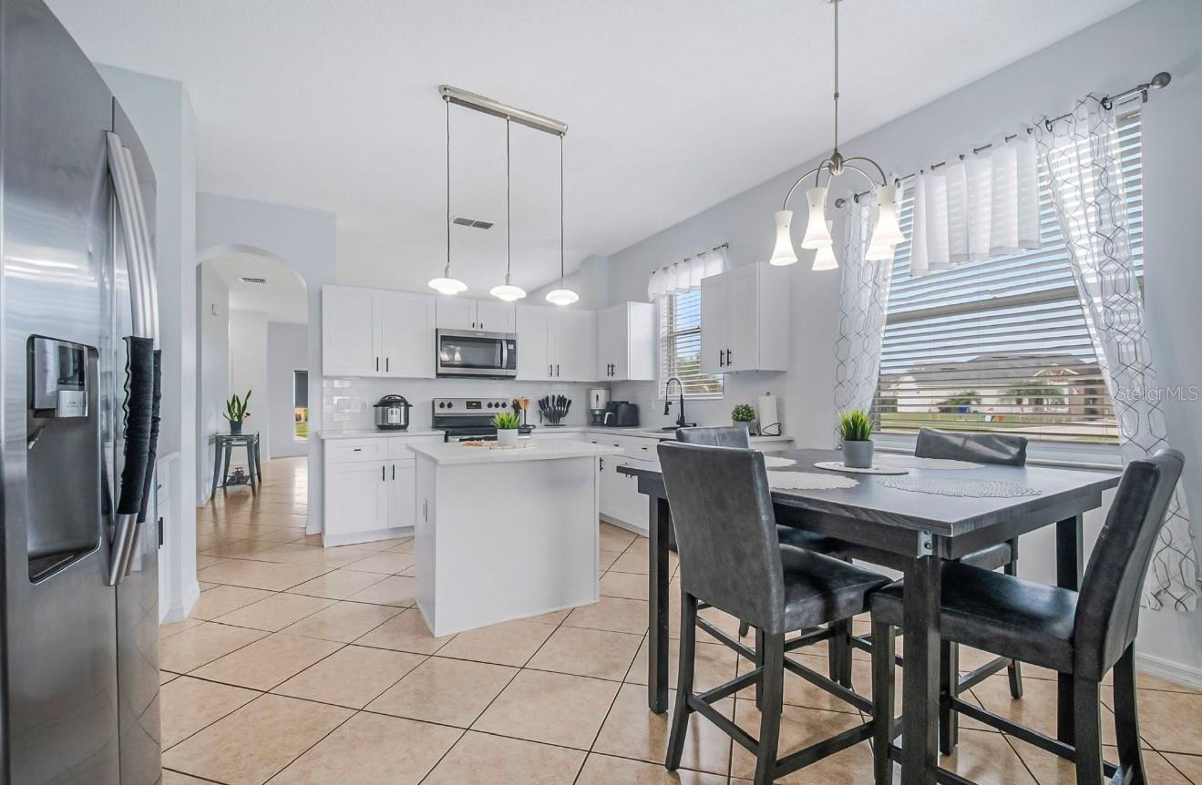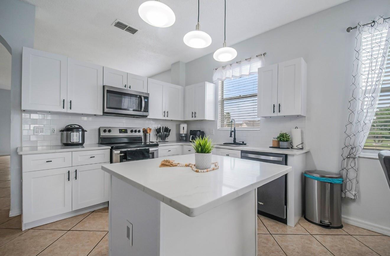 Fall in love with this beautifully refreshed one story 4BR/2BA corner lot home, featuring a stunning remodeled kitchen with crisp white cabinetry, stainless-steel appliances, and a spacious island perfect for cooking and gathering. This well designed layout offers a living room/dining room combo separate from the kitchen and family room, providing both openness and flexibility for everyday living and entertaining. The primary suite offers a serene retreat with dual sinks, a separate shower, and a relaxing garden tub. Graceful archways and tile flooring throughout the entire home add style and easy maintenance. Nestled on a generous corner lot surrounded by lush greenery, the property also boasts an expansive vinyl-fenced backyard with plenty of room to play, entertain, or unwind in total privacy. The community offers a clubhouse, basketball/tennis courts and a playground, perfect for families and an active lifestyle. Centrally located near major roads, shopping, Disney parks, and all that the City of Kissimmee has to offer, this home is truly a must-see! Come see it today!