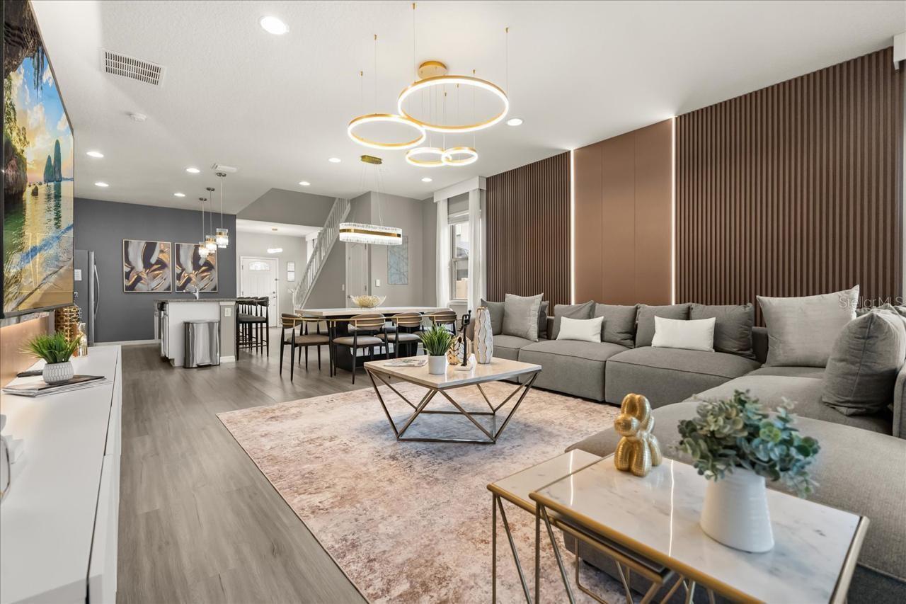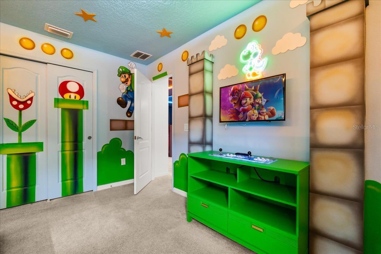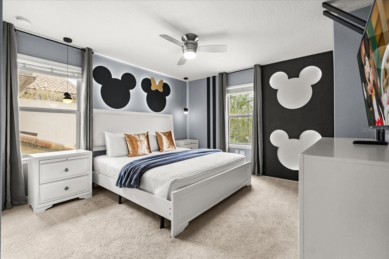 Welcome to this exceptional 7-bedroom, 5-bathroom vacation home located in the highly desirable Windsor at Westside Resort. This fully furnished property is turn-key and revenue-ready, offering a spacious and well-designed floor plan ideal for large families and short-term rental guests. The home features an open-concept main living area, a generous upstairs loft, a 2-car garage, and a private screened-in pool with heated spa for year-round enjoyment. The kitchen offers stainless steel appliances, stone countertops, and a large island with seating, flowing seamlessly into the dining and living spaces. With ample bedrooms—including multiple suites—and thoughtfully designed themed rooms, this residence provides comfort and functionality for owners and guests alike. Located within one of Orlando’s top short-term rental communities, Windsor at Westside offers outstanding resort amenities such as a full-service clubhouse, resort-style pool with lazy river, fitness center, tennis and basketball courts, sand volleyball, arcade, restaurant, and 24-hour gated security. Just minutes from Disney and Central Florida’s world-class attractions, this property is an excellent opportunity for investors or buyers seeking a high-performing vacation retreat.