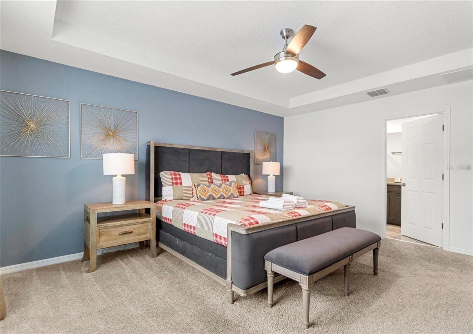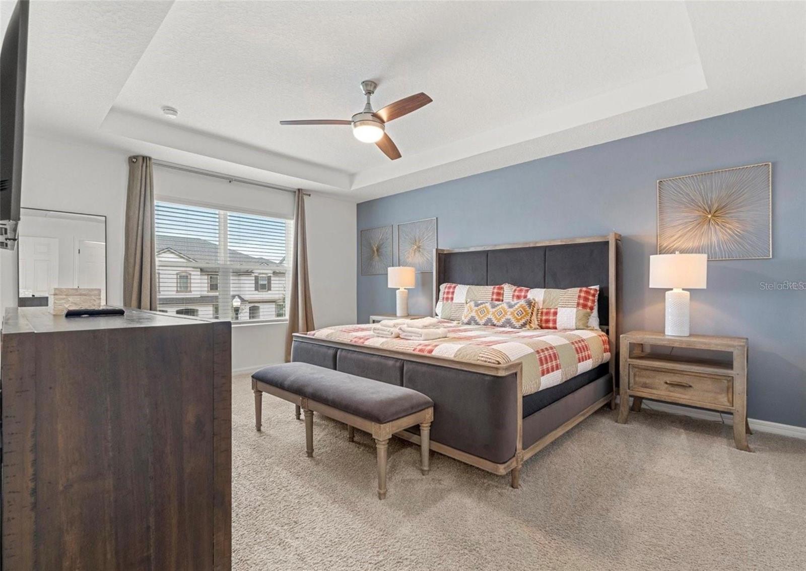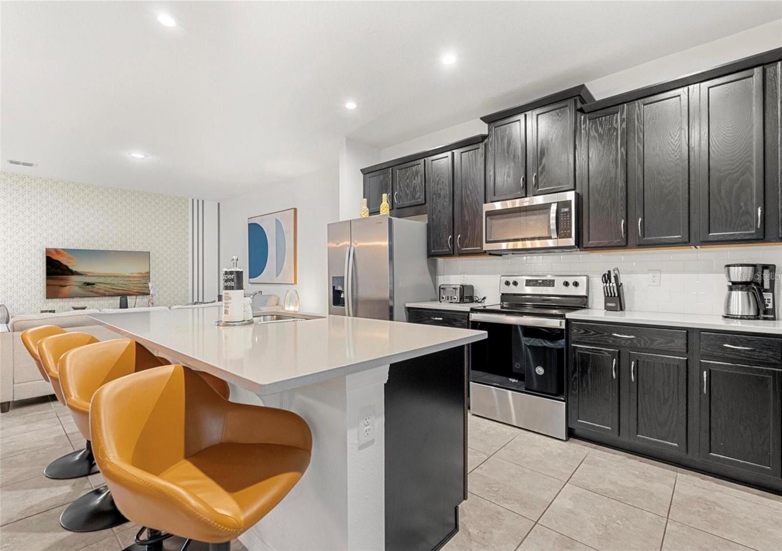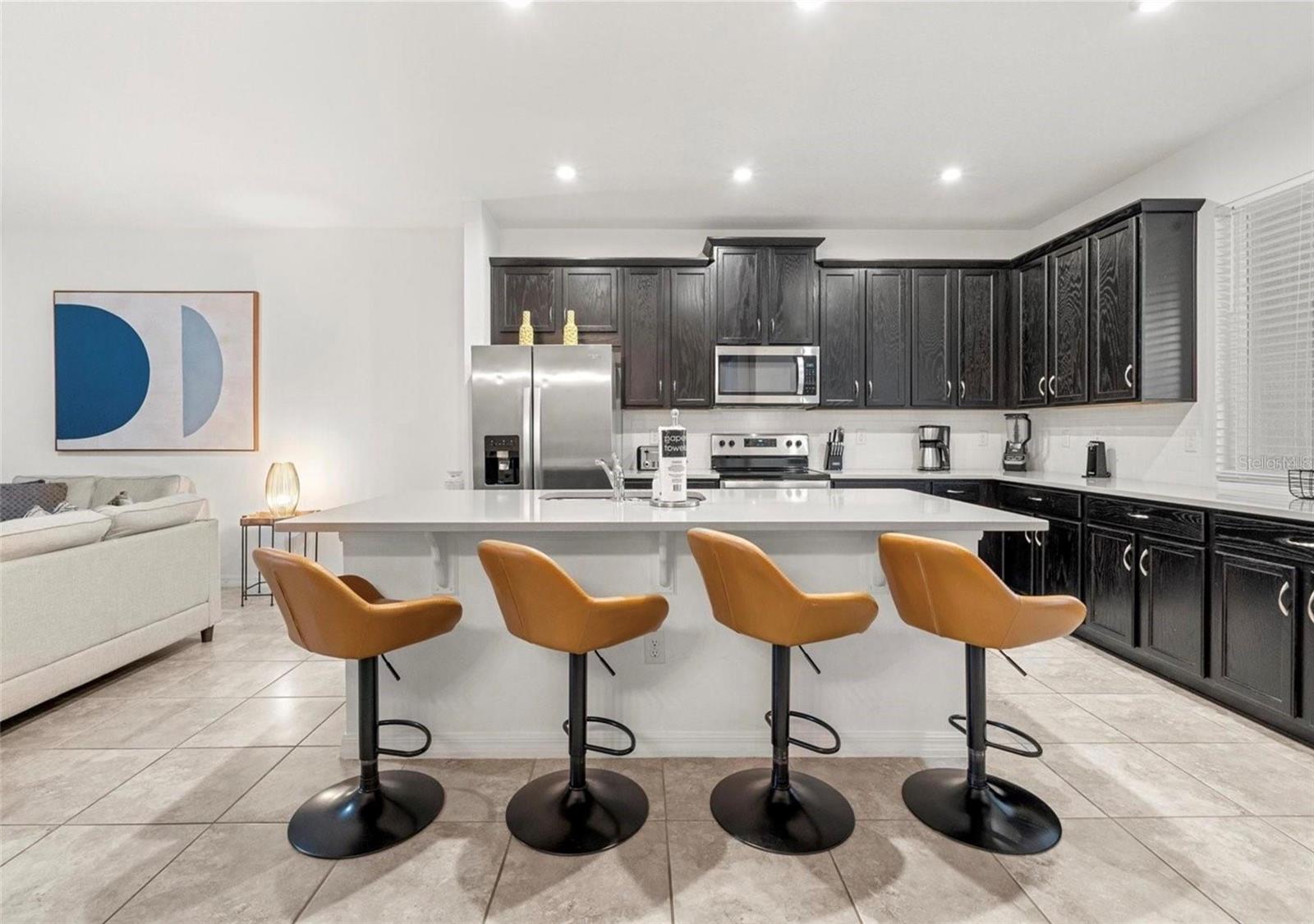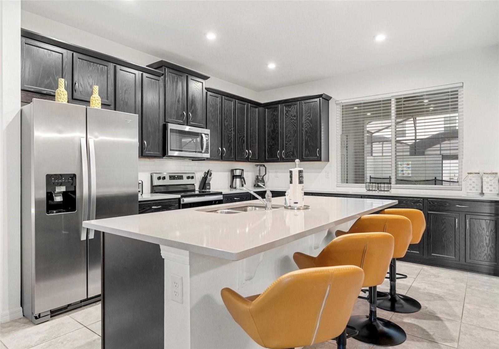 Beautifully appointed 4-bedroom, 4.5-bath townhome with a private screened pool located inside the desirable gated community of Solara Resort, one of Central Florida’s premier neighborhoods for short-term rentals. This home is being offered fully furnished and professionally decorated, making it a perfect choice for a vacation retreat or a strong income-producing investment property. With nearly 2,100 sq ft of interior living space, the layout features an open-concept design that includes a spacious kitchen with quartz countertops, stainless steel appliances, solid cabinets, and an oversized island ideal for entertaining. The living and dining areas flow seamlessly to the covered patio and pool area. The floor plan includes a master suite conveniently located on the first floor, plus an additional master suite upstairs, 4 total bedrooms + a loft, giving guests plenty of room to relax. Solara Resort provides an exceptional range of amenities, including a resort-style pool, grand clubhouse, fitness center, FlowRider surf simulator, splash zone, bar & grill, basketball and soccer facilities, workstations, indoor and outdoor lounges, and more. HOA fees include basic cable, internet, landscaping, valet trash service, and common-area maintenance. Ideally positioned just off US-192, the home is only minutes away from Walt Disney World, top attractions, shopping, dining, and entertainment. Whether you’re searching for a high-performing investment or a luxurious vacation home, this property is ready to impress. Schedule your visit today!