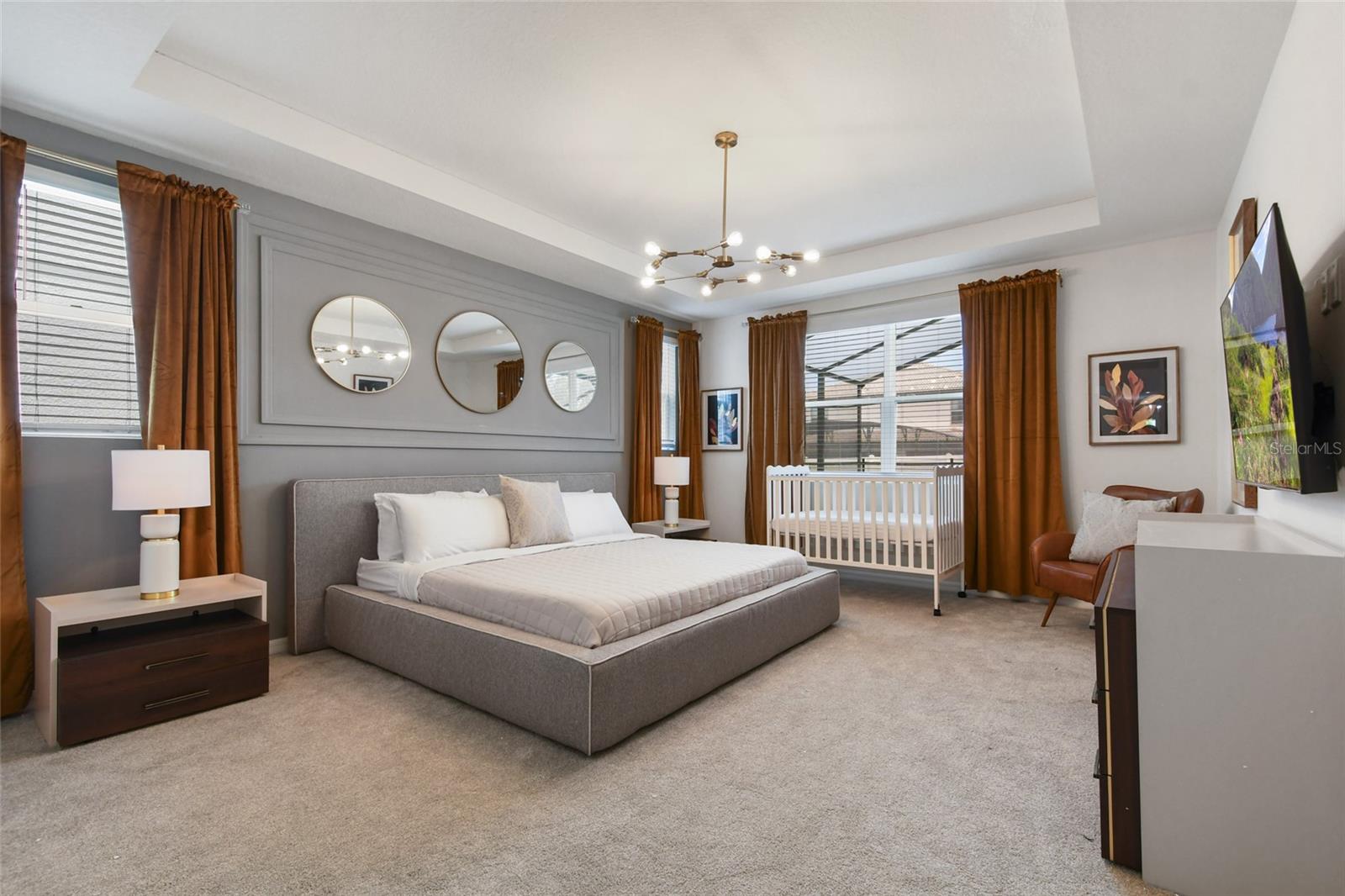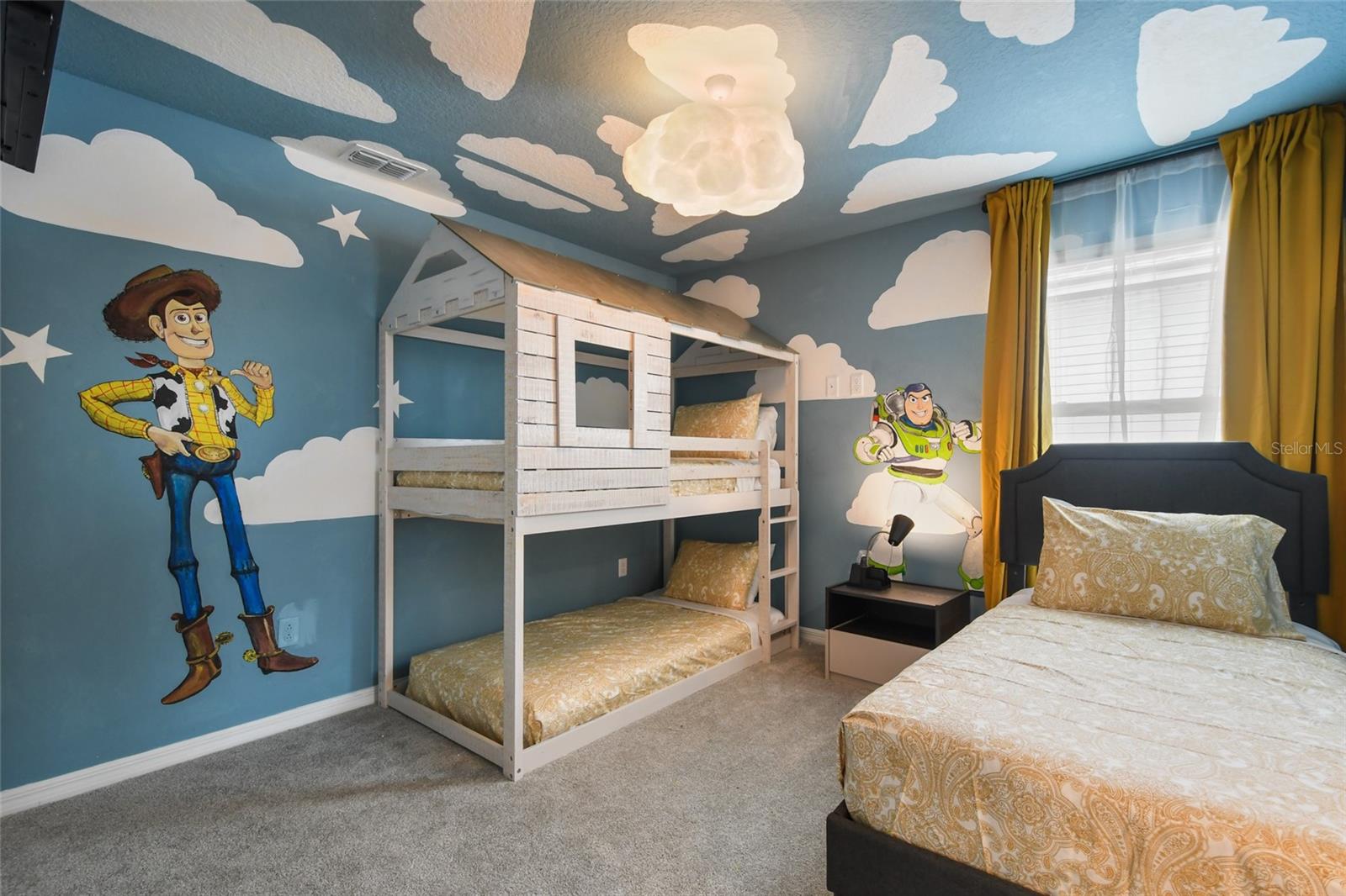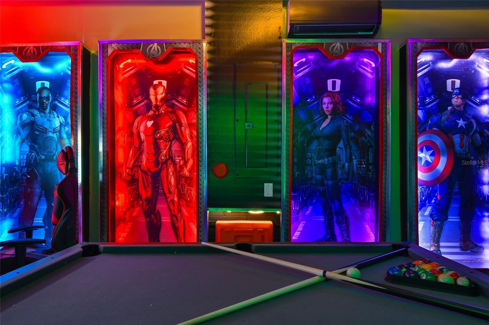 Turnkey Short-Term Rental Investment in Solara Resort! Experience the perfect blend of style, comfort, and strong rental potential with this beautifully furnished 7-bedroom vacation home in the sought-after Solara Resort. Built in 2023, this modern property features elegant tile flooring, professionally designed décor, and two primary suites—one upstairs and one downstairs—plus an additional main-floor guest suite ideal for multi-family stays. Three beautifully themed bedrooms add exceptional guest appeal, while the loft has been fully transformed into a spacious game room/movie room with new vinyl flooring. The garage is upgraded into a custom Avengers-themed arcade with split AC, maximizing entertainment value and rental performance. The open-concept kitchen showcases stainless steel appliances, granite countertops, and generous prep space, flowing seamlessly into the dining and living areas for easy entertaining. Outside, enjoy a private screened oasis with a heated pool, spa, and covered lanai—perfect for unwinding after days at the parks. Solara Resort offers world-class amenities, including a full-service restaurant, ice cream shop, coffee bar, fitness center, basketball and soccer courts, beach volleyball, a resort-style pool with cabanas, tiki bar, and splash zone. HOA fees include cable, internet, landscaping, valet trash, and common-area maintenance. Located just 8 miles from Walt Disney World and close to Universal, SeaWorld, and Orlando’s top attractions, this gated resort community delivers both a luxurious personal getaway and a high-performing rental asset. Whether you're seeking a premium investment or your own vacation retreat, this home checks all the boxes.