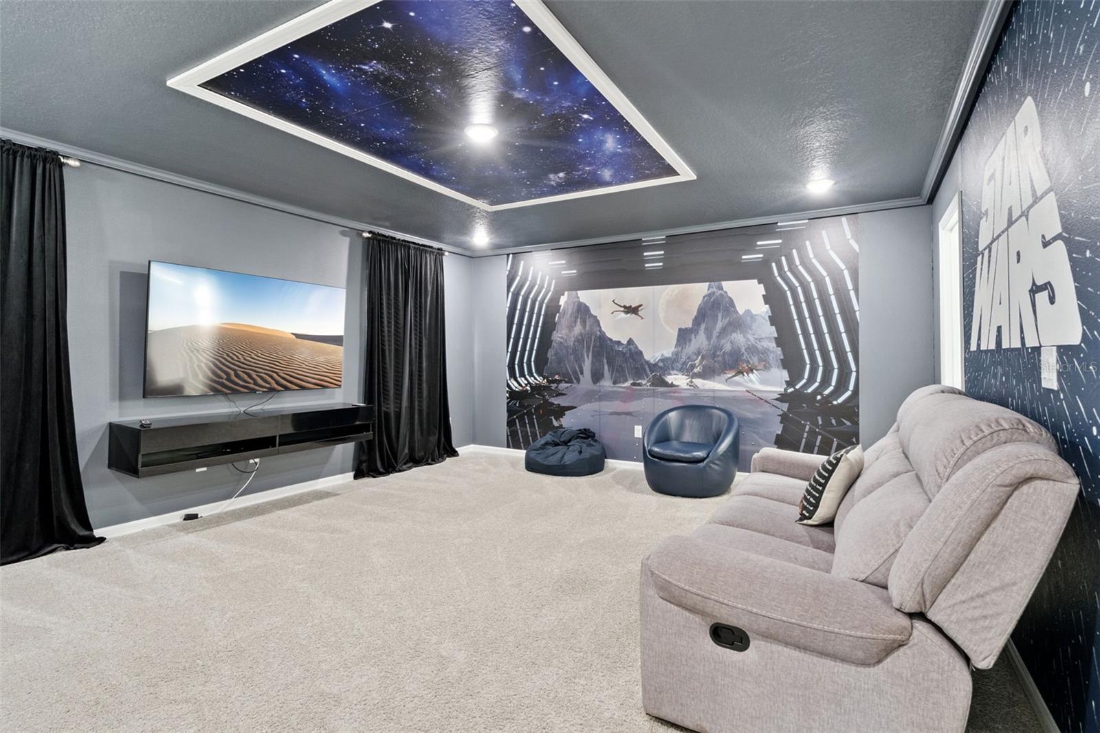 Stunning upgrades & a private pool await in this fully furnished 6-bedroom home in the amenity-rich Solara Resort community. Host up to 13 guests! Step inside from the welcoming front porch to find an open main level with tile floors, high ceilings, modern fixtures and lots of natural light. The timeless kitchen features granite countertops, stainless appliances, a pantry and a massive island with seating for a crowd. The kitchen overlooks both the dining area (table for 8!) and the stylish living room. Just steps away, the spacious lanai offers even more dining, entertaining and lounging space. After a long day at Disney, you can relax in your screened-in pool & elevated spa. Plus, you enjoy extra privacy here, as the property has no back neighbors and conservation views! Back inside, the main level includes the primary bedroom with a spa-like ensuite, as well as an additional guest suite. Head upstairs to find a large loft with another TV and lots of room for family games. You must see each themed room in person (wow!), and don’t forget about the bonus rec room in the converted garage. Located less than 15 mins from Disney and all the other theme parks, Solara Resort is a gated community that lives up to its name, with amazing community amenities like multiple pools (one with beach entry), a surfing simulator, splash pad, sports fields (soccer, volleyball, basketball), playgrounds, walking trails, a fitness center, clubhouse, an on-site restaurant & sundry shop and more. This home makes an ideal short-term rental investment or personal vacation getaway; this property is ready to impress! Come take a tour.