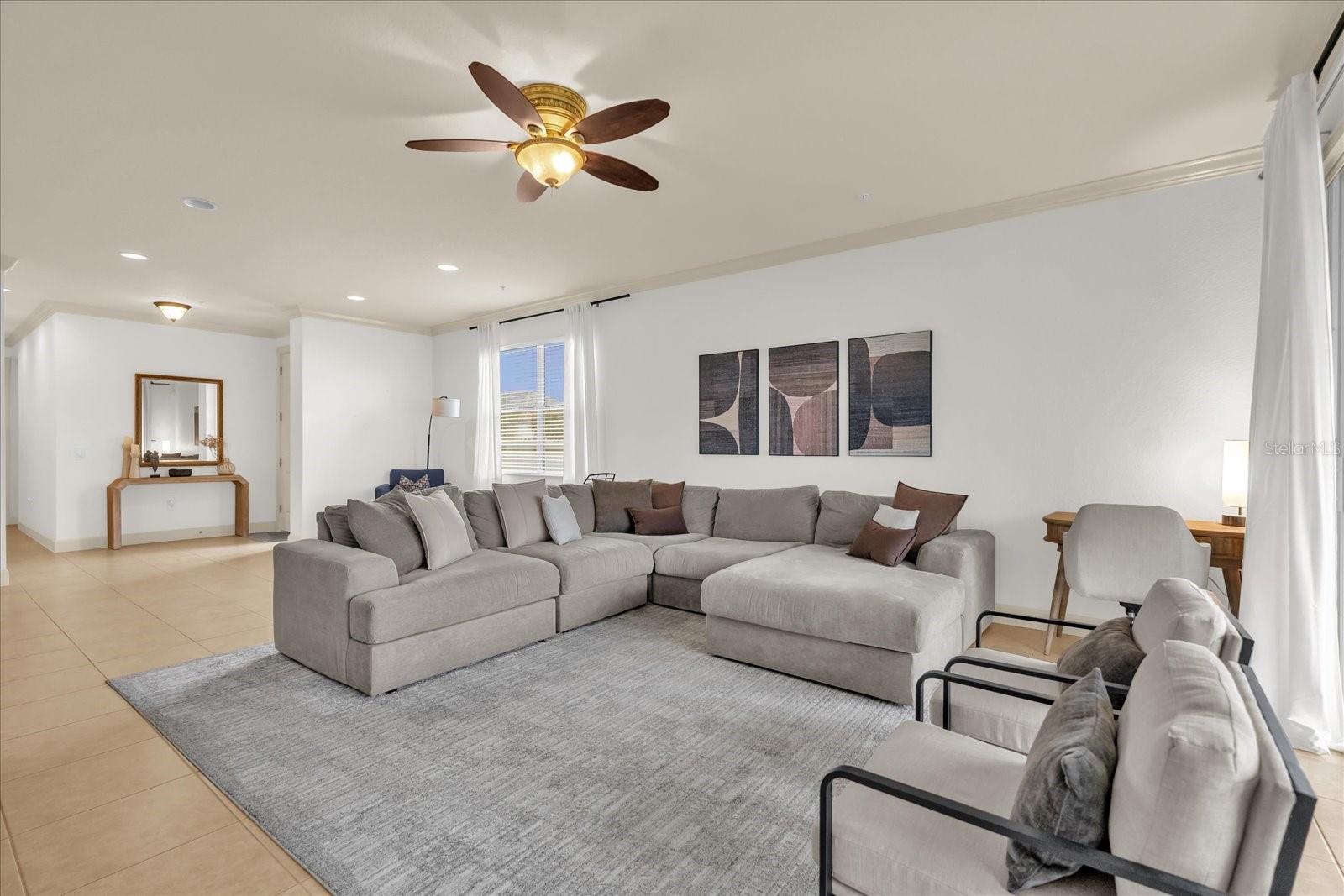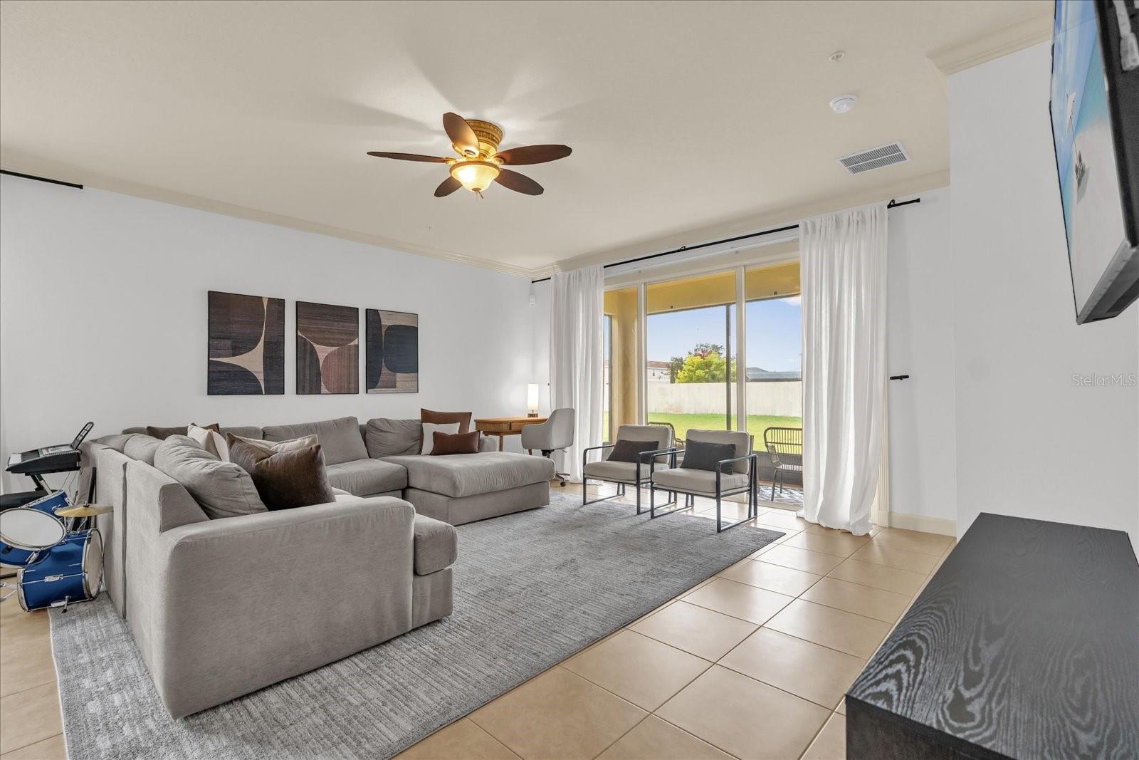 Welcome to this beautifully maintained single-story end-unit villa, offering effortless living in a peaceful community setting. This 3-bedroom, 2-bath home features a desirable split floor plan, providing privacy and comfort for every member of the household. Abundant natural light fills the open-concept living and dining areas, creating a warm and inviting space ideal for everyday living or entertaining. The functional kitchen is equipped with stainless steel appliances, ample cabinetry, and a practical layout perfect for cooking and hosting. The spacious primary suite includes a private bath and generous closet space, while the additional bedrooms are well-appointed for guests, family, or a home office. Tile flooring in the main areas and luxury vinyl plank flooring in key spaces ensure both durability and style, and the washer and dryer are included for added convenience. Relax outdoors in the screened-in lanai overlooking a surprisingly spacious backyard, offering room for gardening, play, pets, or peaceful relaxation. Enjoy low-maintenance living with access to community amenities including a sparkling pool and playground. Located just minutes from The Loop, you’ll enjoy close proximity to premium shopping, dining, entertainment, and major highways, making commuting and daily errands a breeze. This villa offers the perfect blend of comfort, convenience, and low-stress living—ready for you to move right in.