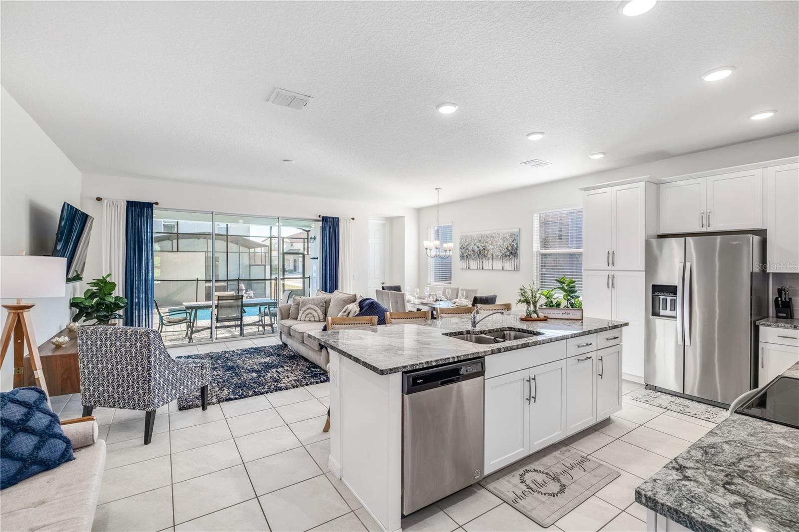 Discover exceptional resort-style living in this beautifully appointed vacation townhome, ideally located just minutes from Walt Disney World in Phase 2 of the highly regarded Solara Resort. Offering nearly 2,300 square feet of thoughtfully designed living space, this open-concept residence showcases a stylish kitchen with granite countertops and stainless steel appliances, perfect for entertaining family and guests. The interior flows effortlessly to the screened-in private pool, creating a relaxing retreat after a day of enjoying Central Florida’s attractions. The home features 6 spacious bedrooms and 4.5 bathrooms and is being sold fully furnished with professional décor throughout. Ideally positioned near the main entrance, the property offers convenient walkability to the clubhouse and access to an impressive array of amenities within a secure 24-hour gated community. Residents and guests enjoy a heated resort-style pool, FlowRider® surf simulator, full-service restaurant and bar, tiki bar, fitness center, game room, business center, convenience store, playground, scenic walking trails, splash zone, sports courts for basketball and volleyball, a soccer field, and a relaxing fire pit. Currently operating as a successful short-term rental with future bookings already in place, this property offers immediate income potential. Conveniently located near major highways, theme parks, shopping, dining, and entertainment, it presents an outstanding opportunity for both investors and those seeking a personal vacation retreat.