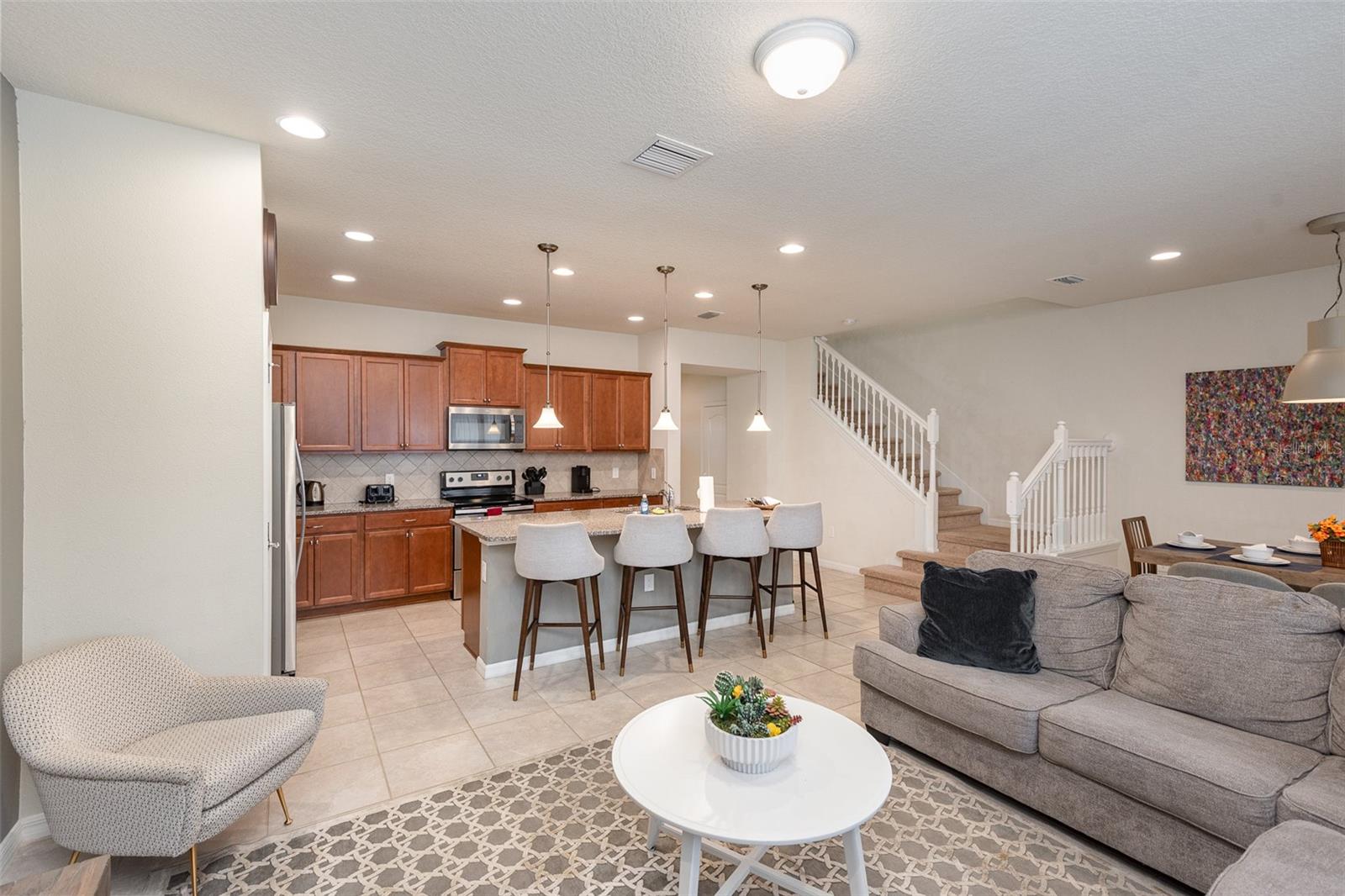 Welcome to one of the most sought after short and long term rental resorts and now you can own a piece of it. Of course its sought after as it has, Resort style pools, Lazy River, Water Playground, Fitness Center, Restaurant & Club House, Pond and Pier and so much more! Those are just the amenities; lets talk about this 5 Bedroom & 5 Bath with a private garage in paradise. You have enough space for the family and some including a theatre area for all to enjoy. Subtle taste of Disney throughout the home and a very nice size kitchen for all to gather. Don't want to stop the fun from the community pool? Well bring it home since you'll have your very own private pool and patio area to enjoy. Its spacious, its clean and comes completely furnished as you see it all you need is the key to make it yours. You can enjoy this home as little or as much as you'd like as short term rental is allowed as well as long term if you'd choose. Want the best of both worlds? Why not leave your vehicle stored in the garage and some personal items in your very own, owners closet's throughout the house. Having too many options is never a bad thing when you either way you are making the right choice. Contact today for your next appointment.